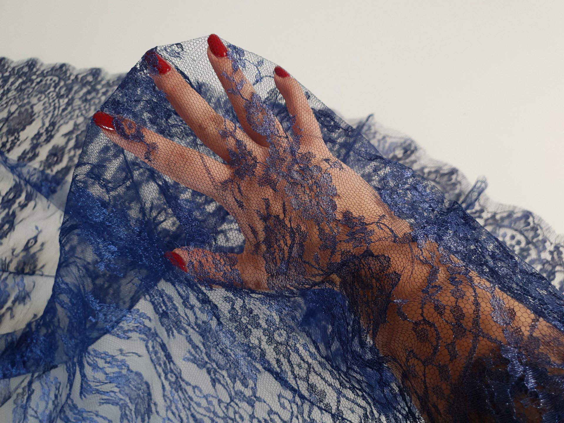 Dantela frantuzeasca albastru imperial Jean Bracq