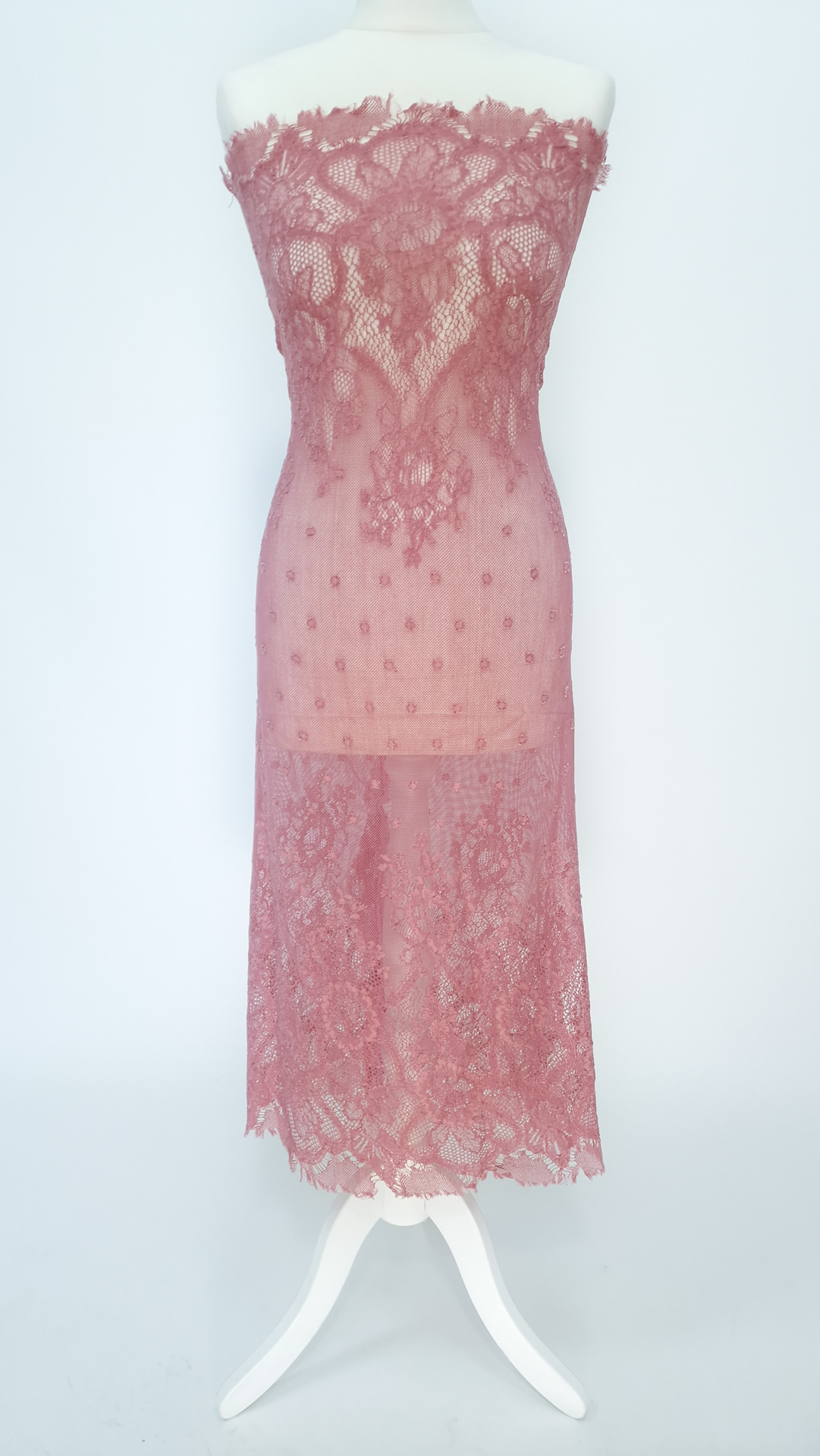 Caracteristici Dantela frantuzeasca cu bumbac si lana roz trandafiriu: