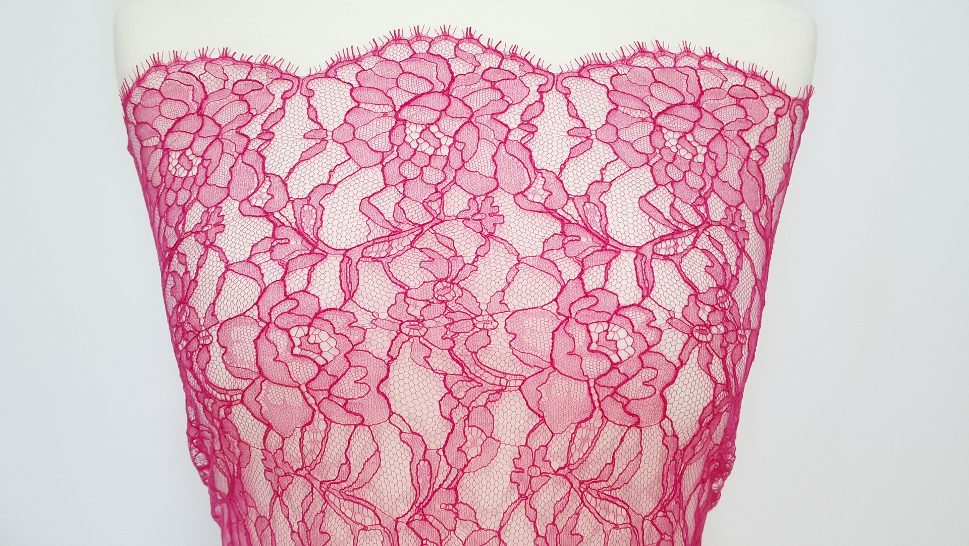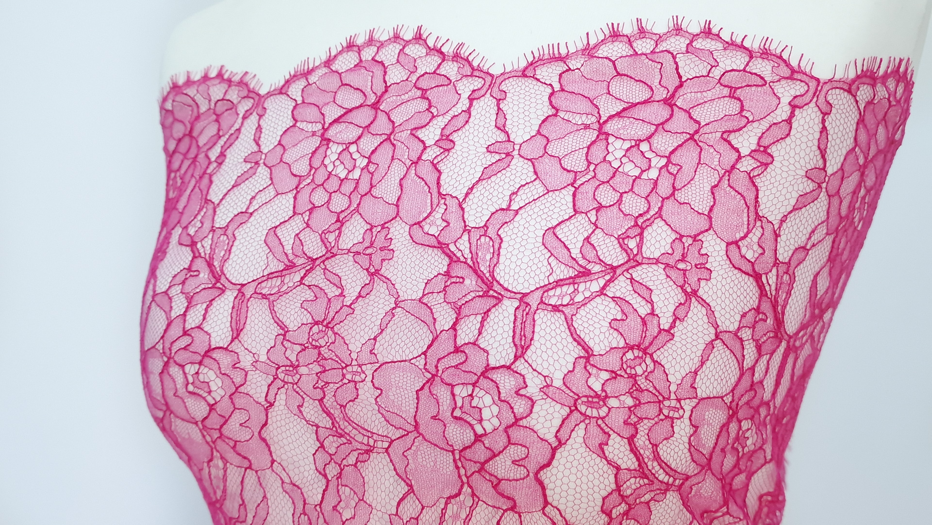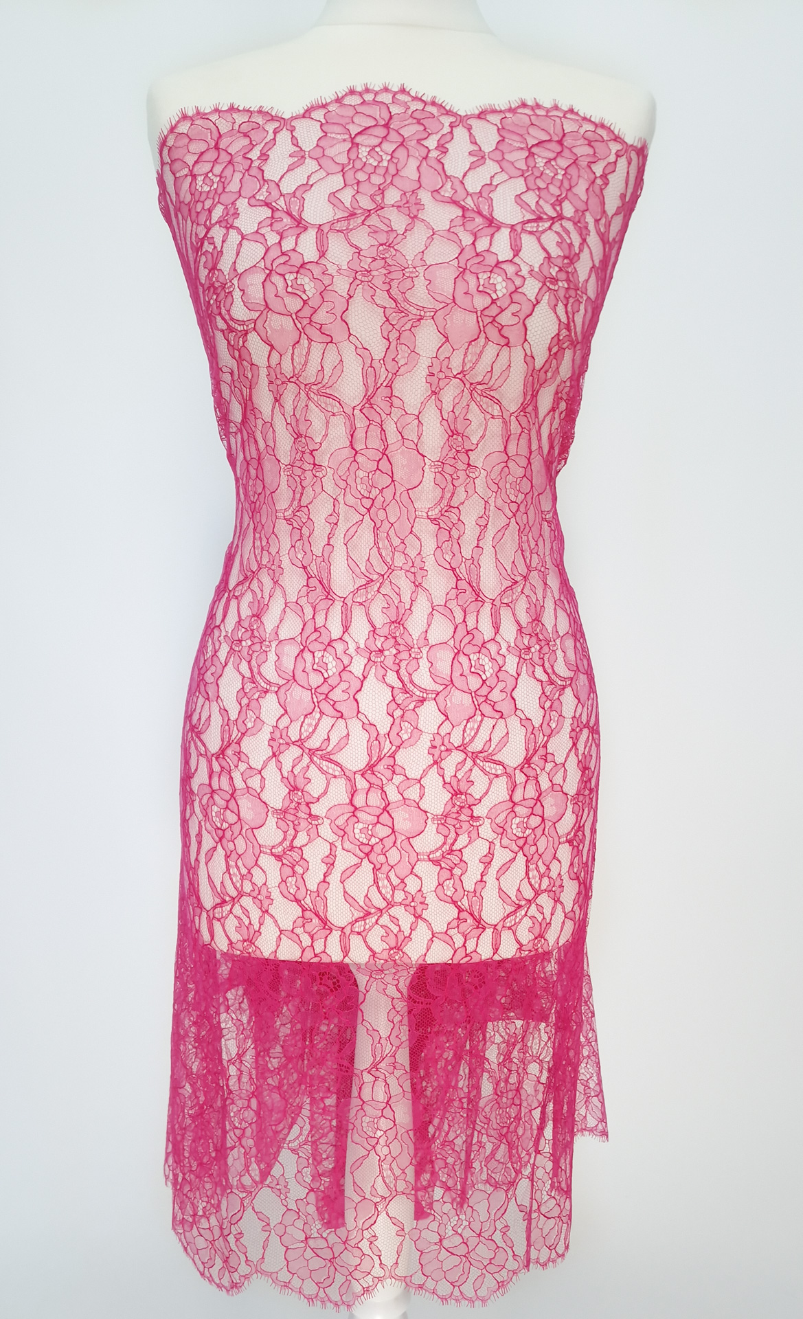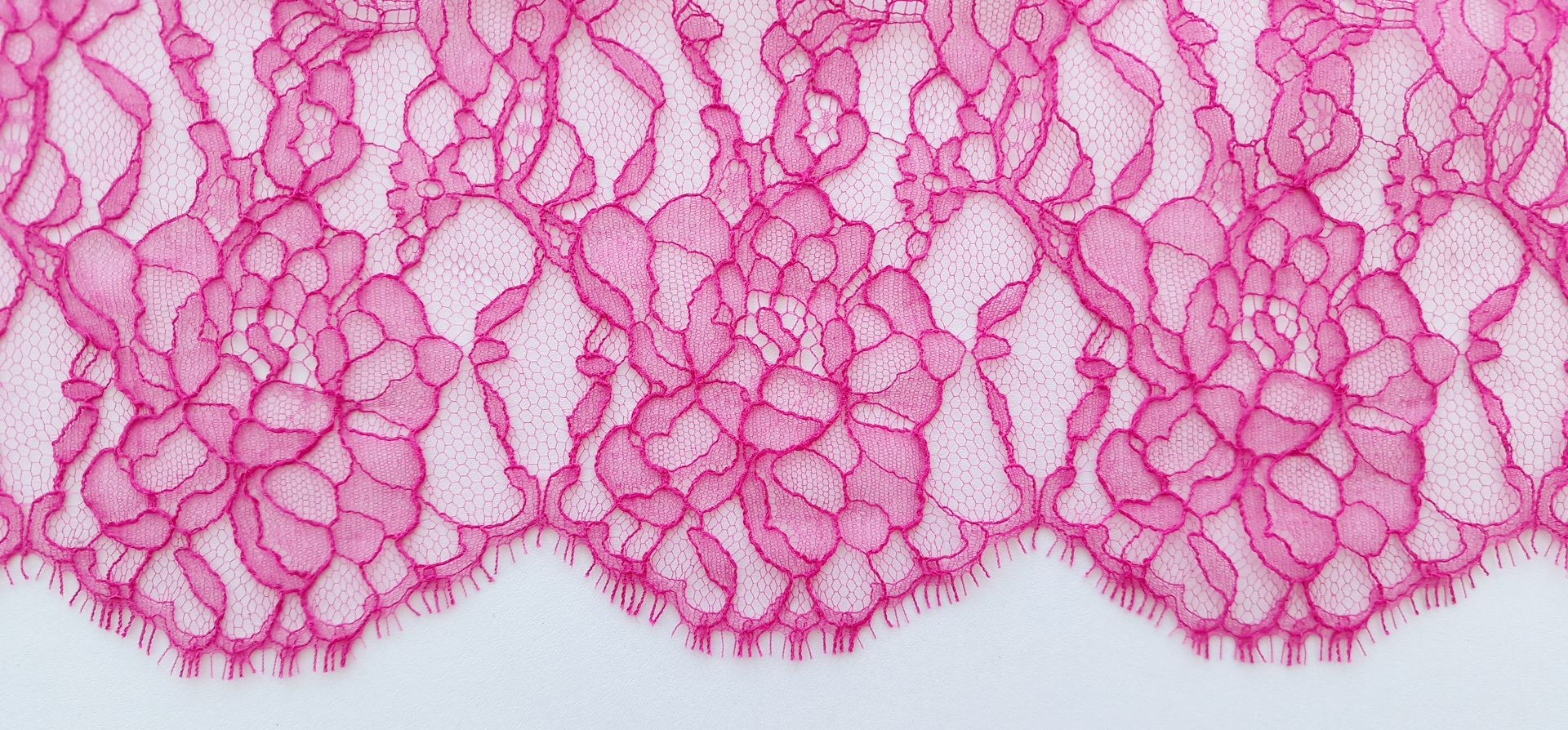 Dantela frantuzeasca fucsia cu vascoza, cu bordura dubla, calitate inalta, , produsa in Franta.