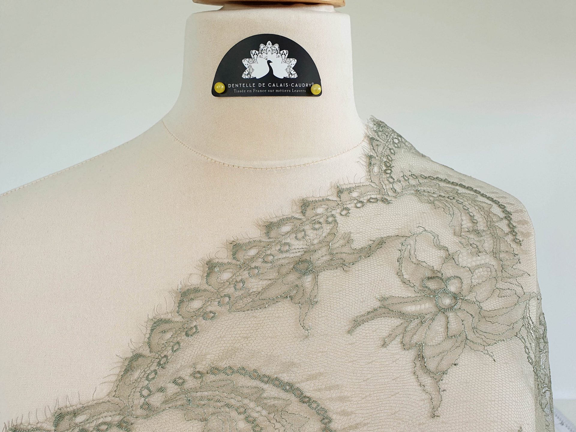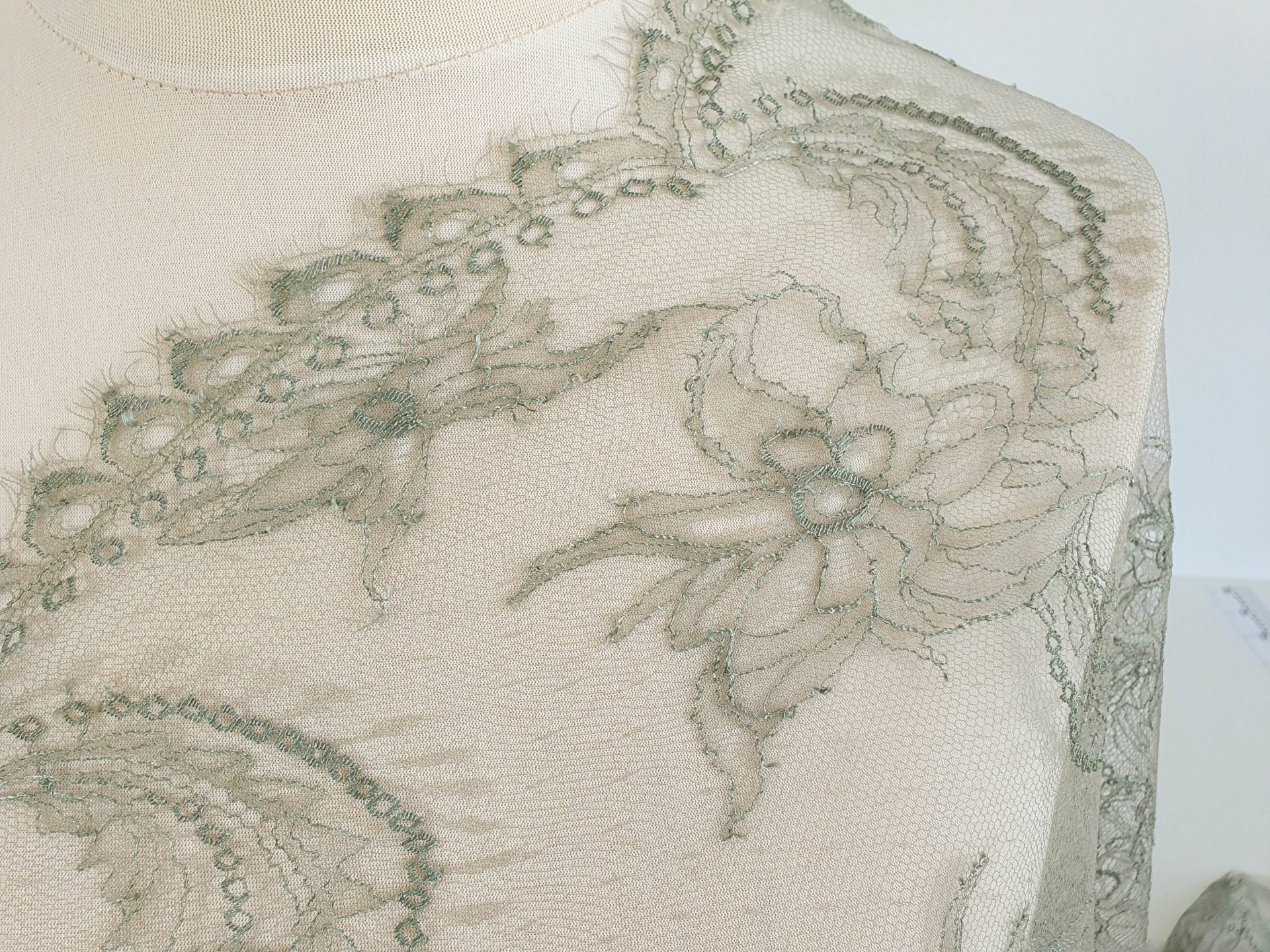 Dantela frantuzeasca laurel green, rafinata si de inalta calitate.