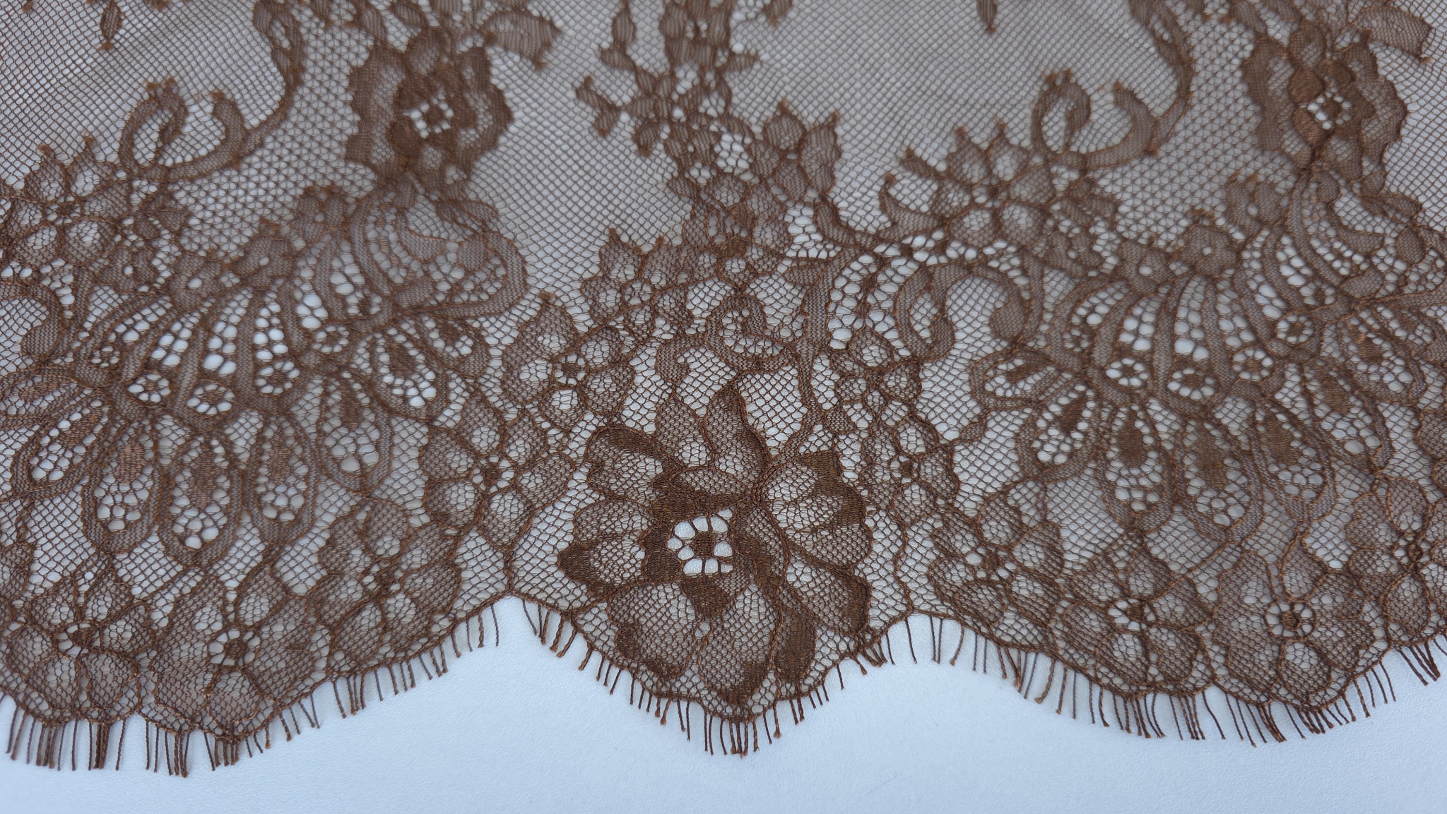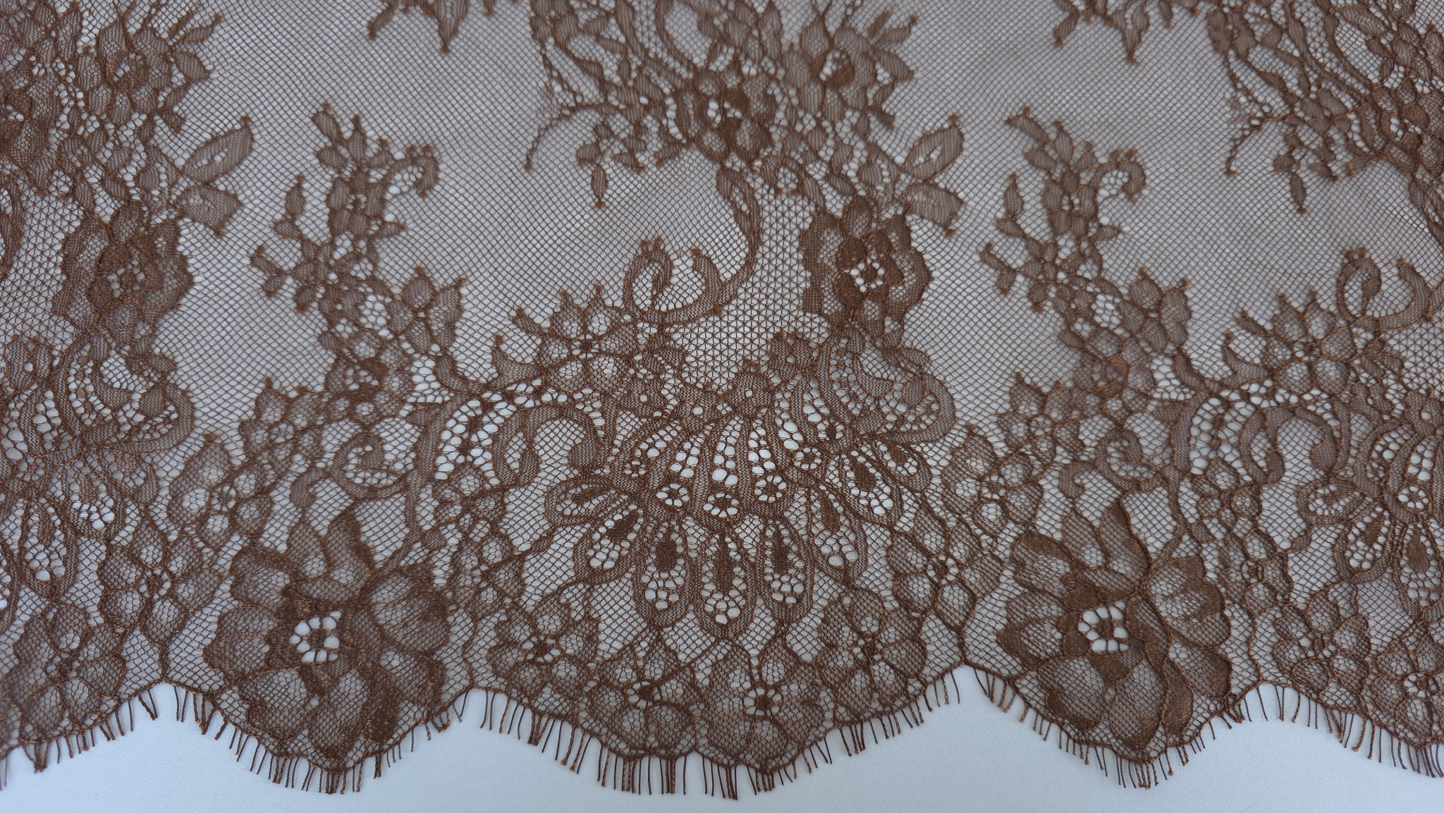 Descriere detaliata – Dantela tip Chantilly maro cupon 300 cm