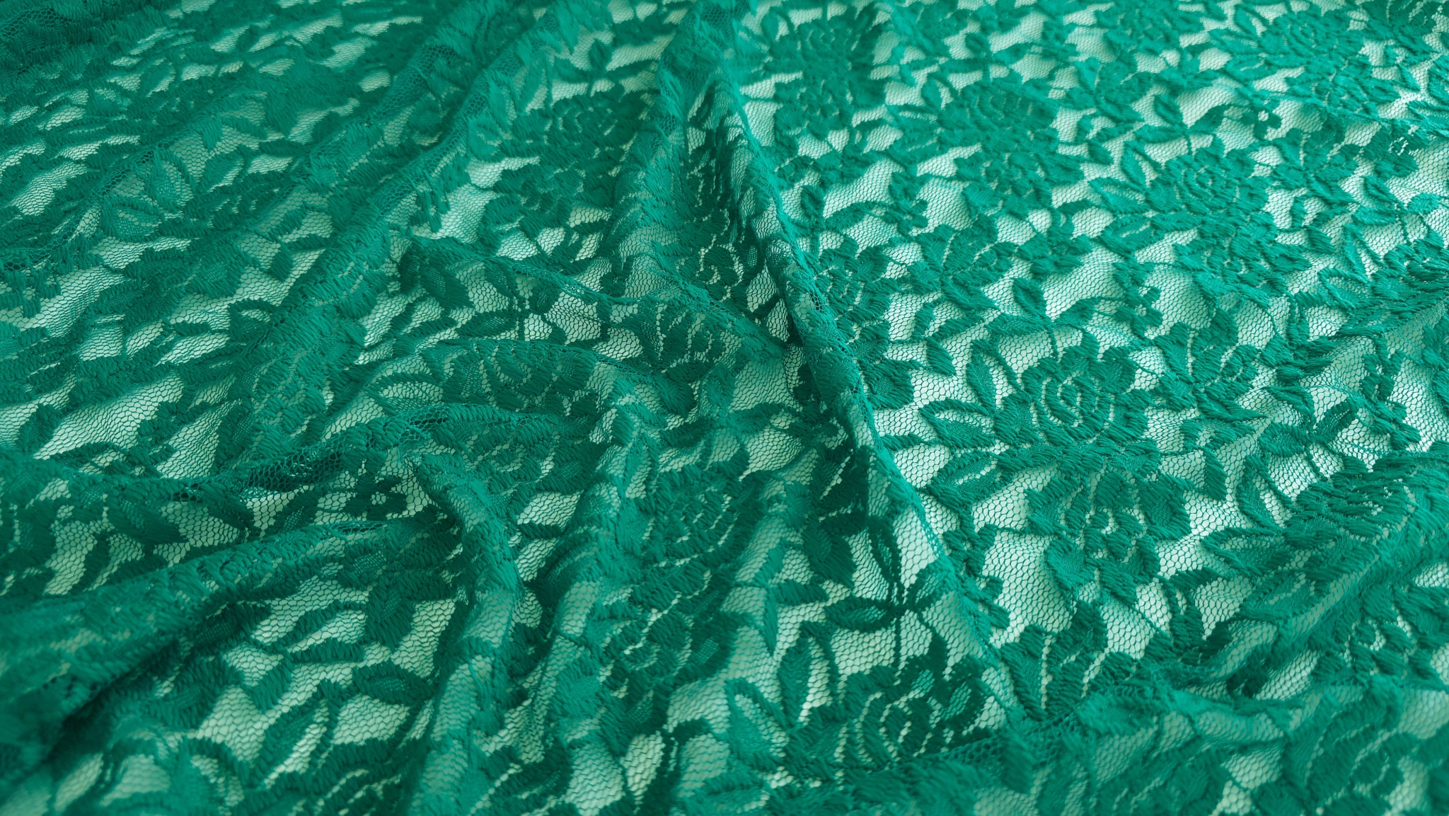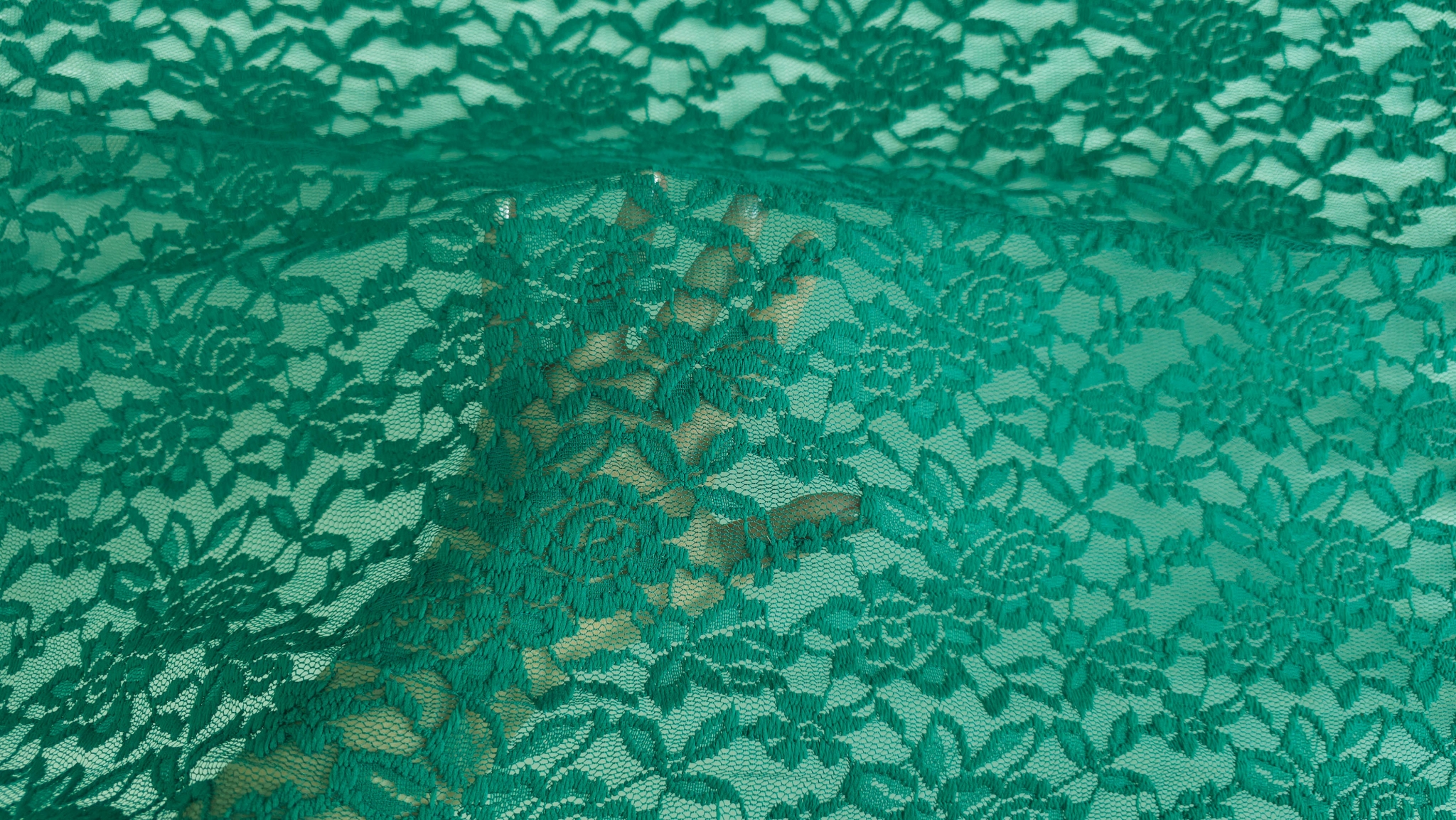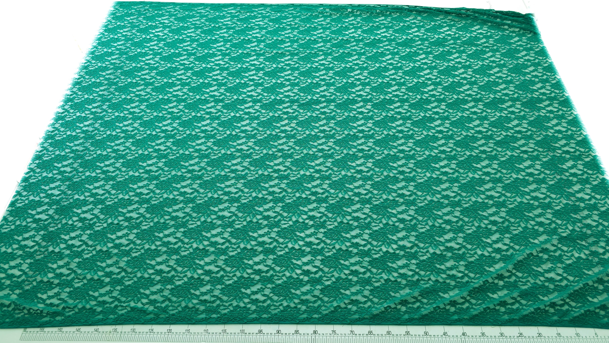 Descriere detaliată – Dantelă tip chantilly rebrodată verde