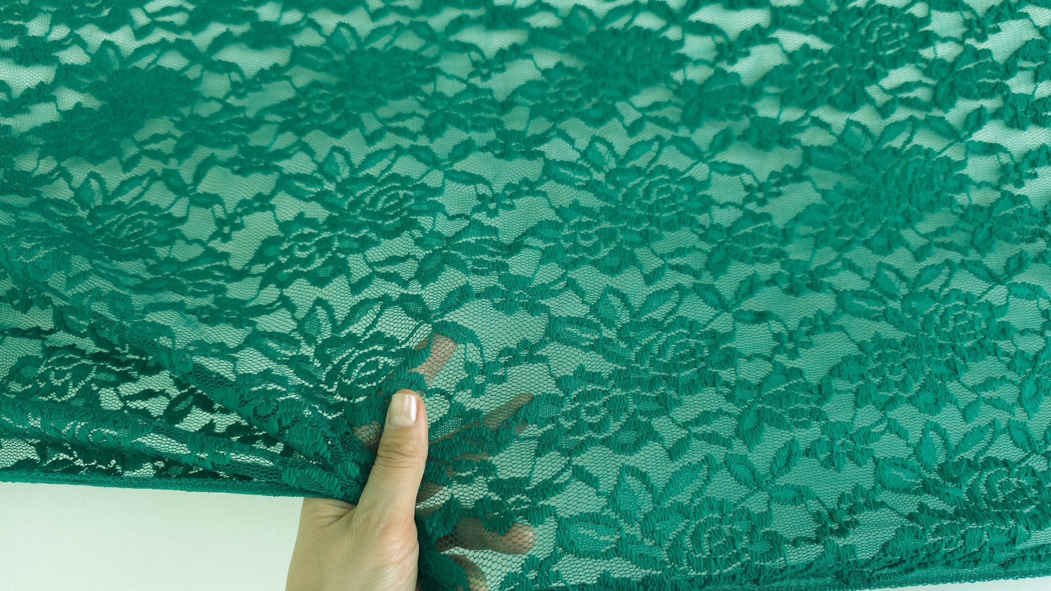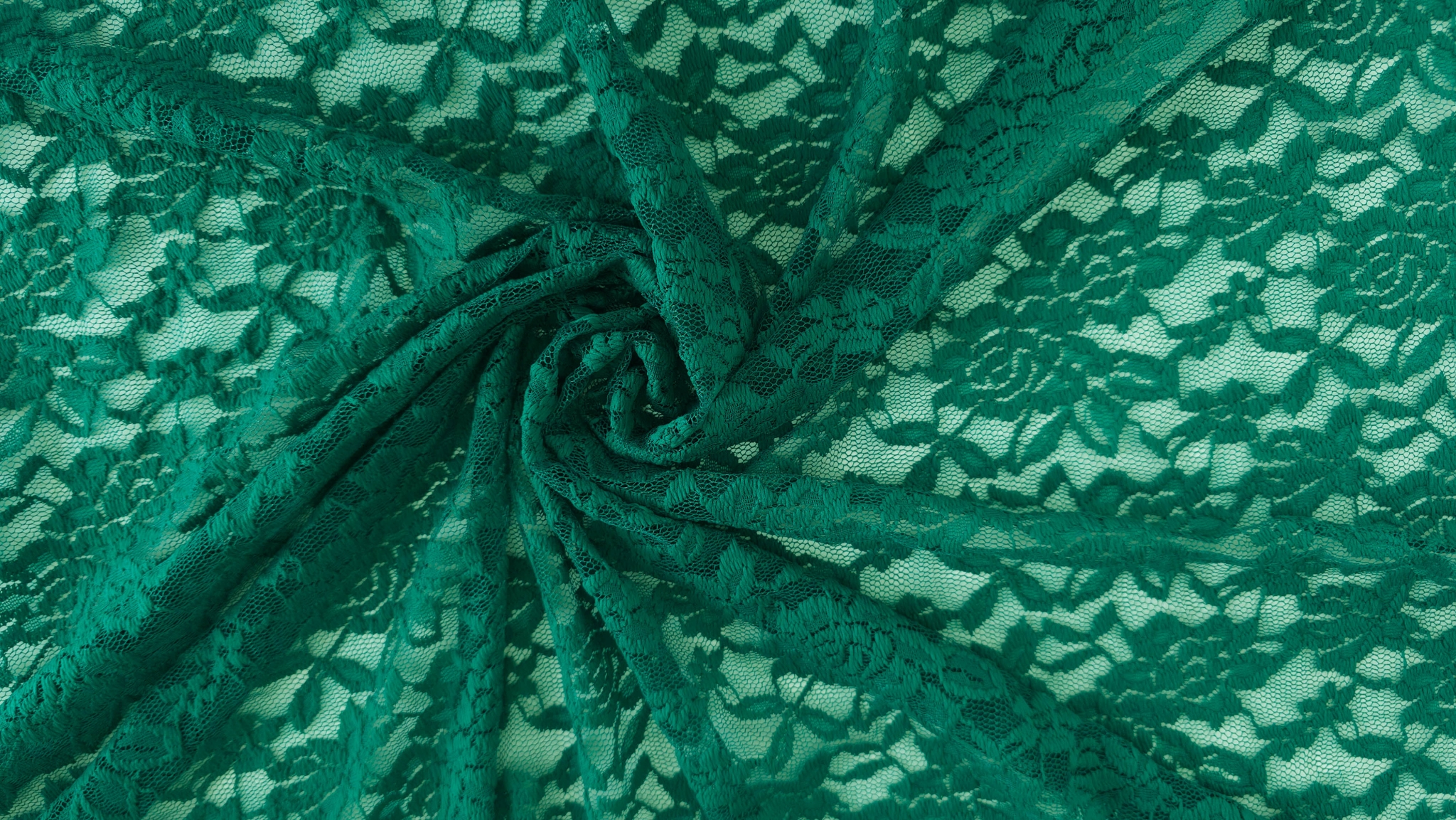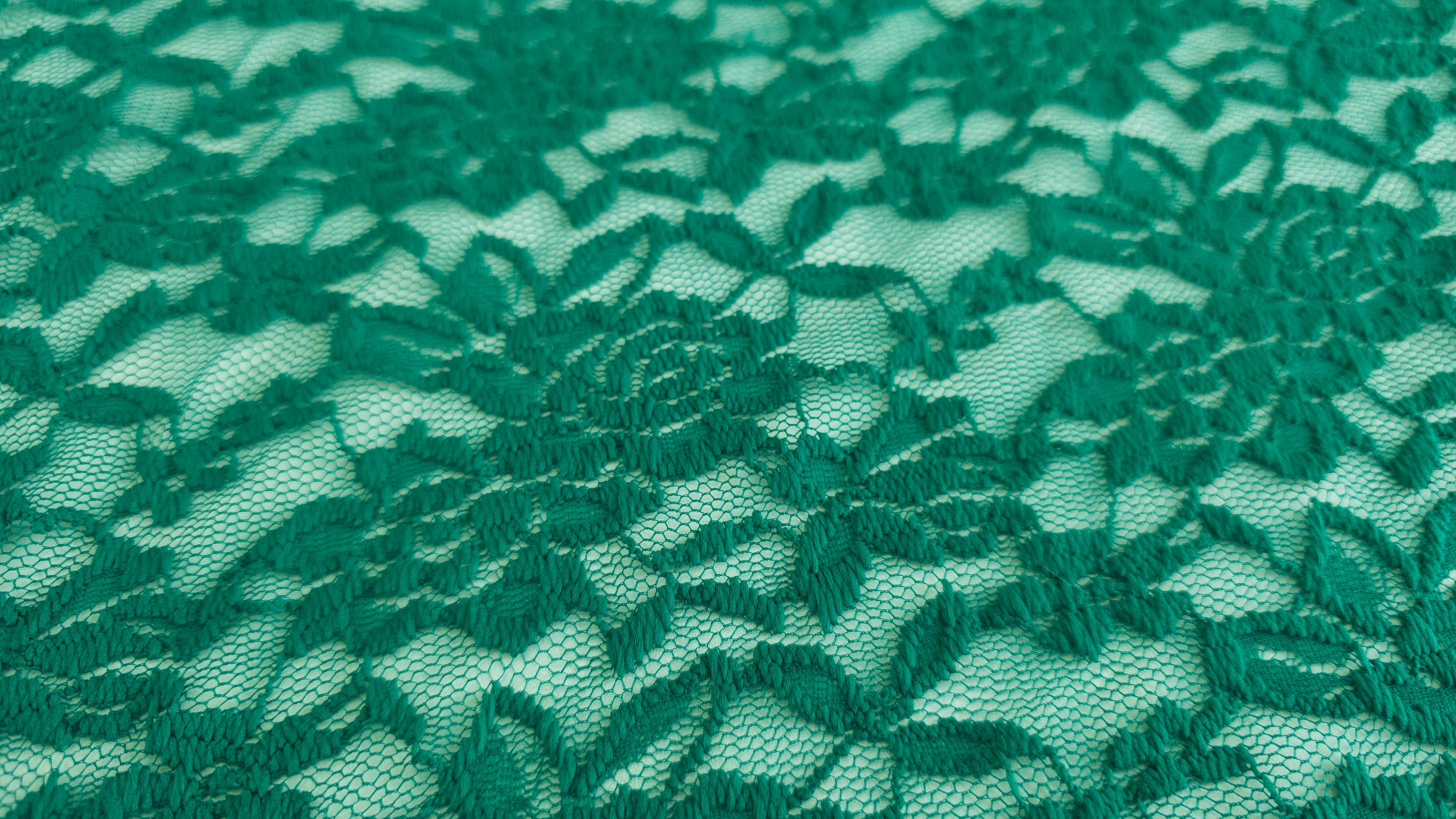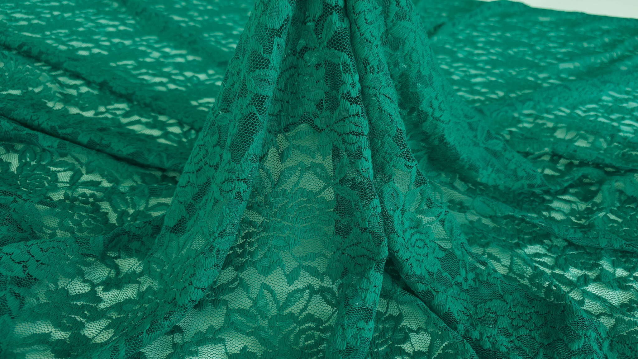 Descriere detaliată – Dantelă tip chantilly rebrodată verde