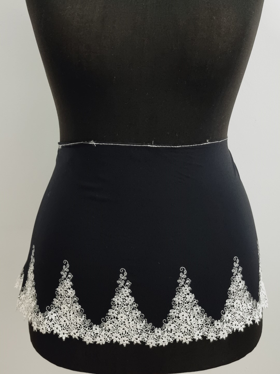 Compozitie: baza: 90% matase naturala si 10% elastan; broderia: 50% vascoza, 50% poliamida