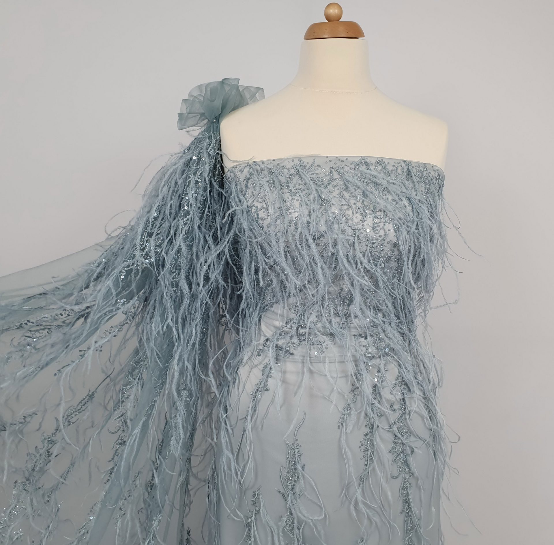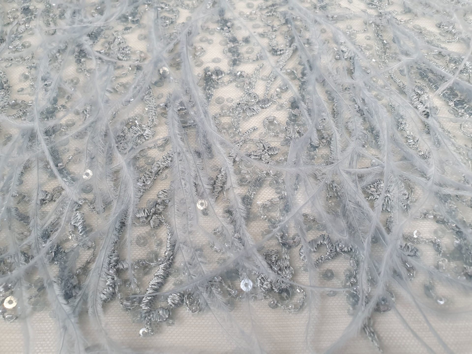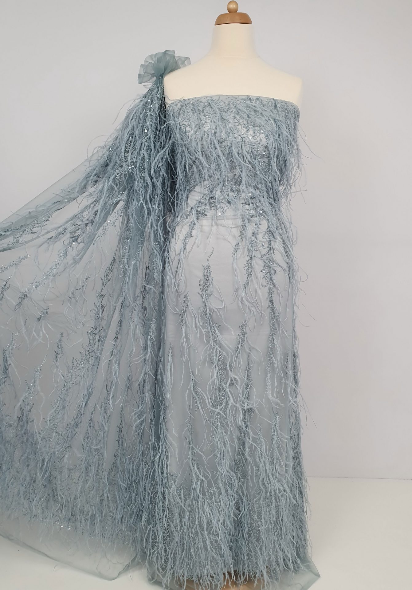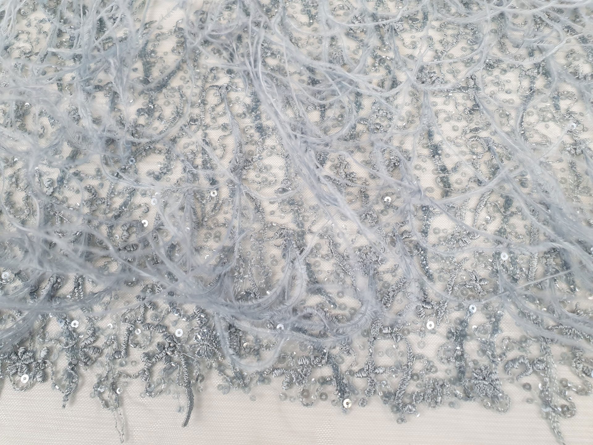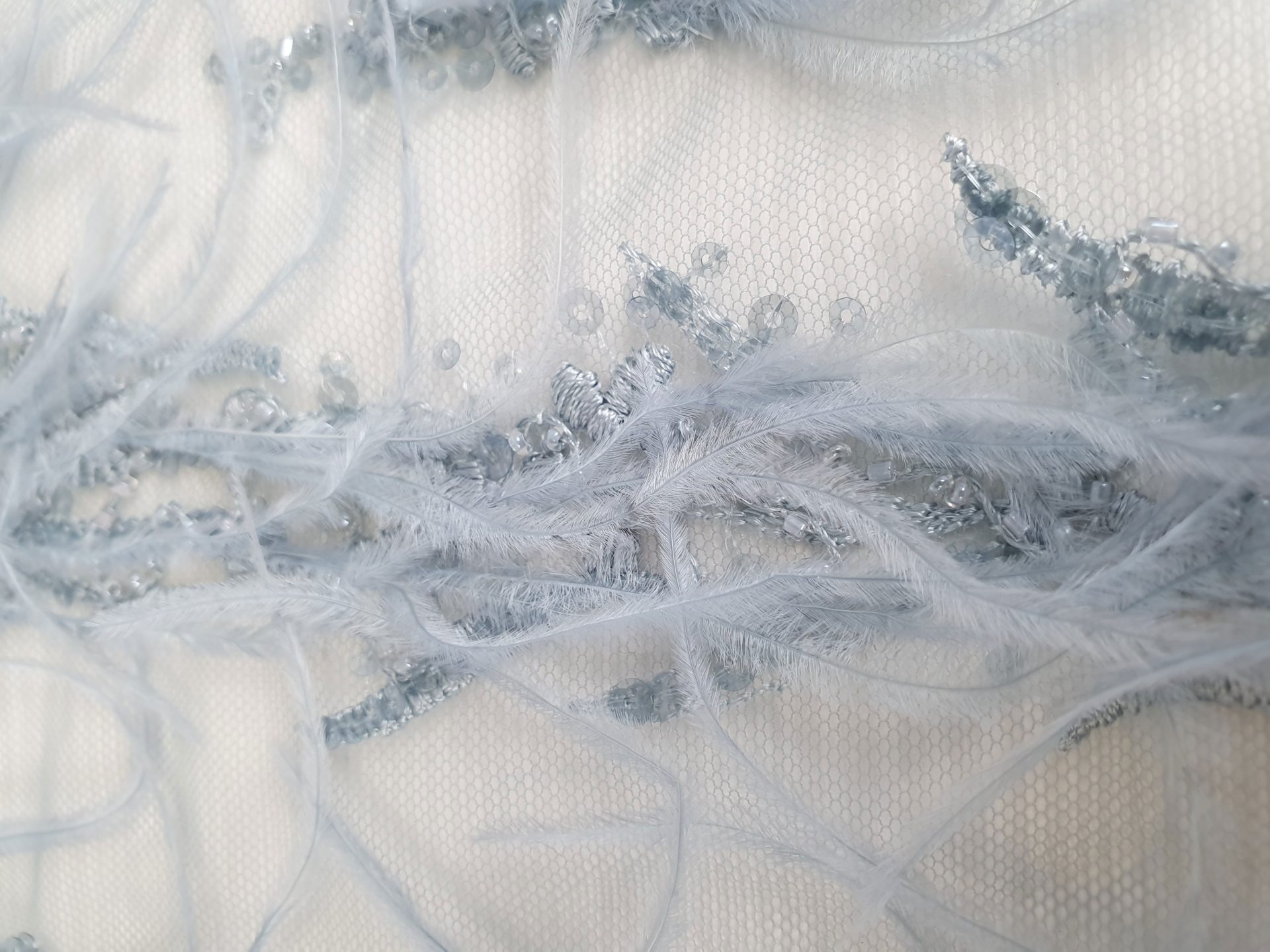 Broderie blue grey cu fulgi de strut, accesorizata cu margele de mici dimensiuni.