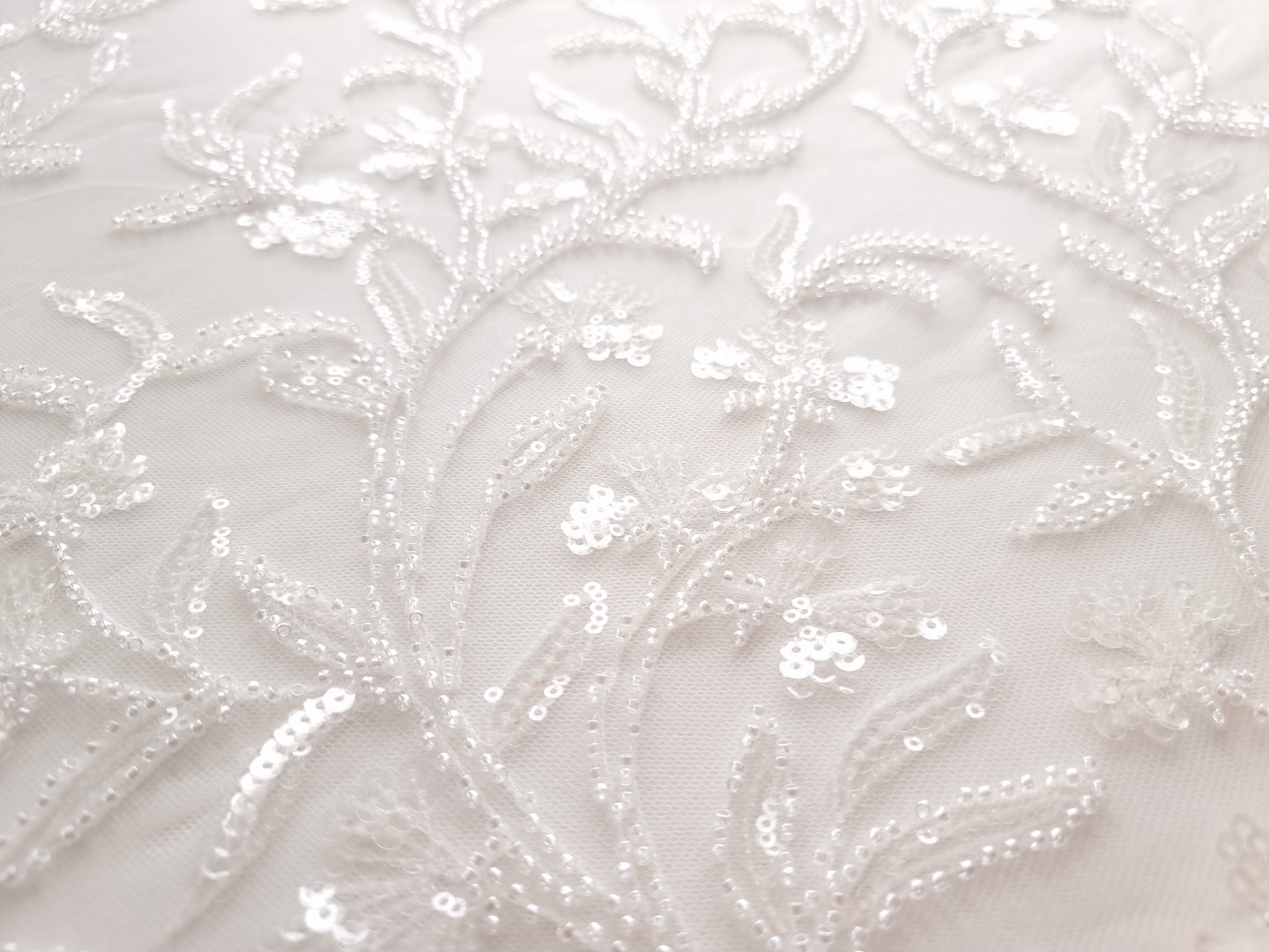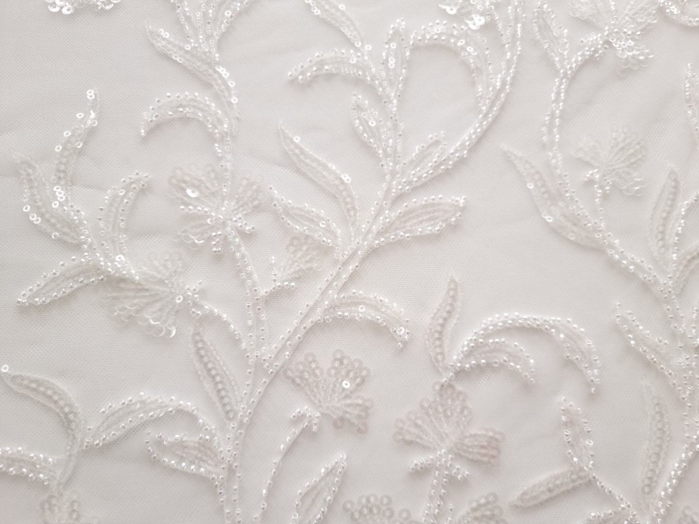 Caracteristici Broderie ivoire cu micropaiete si margele transparente: