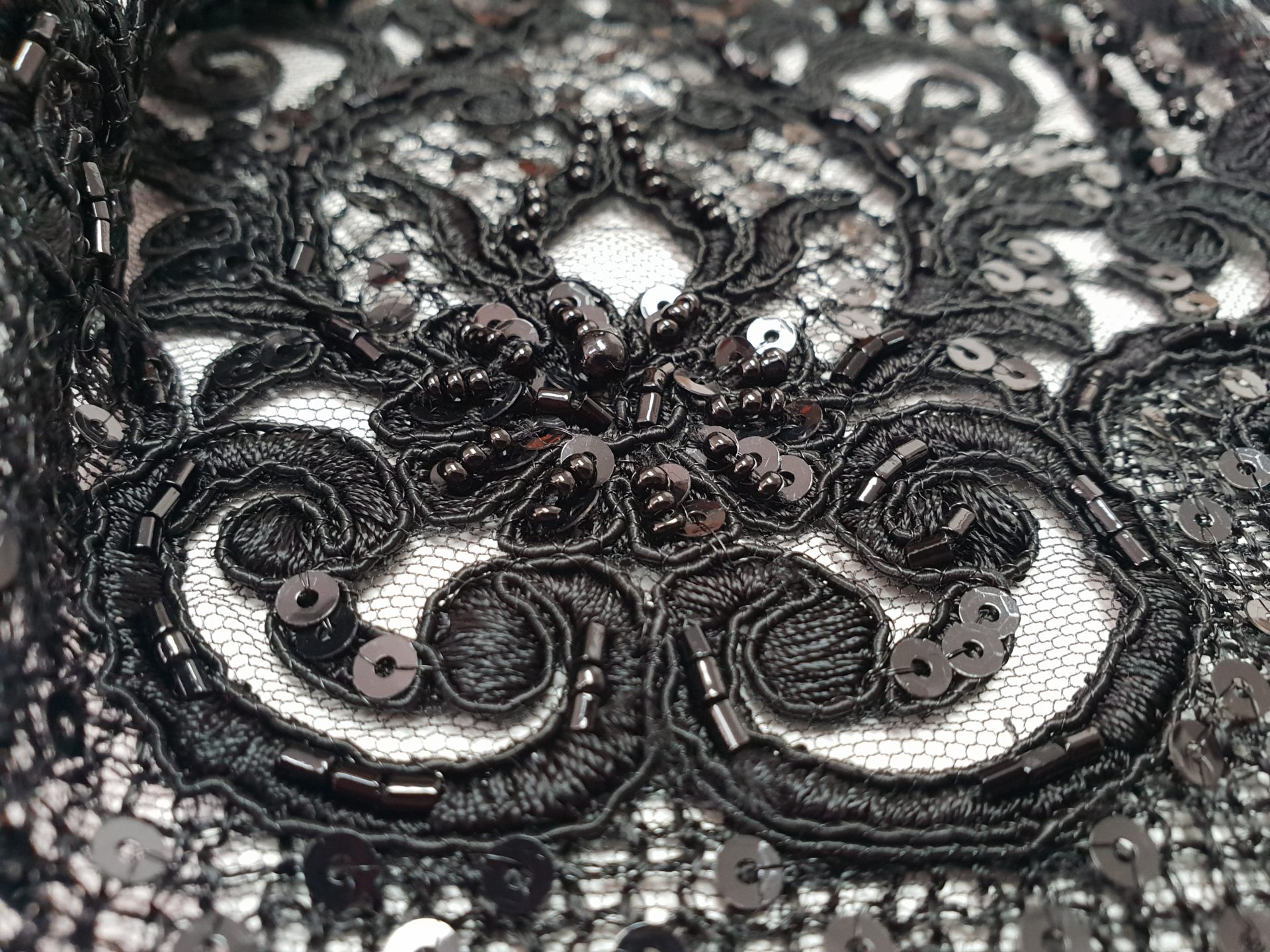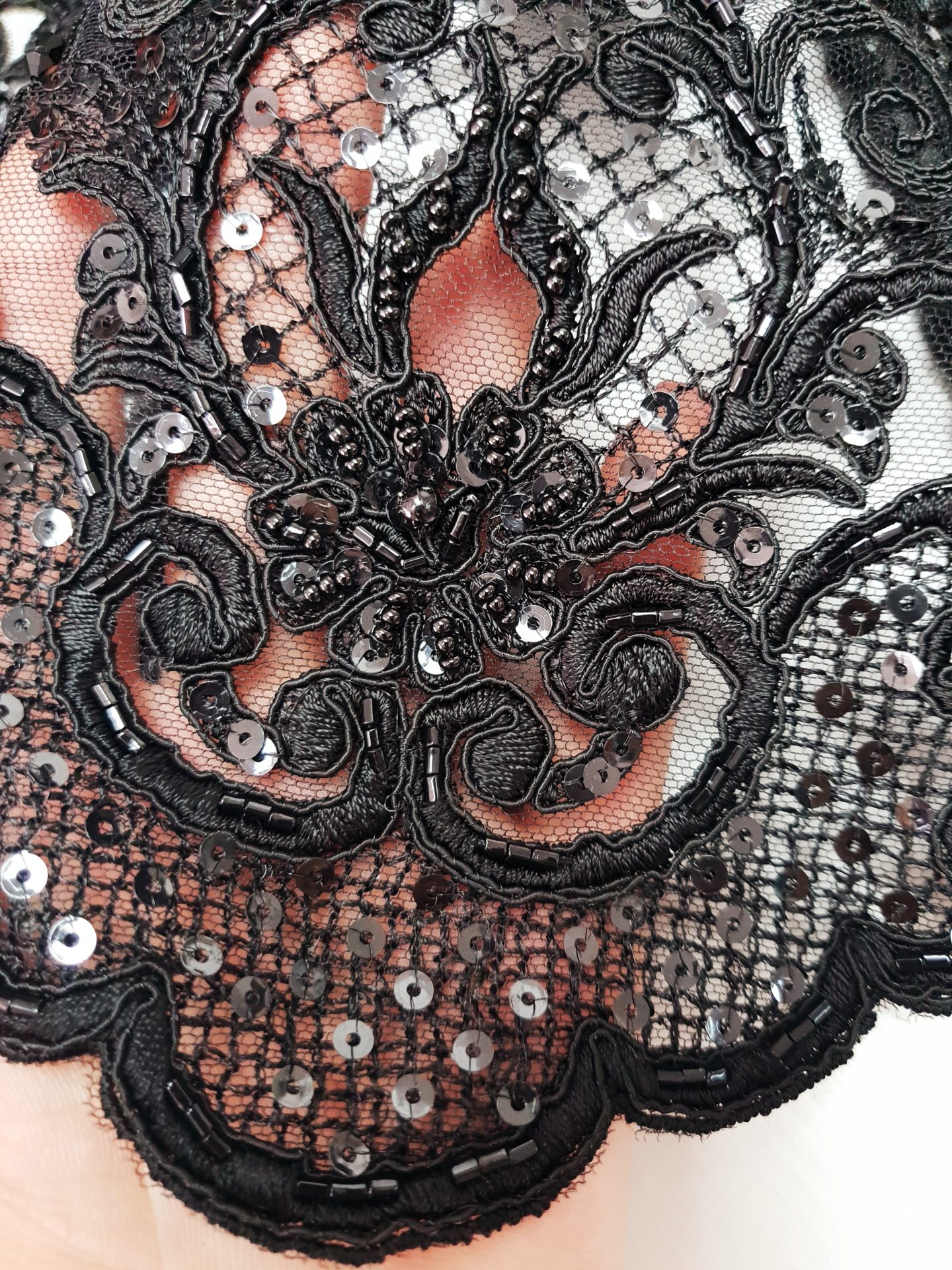 Caracteristici: Broderie neagra din bumbac accesorizata cu cristale