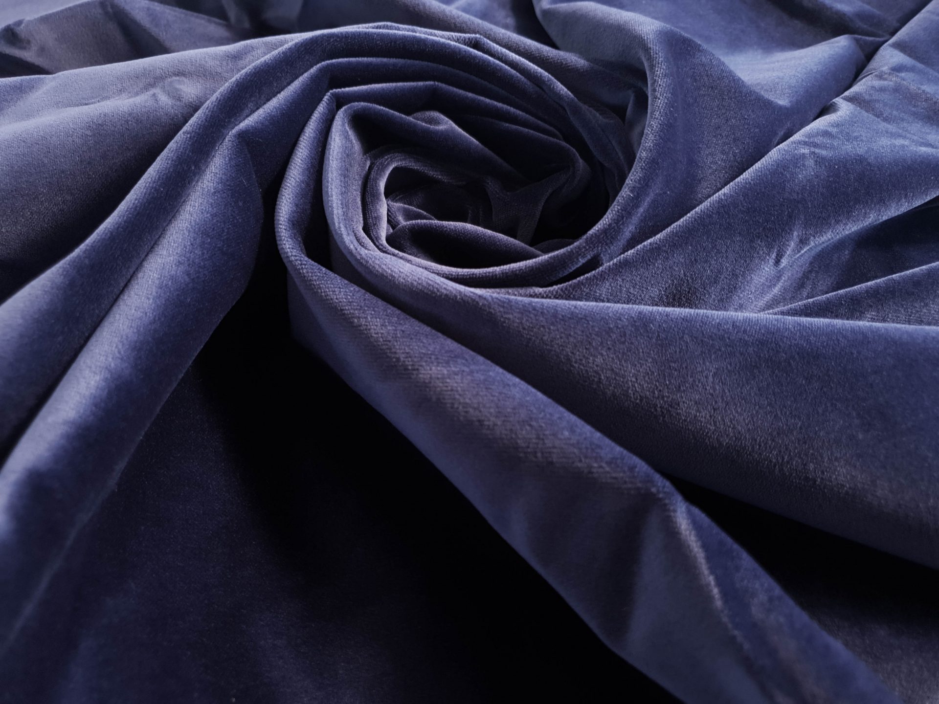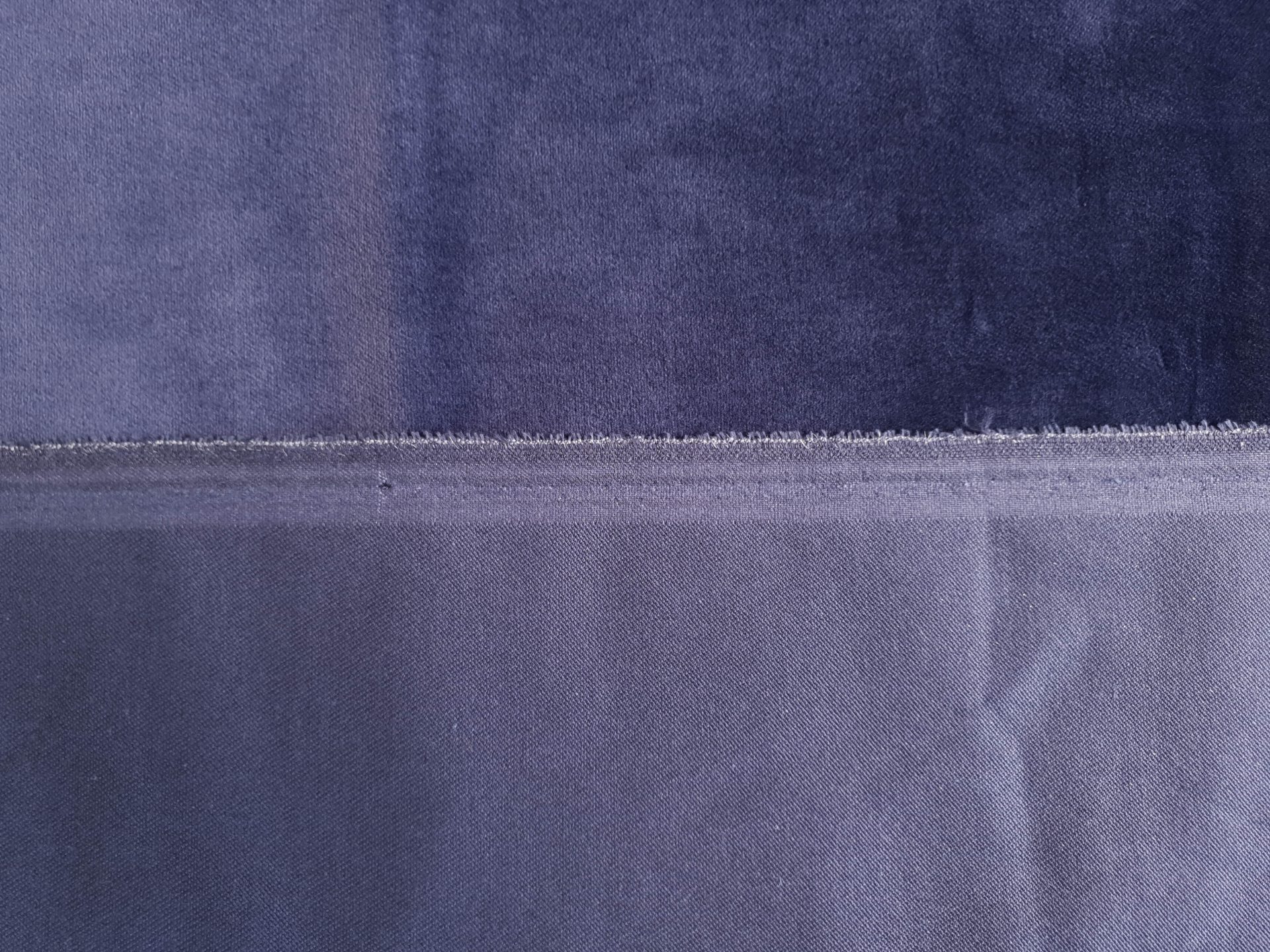 Tesuta pe o baza din bumbac, aceasta catifea are o textura plina, mai grosuta, placuta la atingere, cu un luciu foarte temperat si aspect calitativ superior.