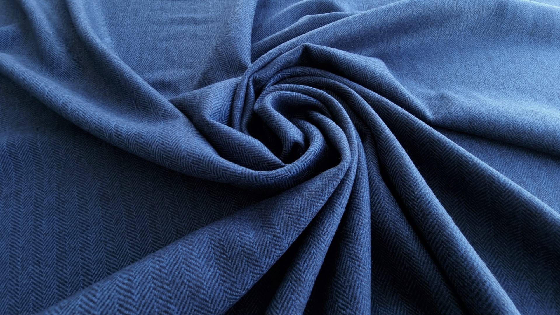 Stofa albastru inchis din lana si casmir, cu model discret bradulet, distribuit pe intreaga suprafata.