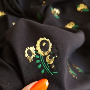 Brocard cu bumbac Blue Leaf, model floral imprimat si insertie de fir metalizat, fara elastan, model in tendinte, foarte placut la atingere.