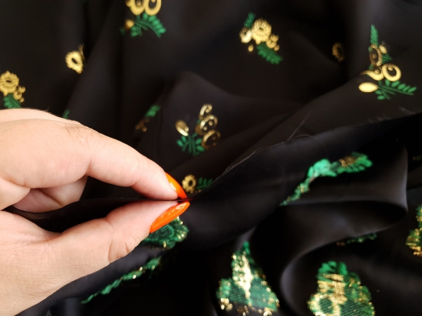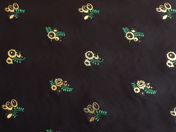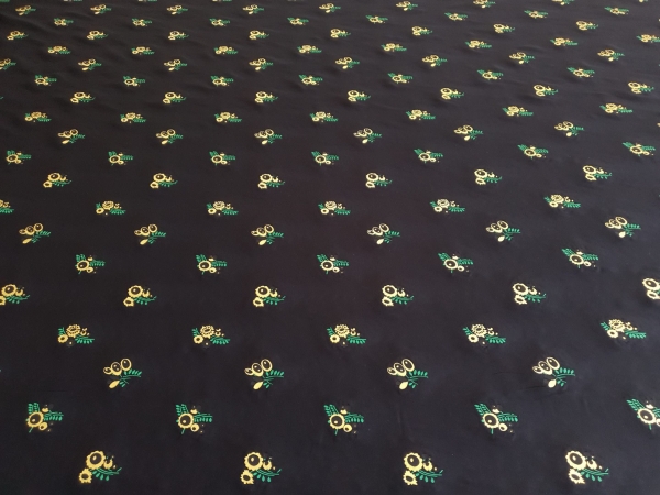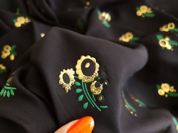 Brocard din vascoza cu model floral imprimat VIW209, cu fir metalizat, distribuit pe intreaga suprafata.