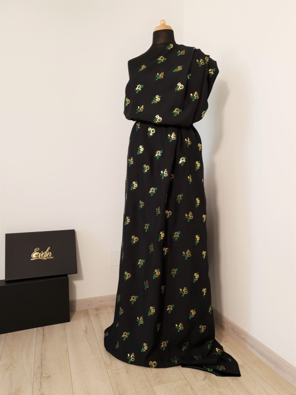 Aceasta tesatura este potrivita pentru realizarea articolelor vestimentare casual si elegante: rochii, fuste, salopete.