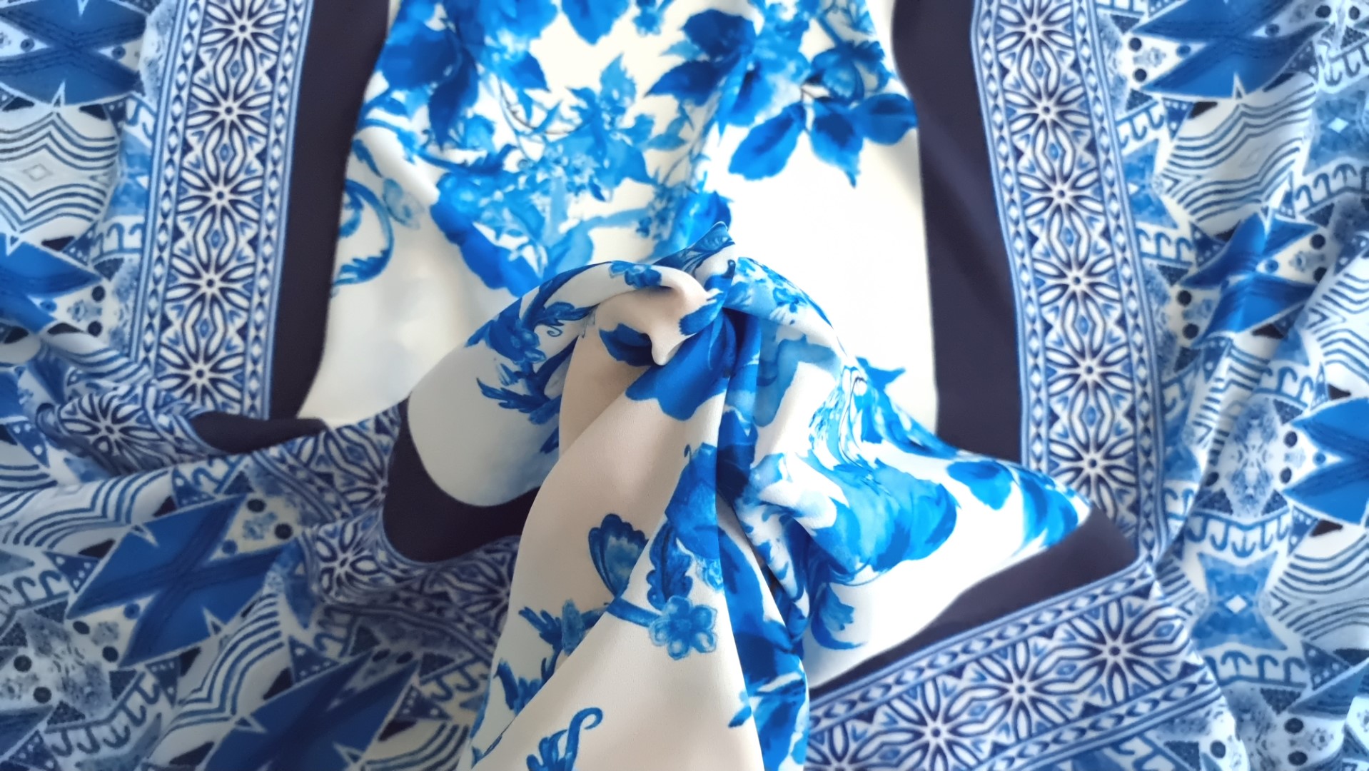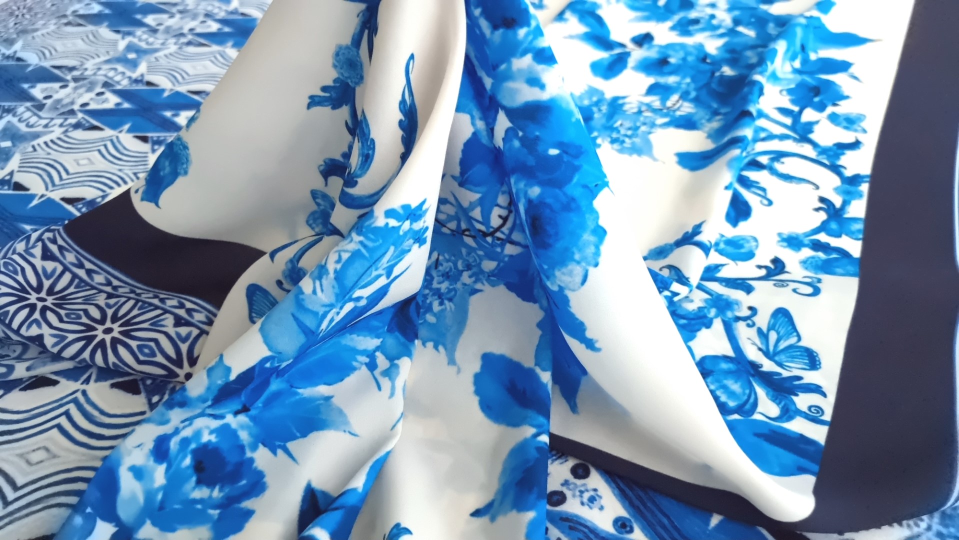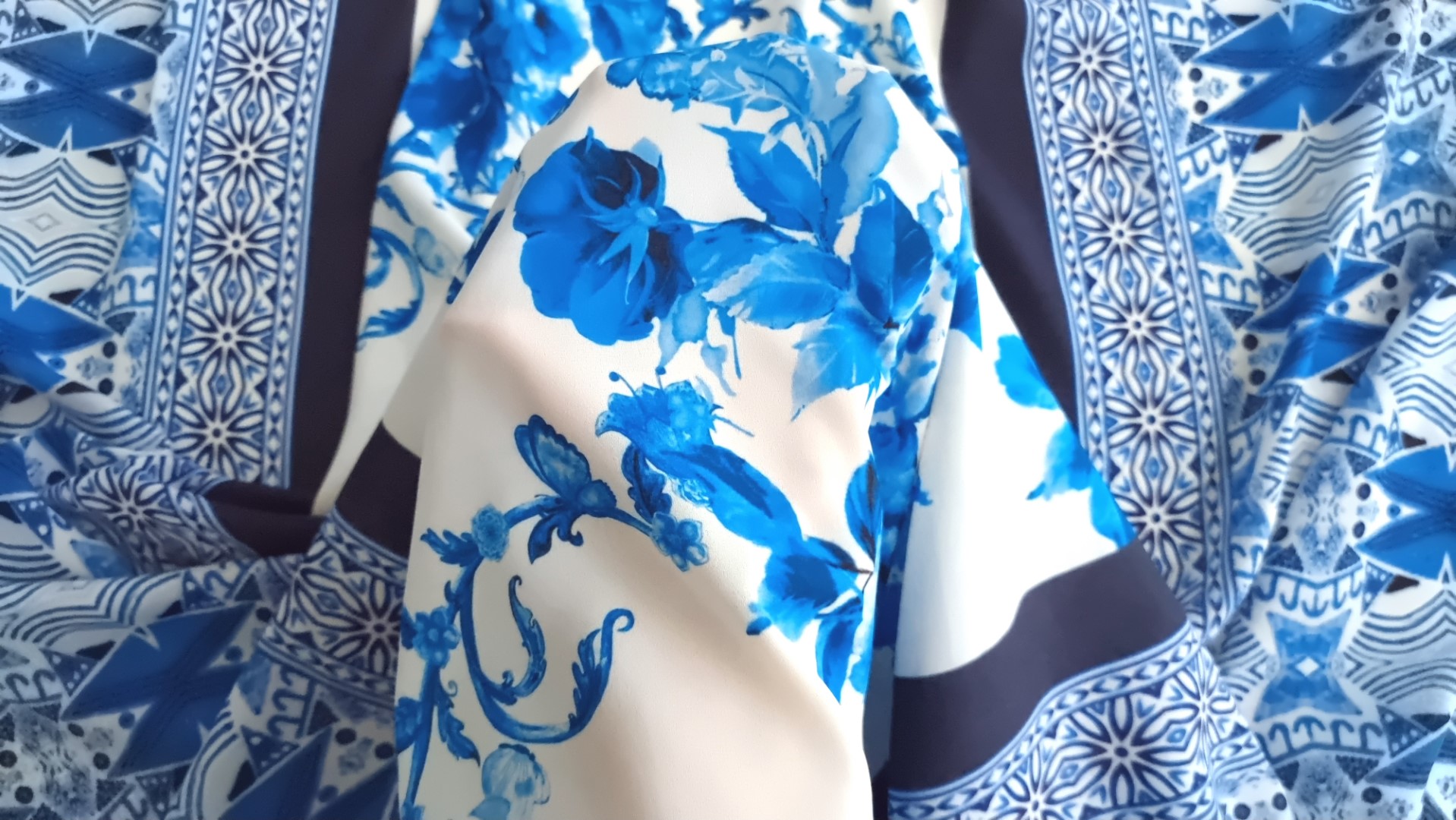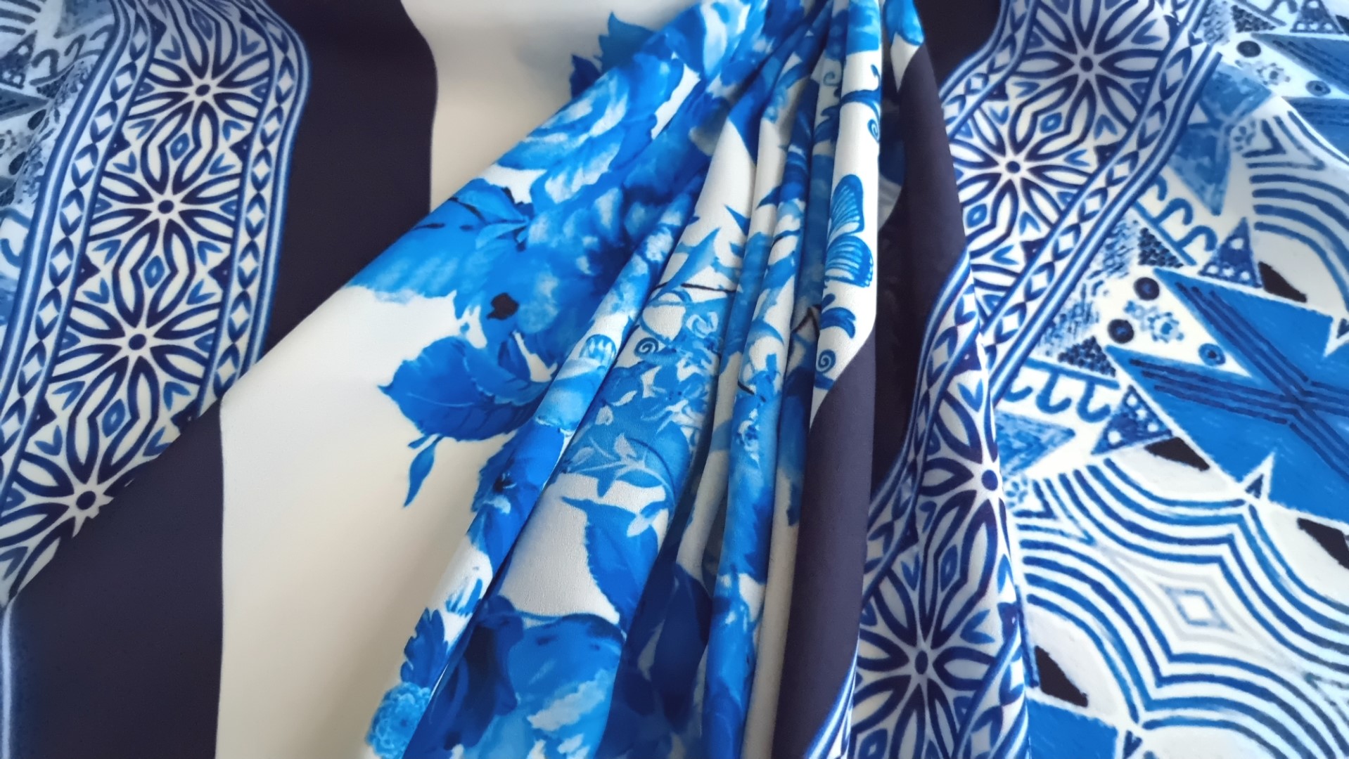 1 recenzie pentru Crepe de Chine Blue Abstract Nature