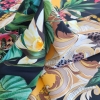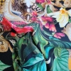Crepe de Chine din matase naturala cu model floral RCAV907, subtire si cu textura fina, vaporoasa, cu model de inspiratie Roberto Cavalli, foarte placut la atingere.