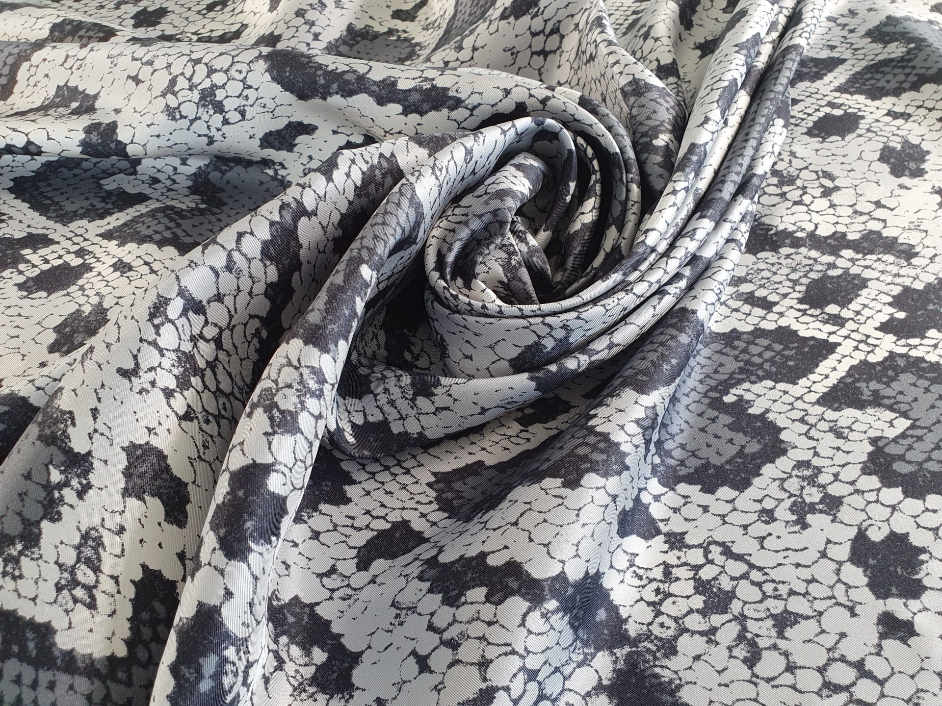 Matase naturala mata Snake print VER227, in tonuri de gri si ivory.