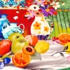 Caracteristici Satin din matase naturala imprimata model multicolor DG853: