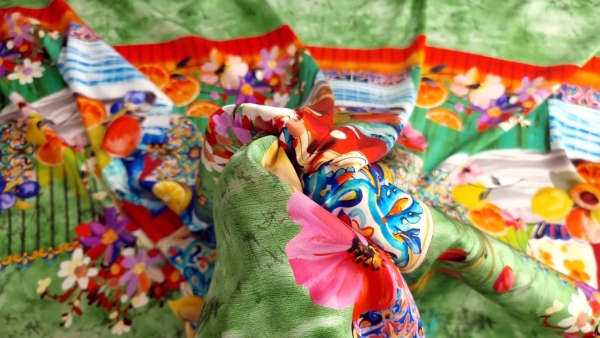 1 recenzie pentru Satin din matase naturala imprimata model multicolor DG853