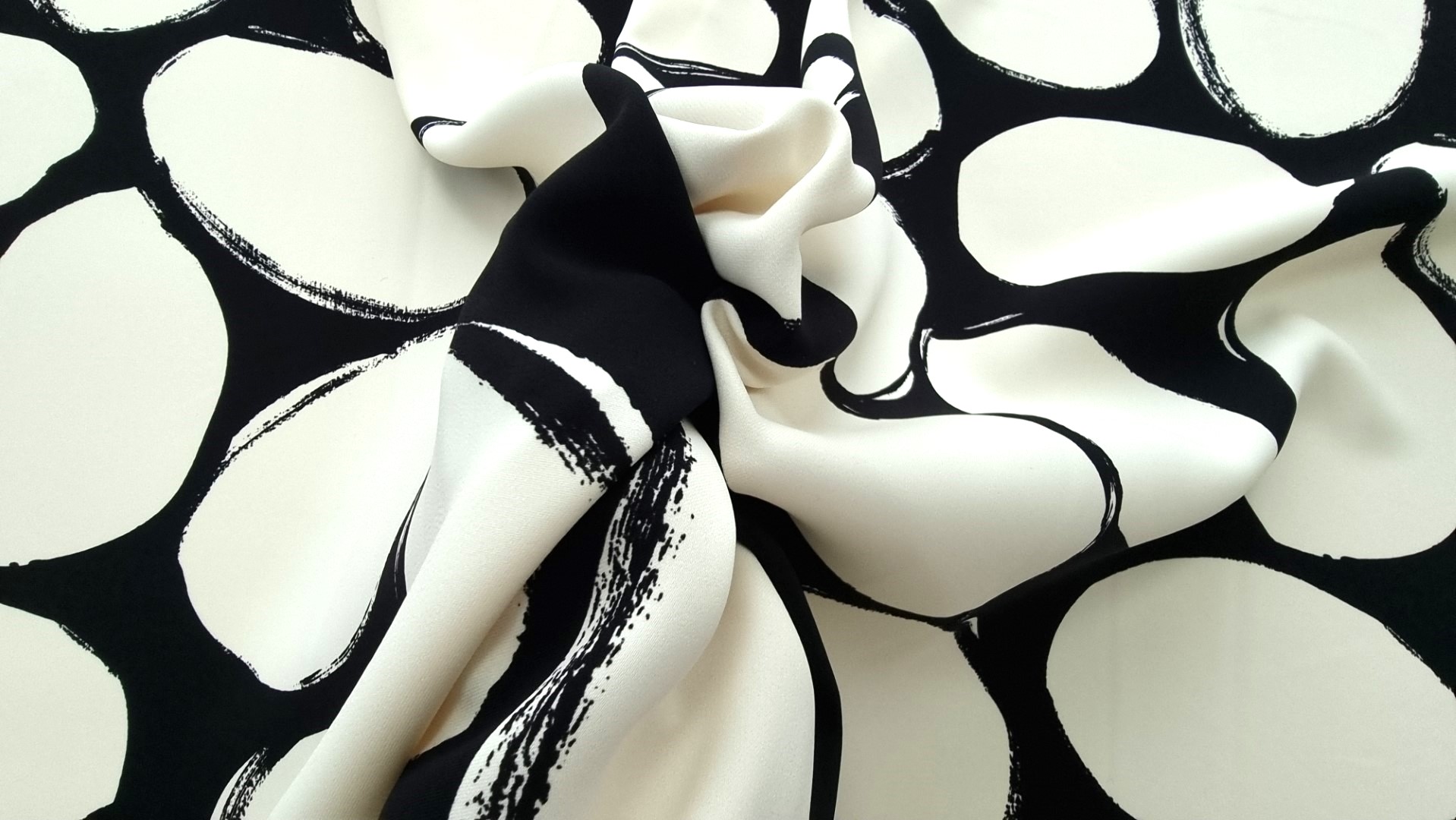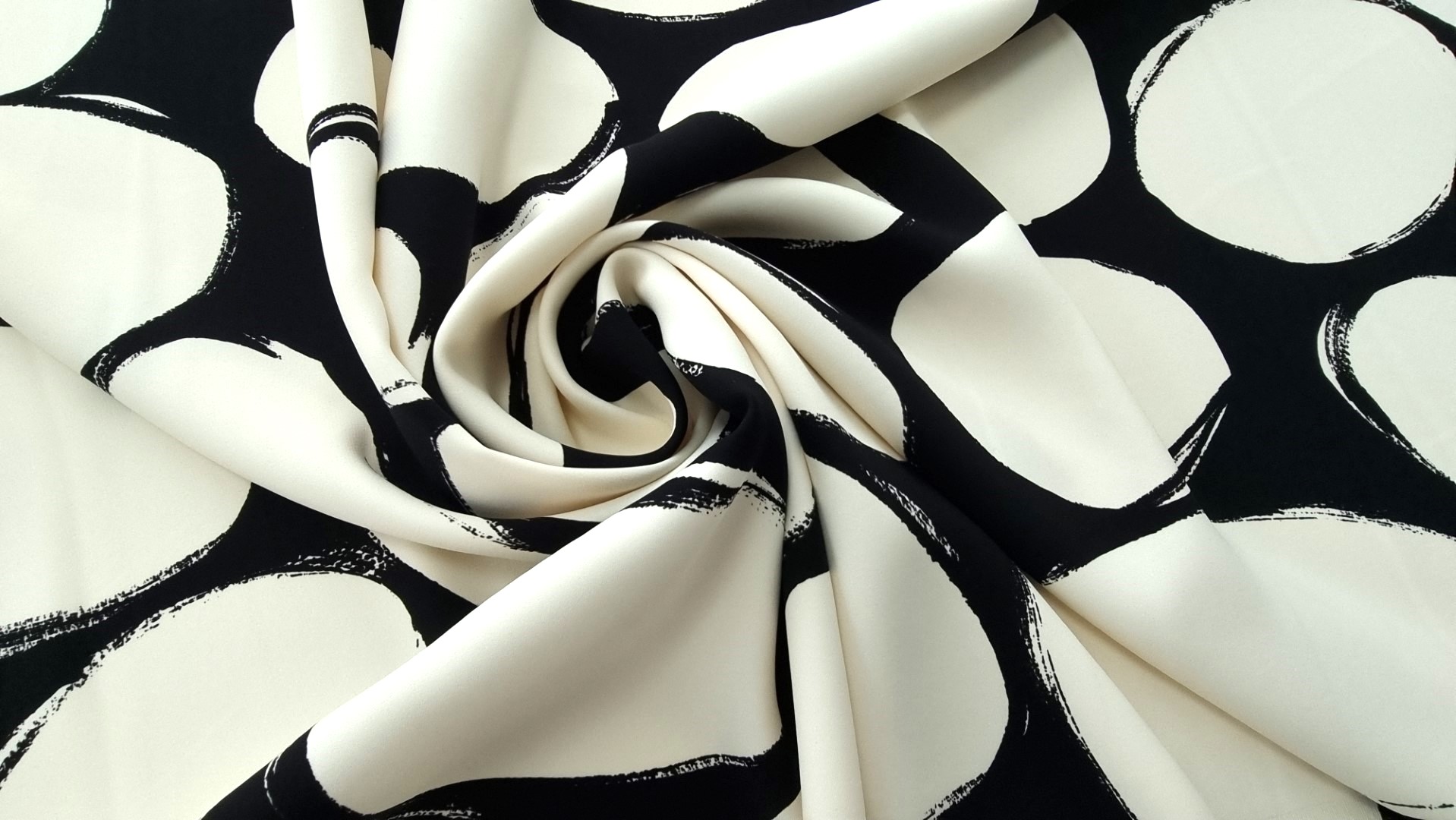Tesatura din vascoza imprimata White Pebbles MRN1169, model dispus pe intreaga suprafata, fara elastan, de inspiratie Marni.