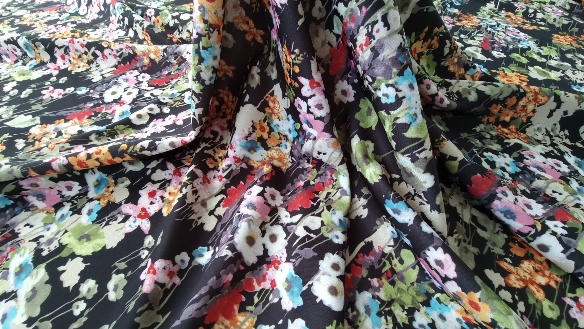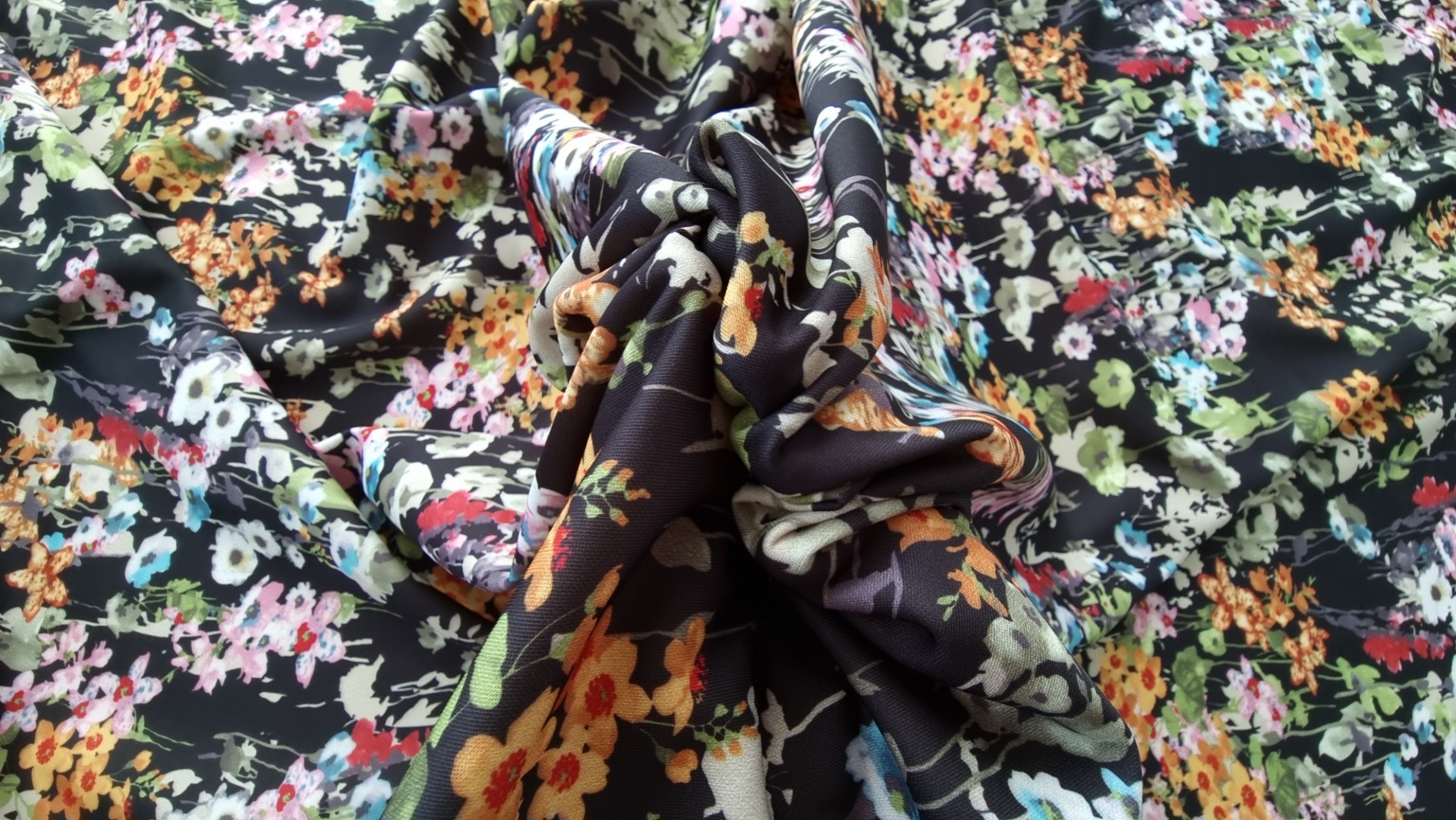 Jerse elastic imprimat floral black, cu mare rezistenta la intindere si purtare.