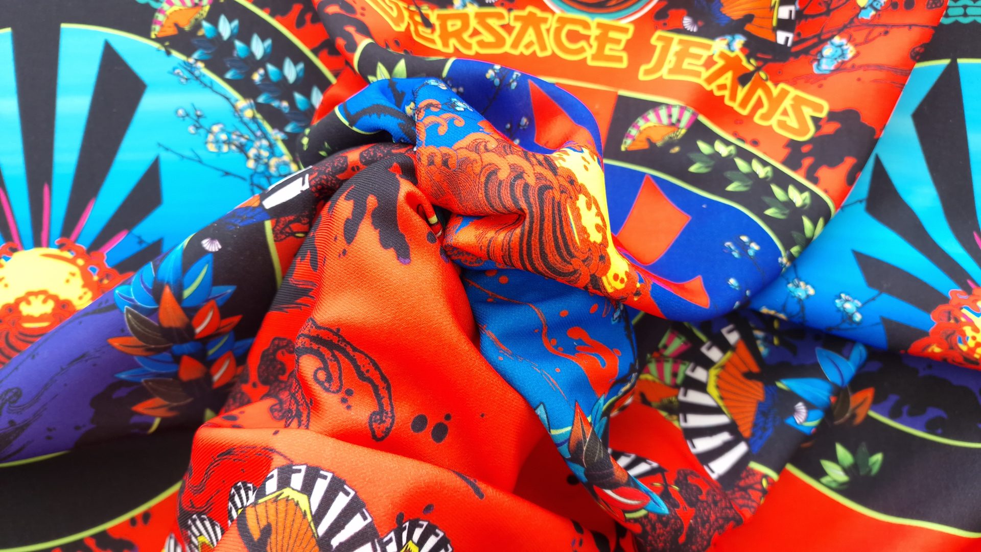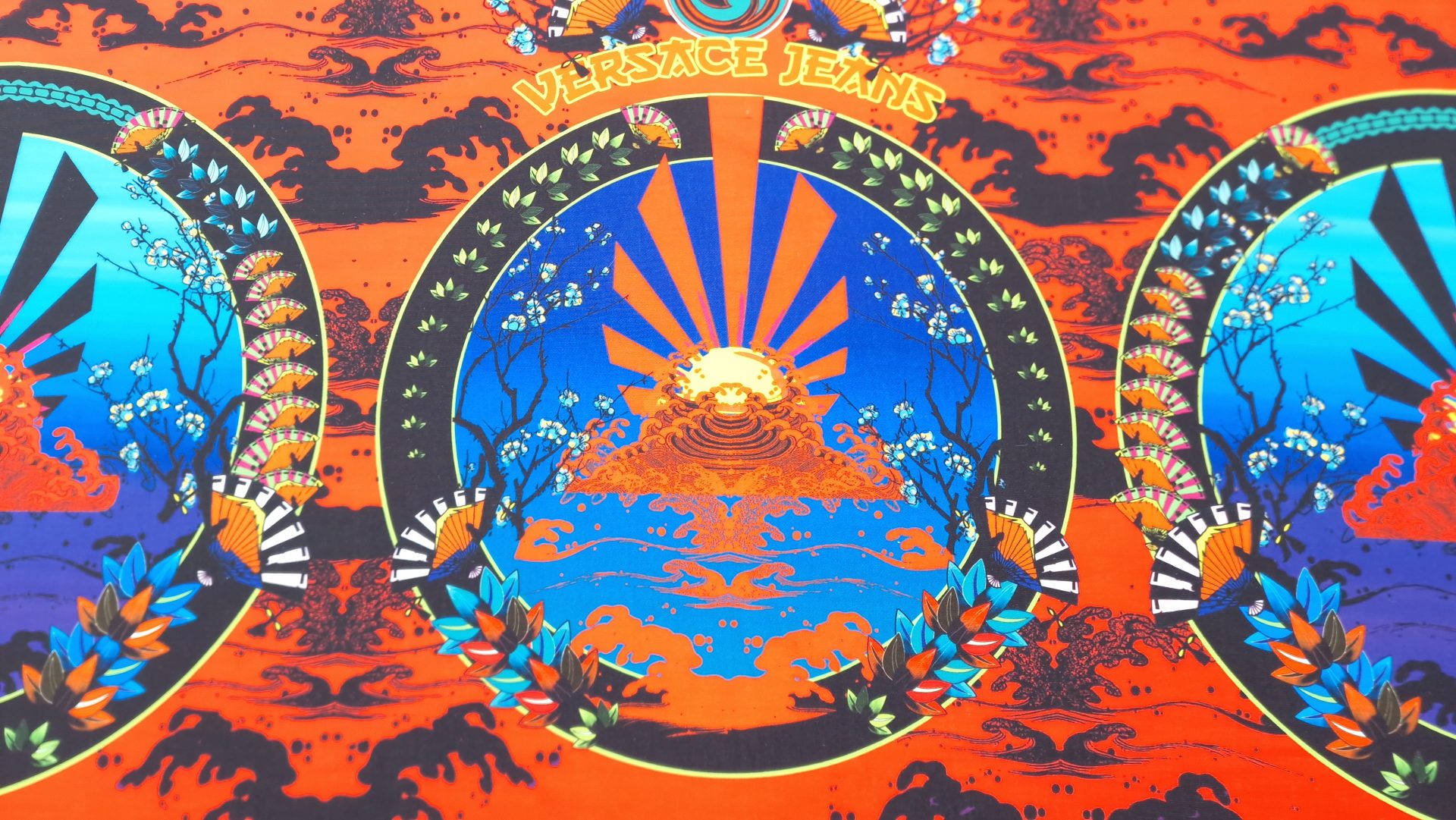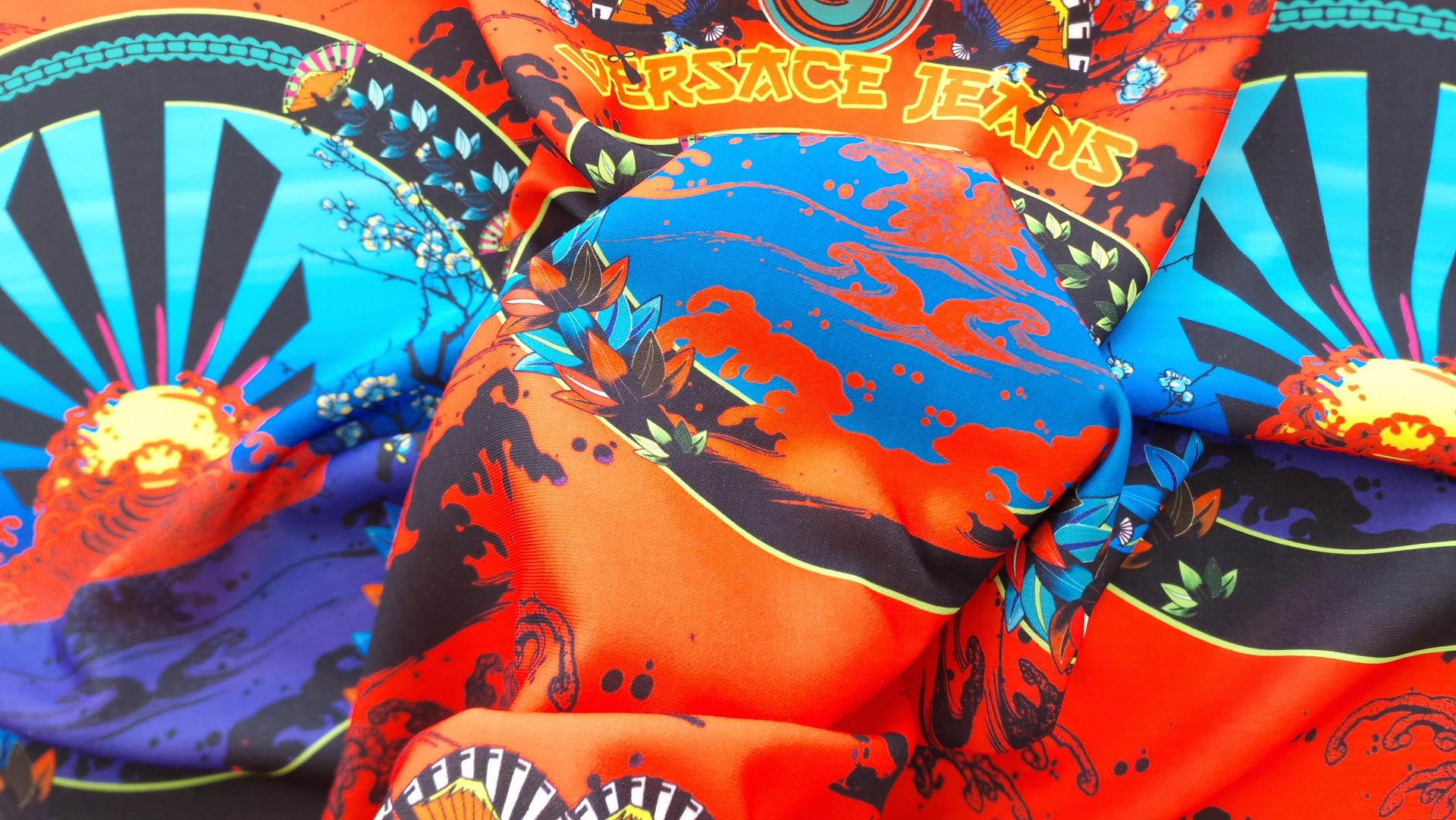 Jersey subtire model multicolor imprimat VER11157, usor elastic, cu mare rezistenta la intindere si purtare, model distribuit pe intreaga suprafata, design Versace.