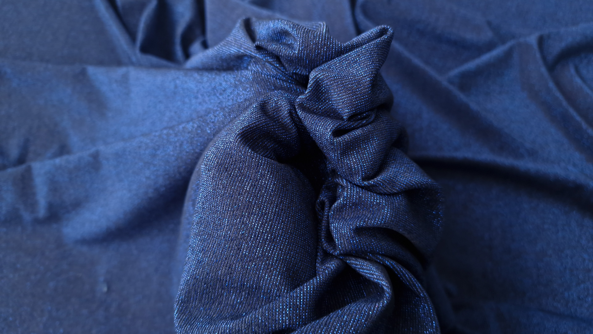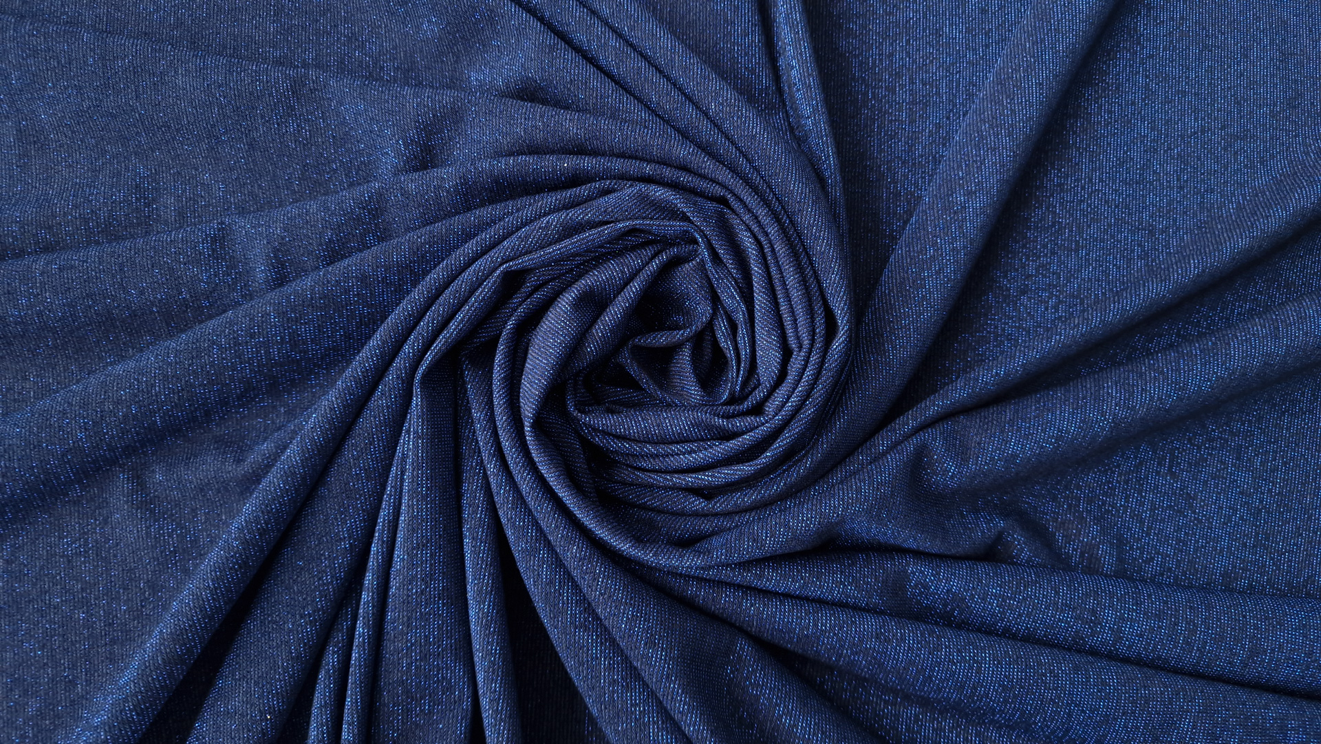 Jersey subtire din bumbac cu fir metalizat albastru, foarte placut la atingere.