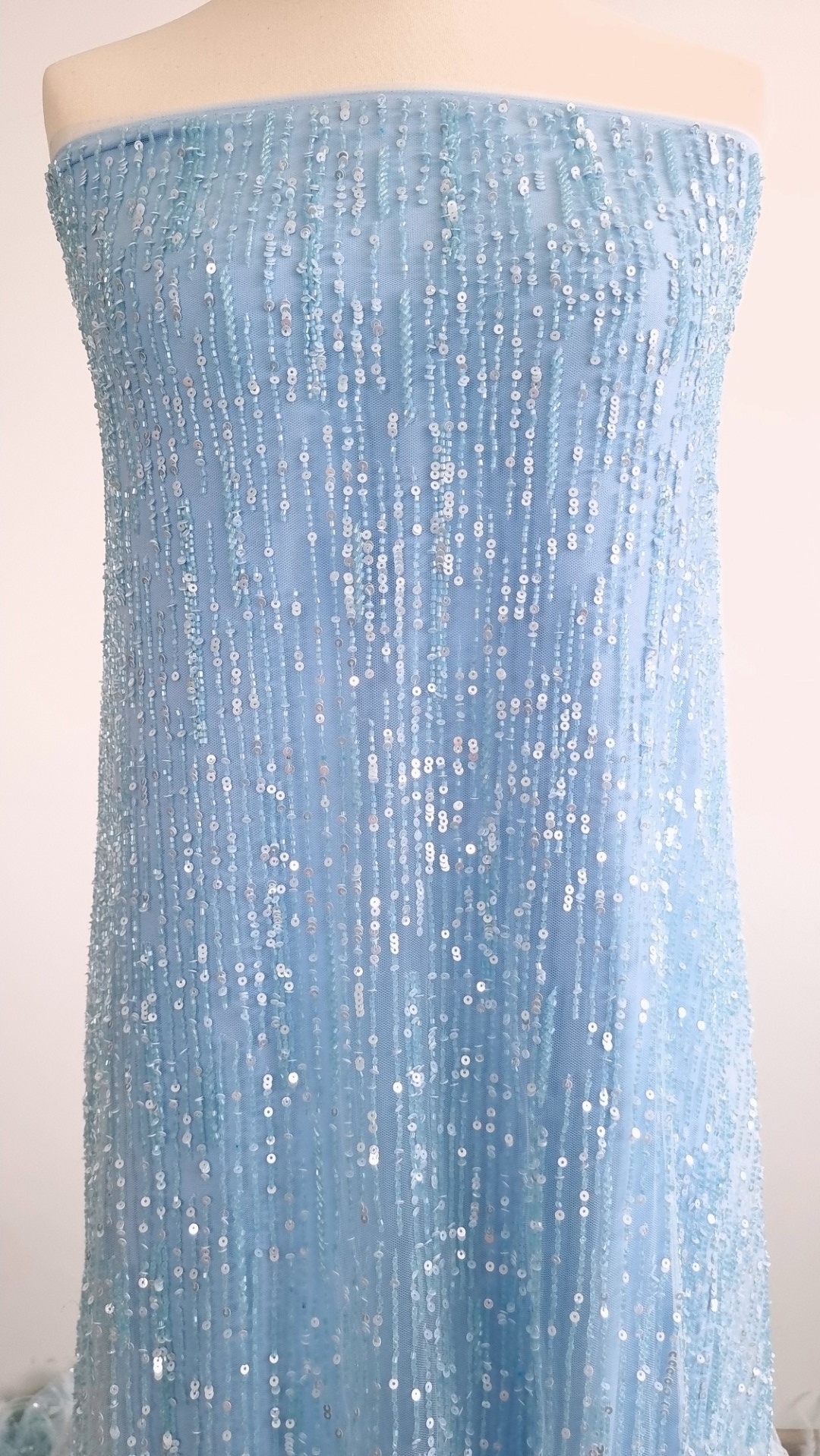 Broderie bleu ciel realizata manual cu fulgi naturali.