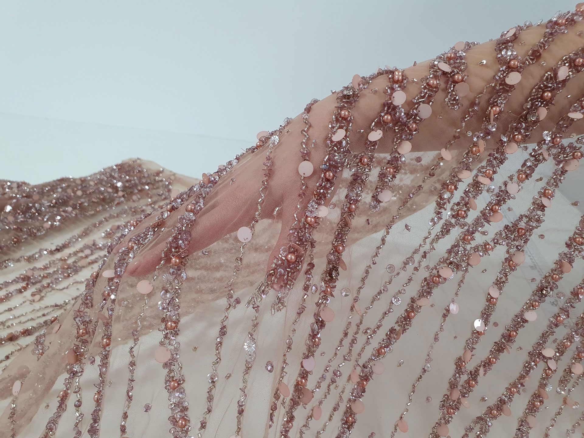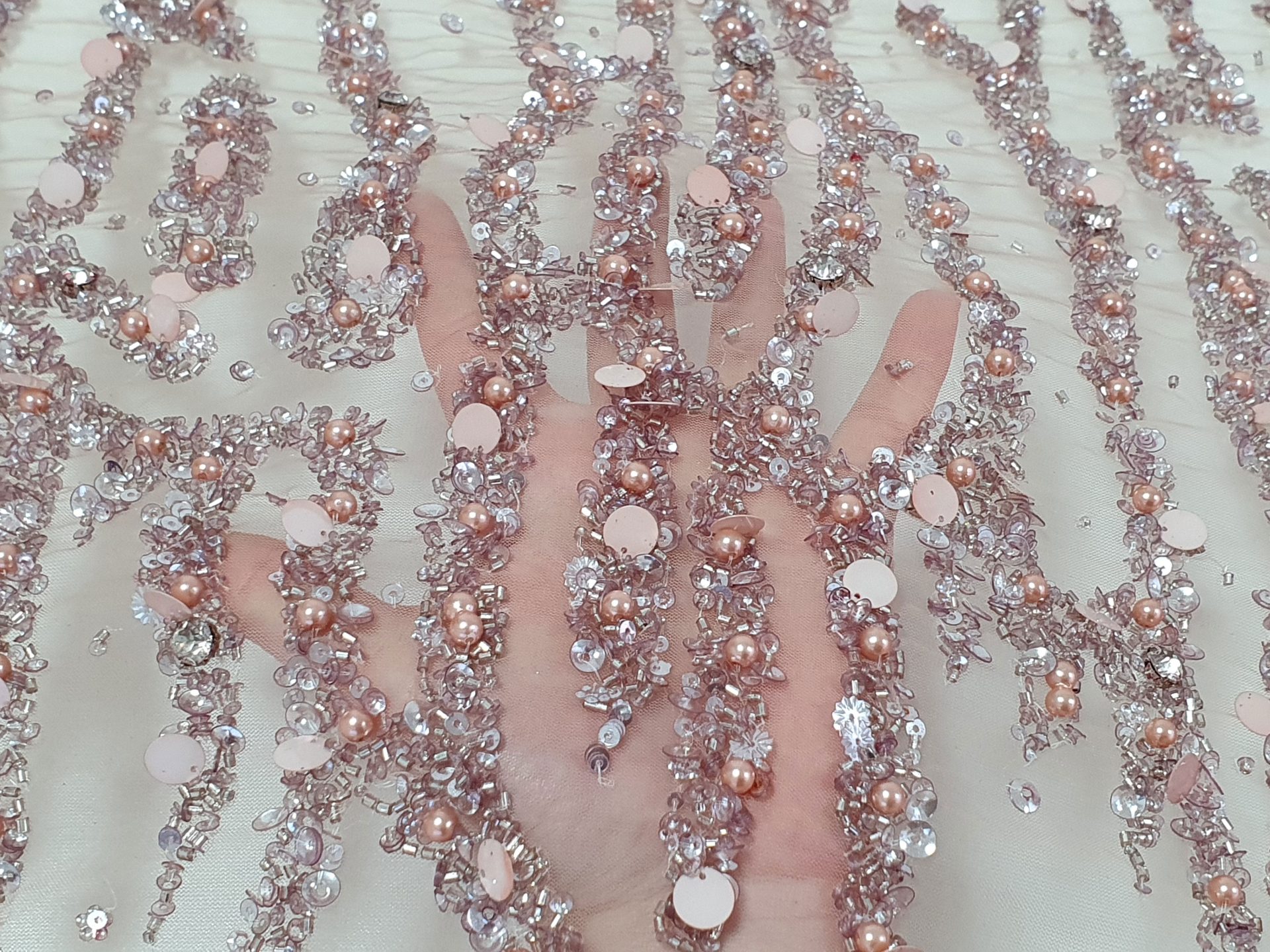 Broderie couture dusty pink lucrata 100% manual de inalta calitate a detaliilor si cu finisaje de exceptie.