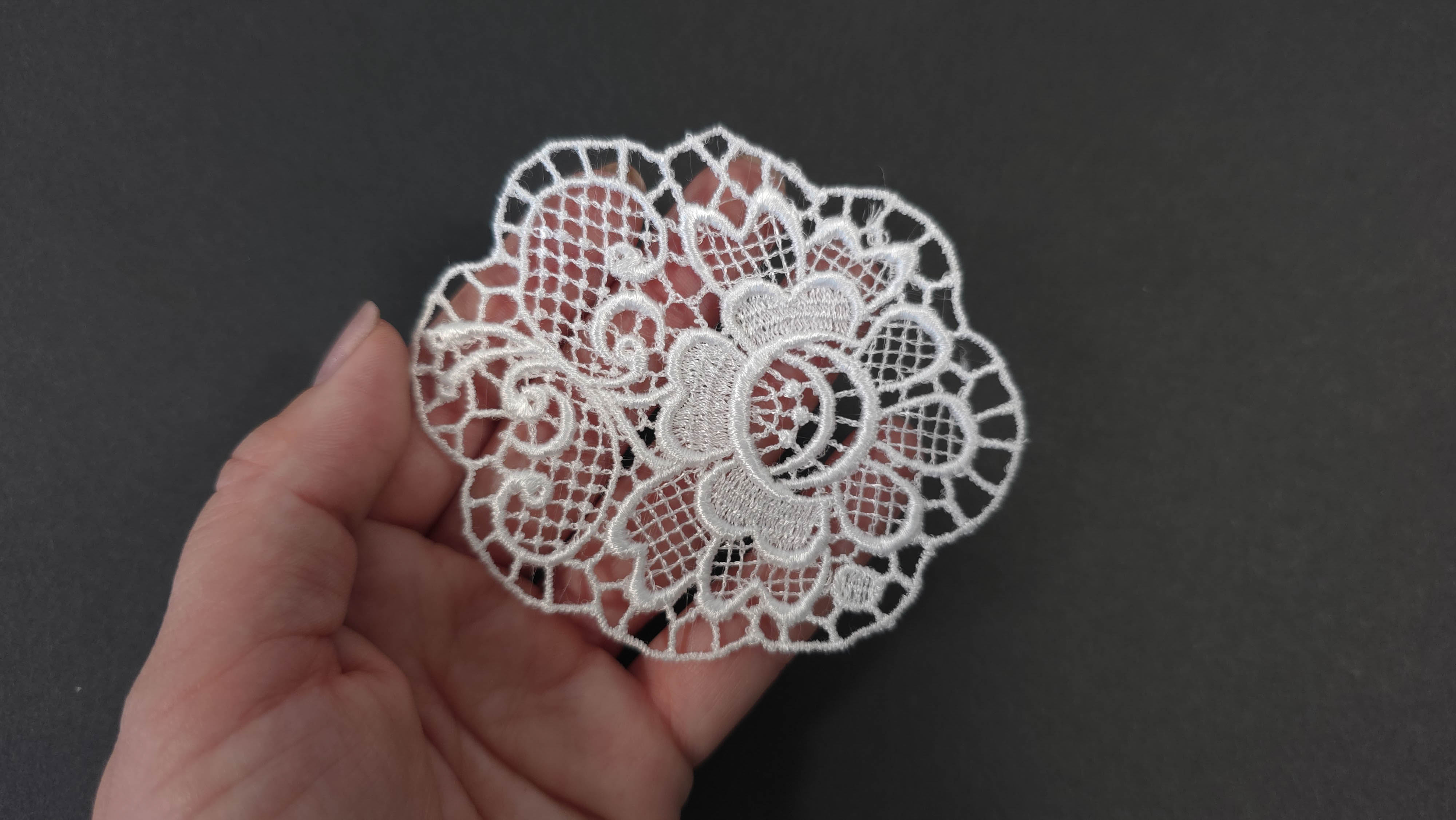 Aplicație decorativa brodata alba R495, calitate inalta, fabricata in Italia, cu model floral și detalii geometrice inspirate de dantela clasică. Textura sa fină, cu broderie atent realizată, adaugă un aer romantic oricărei creații vestimentare. Poate fi folosită pentru decorarea rochiilor, bluzelor, corsetelor, poșetelor textile sau accesoriilor artizanale. Forma asimetrică o face perfectă pentru combinații decorative, fie individual, fie în perechi simetrice. Se poate aplica prin coasere manuală sau lipire termică, în funcție de tipul de material. Vă invităm să ne urmăriți și pe rețelele de socializare pentru a rămâne informați cu privire la ultimele noastre actualizări, oferte exclusive și surse de inspirație. Alăturați-vă comunității noastre online pe Facebook și Instagram. Vă așteptăm cu drag!