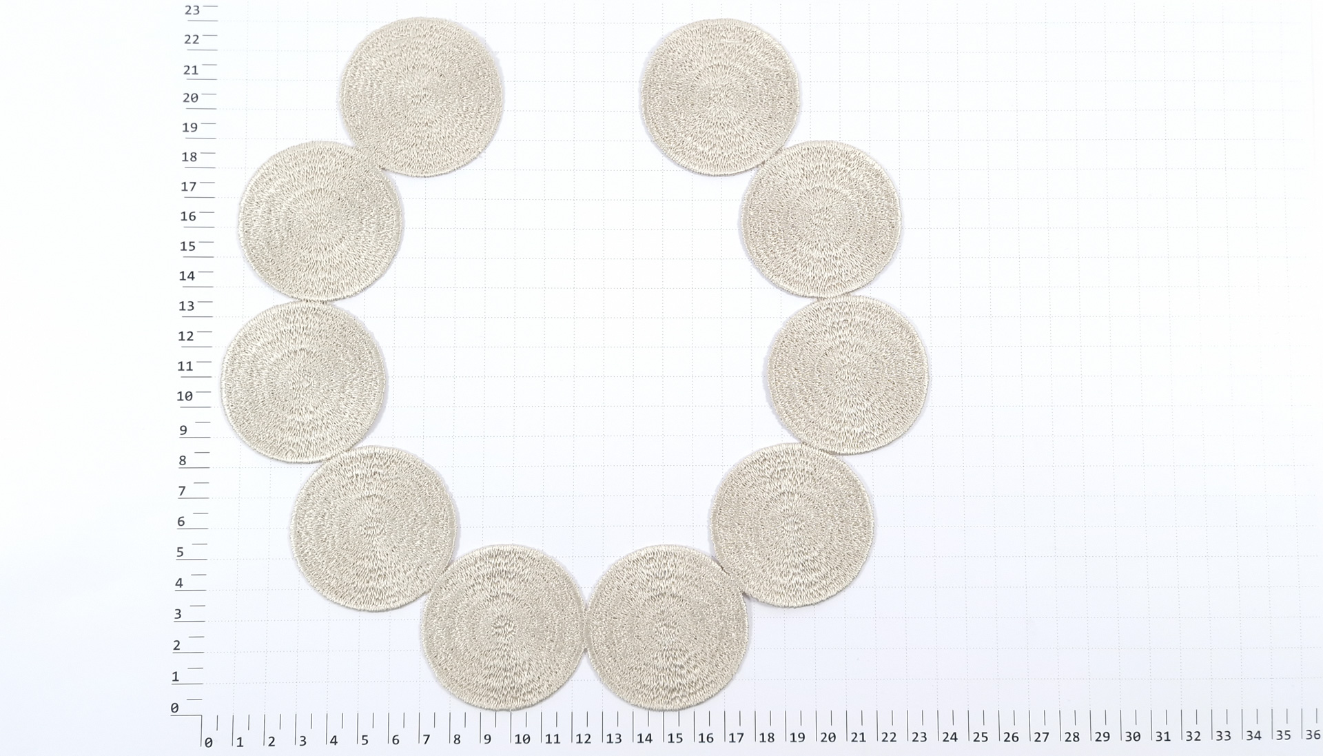 Caracteristici Aplicatie decorativa circulara din vascoza si bumbac R1: