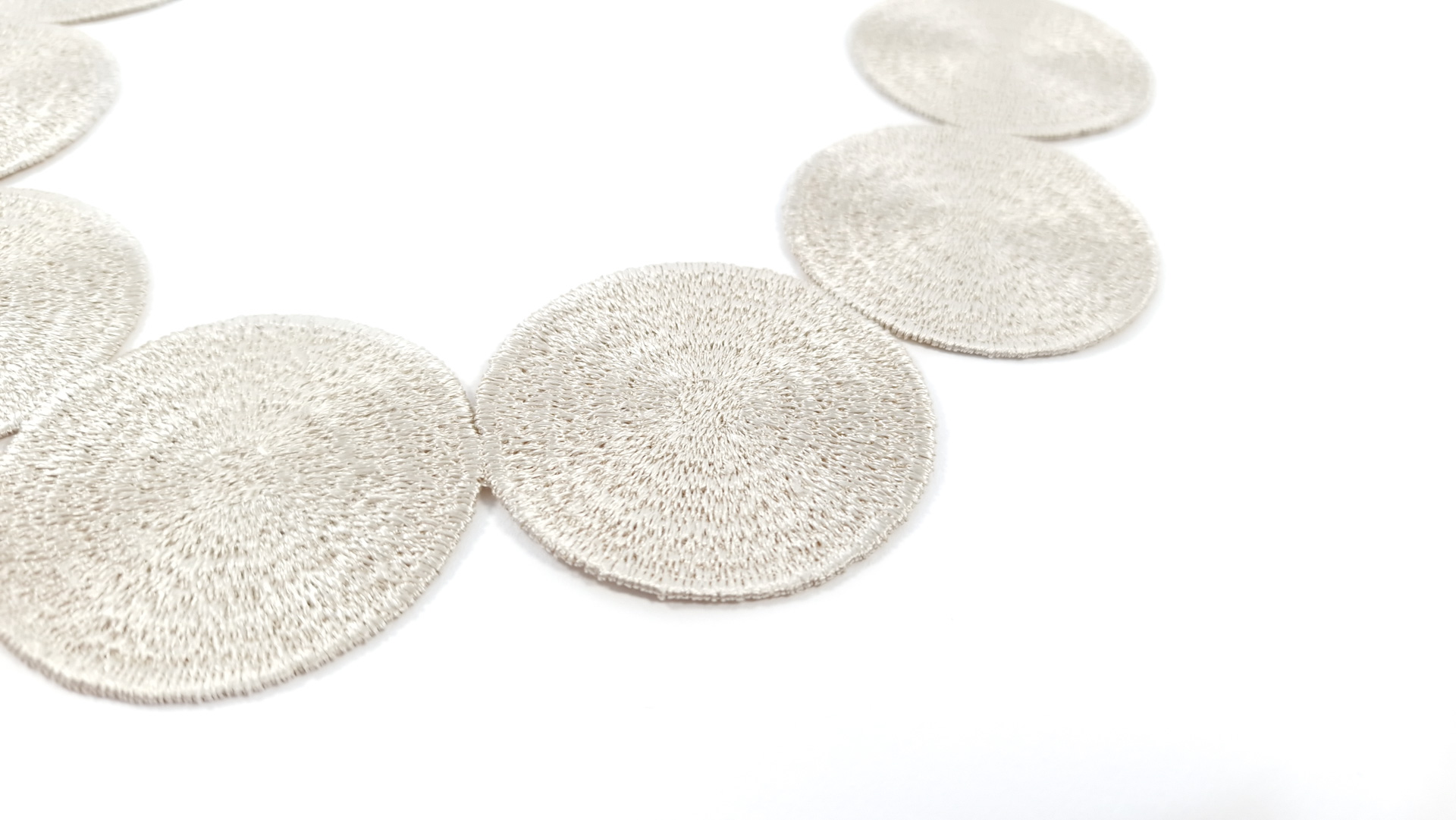 Aplicatie decorativa circulara din vascoza si bumbac R1, calitate inalta, fabricata in Italia.