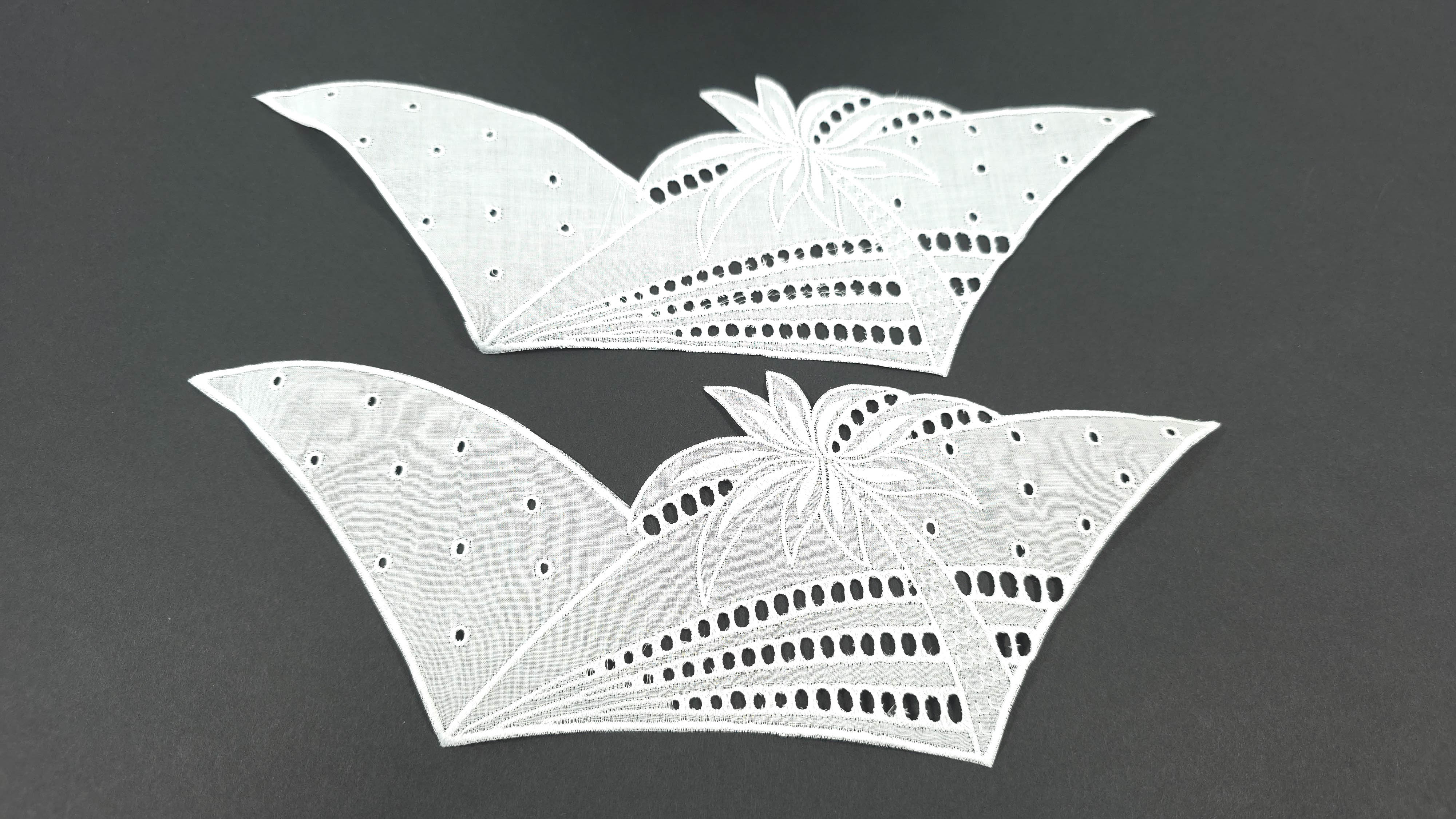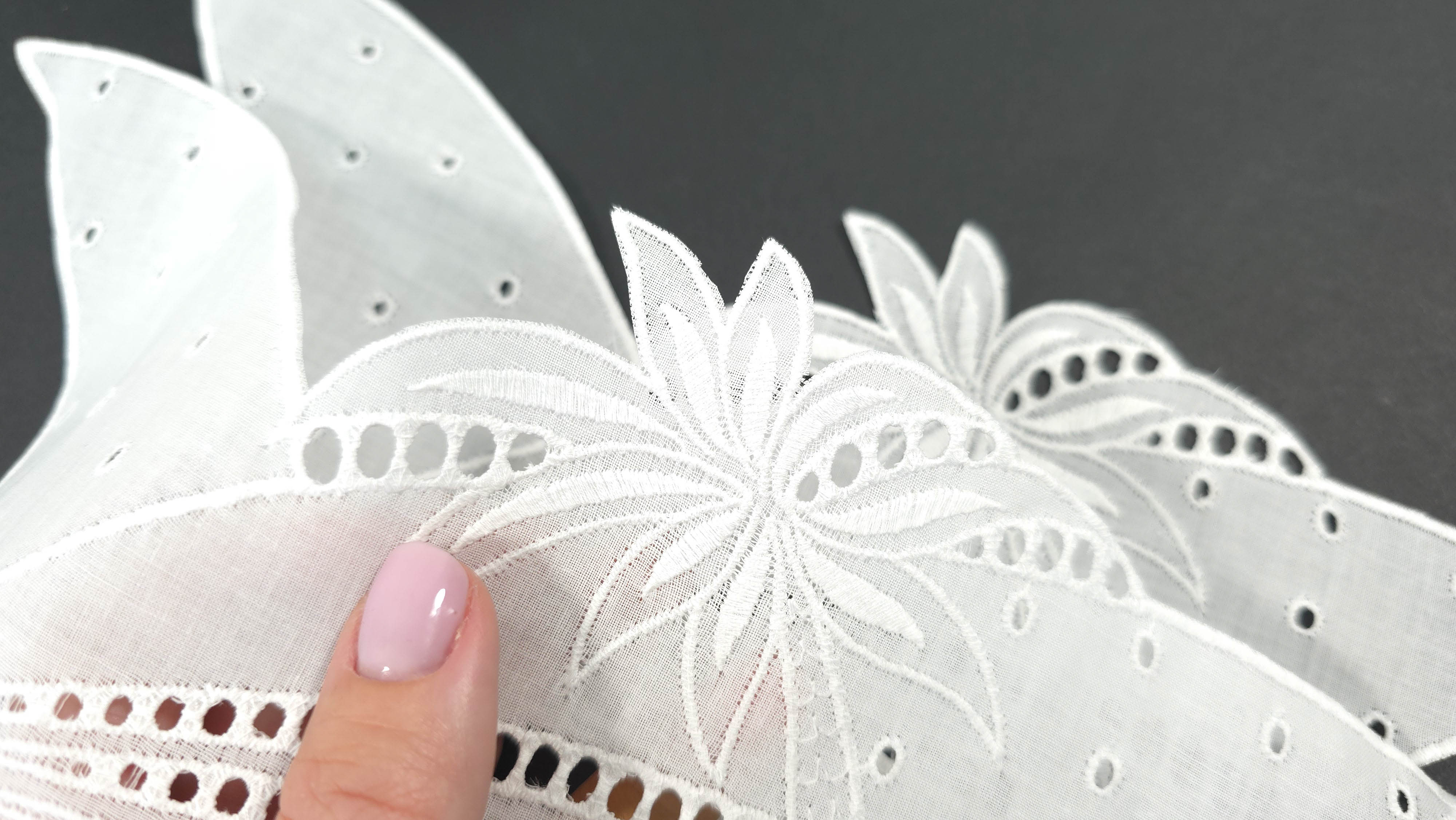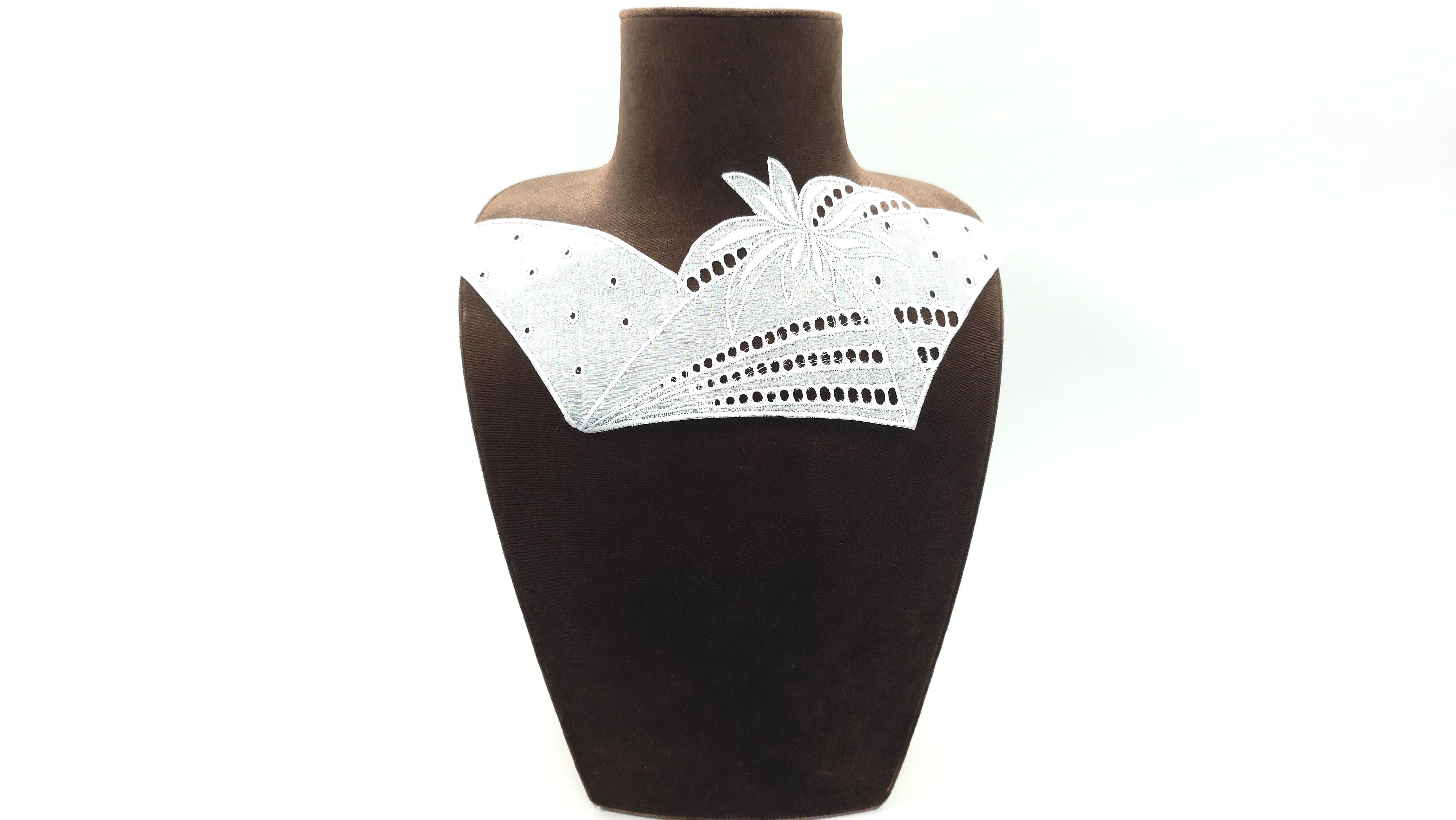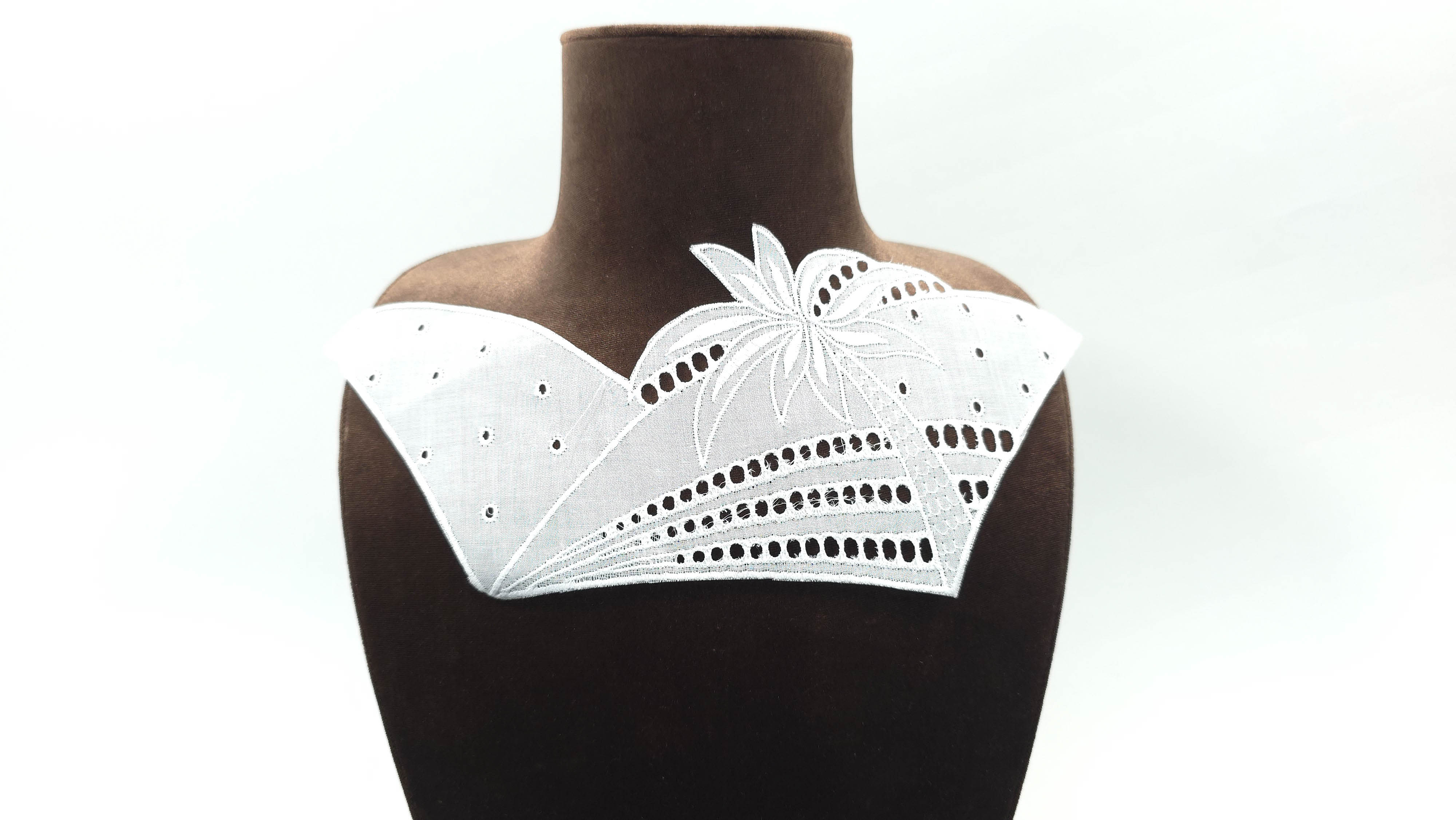 Guler brodat natural pereche R466, calitate inalta, fabricata in Italia, realizată din vâscoză și bumbac, cu broderie fină și decupaje geometrice elegante. Textura ușoară și delicată conferă un aspect rafinat oricărei creații vestimentare, fiind ideală pentru personalizarea gulerelor, rochiilor, bluzelor sau cămășilor. Datorită designului simetric și structurii stabile, se aplică ușor prin coasere sau lipire, adăugând o notă de eleganță atemporală fiecărui detaliu de croi.Vă invităm să ne urmăriți și pe rețelele de socializare pentru a rămâne informați cu privire la ultimele noastre actualizări, oferte exclusive și surse de inspirație. Alăturați-vă comunității noastre online pe Facebook și Instagram. Vă așteptăm cu drag!