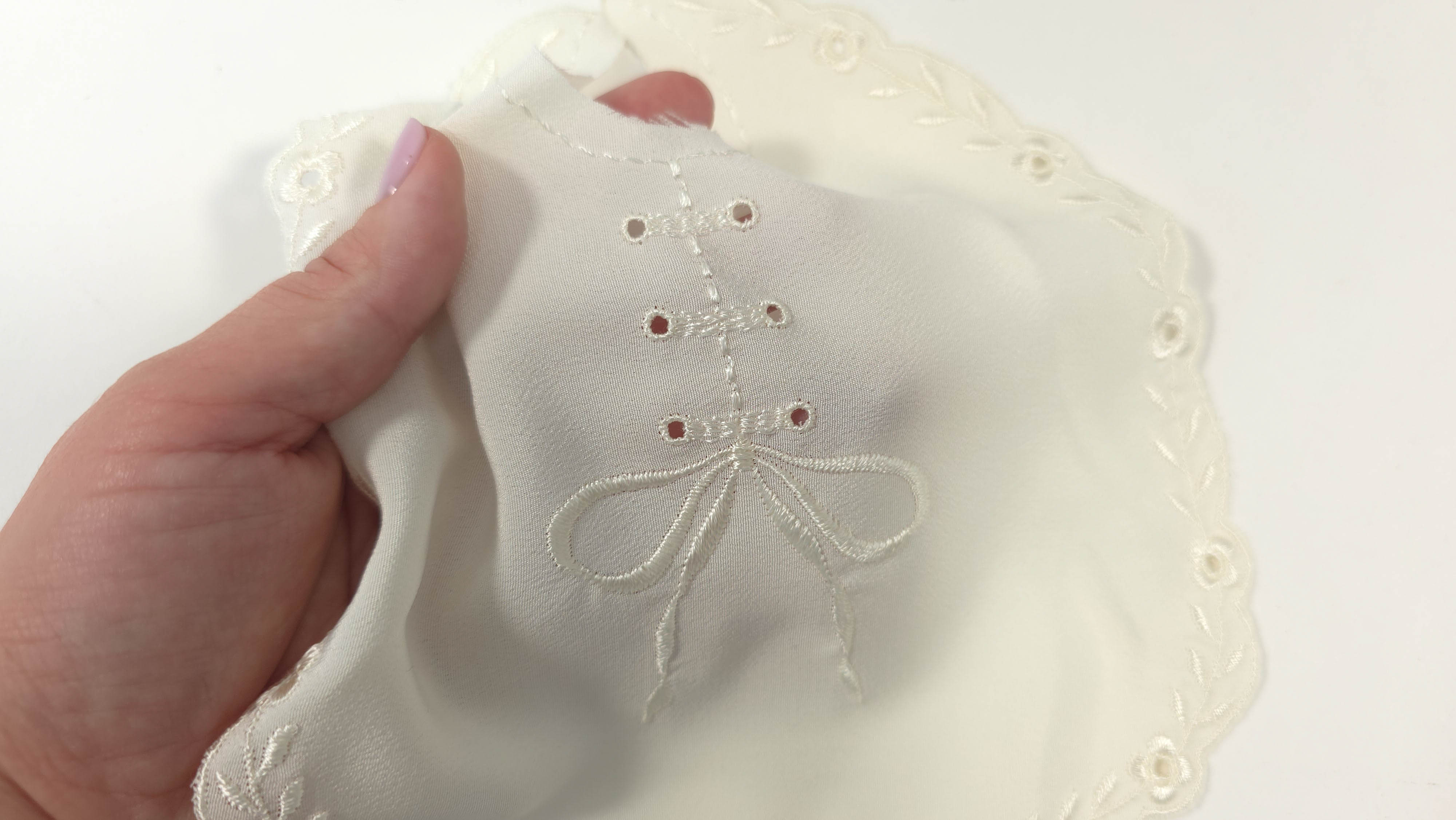 Guler decorativ din vascoza si bumbac R78 , calitate inalta, fabricata in Italia, cu margine ondulată și detalii fine în formă de fundițe. Realizat din material moale și ușor lucios, oferă un aspect elegant și delicat, ideal pentru personalizarea bluzelor, rochiilor, body-urilor pentru copii sau a pieselor vestimentare handmade. Se poate coase manual sau mecanic, fiind un detaliu decorativ ce transformă orice creație într-o piesă deosebită. Vă invităm să ne urmăriți și pe rețelele de socializare pentru a rămâne informați cu privire la ultimele noastre actualizări, oferte exclusive și surse de inspirație. Alăturați-vă comunității noastre online pe Facebook și Instagram. Vă așteptăm cu drag!