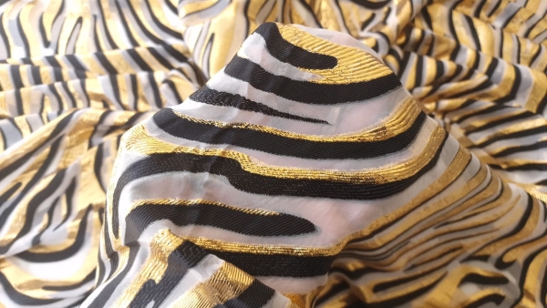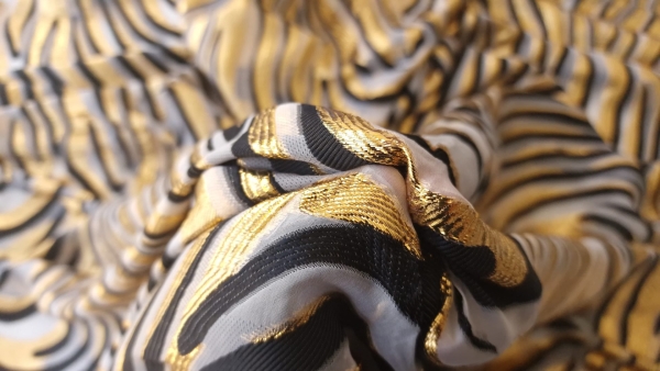 Matase naturala cu insertii de fir metalizat VER1257, usor elastica.