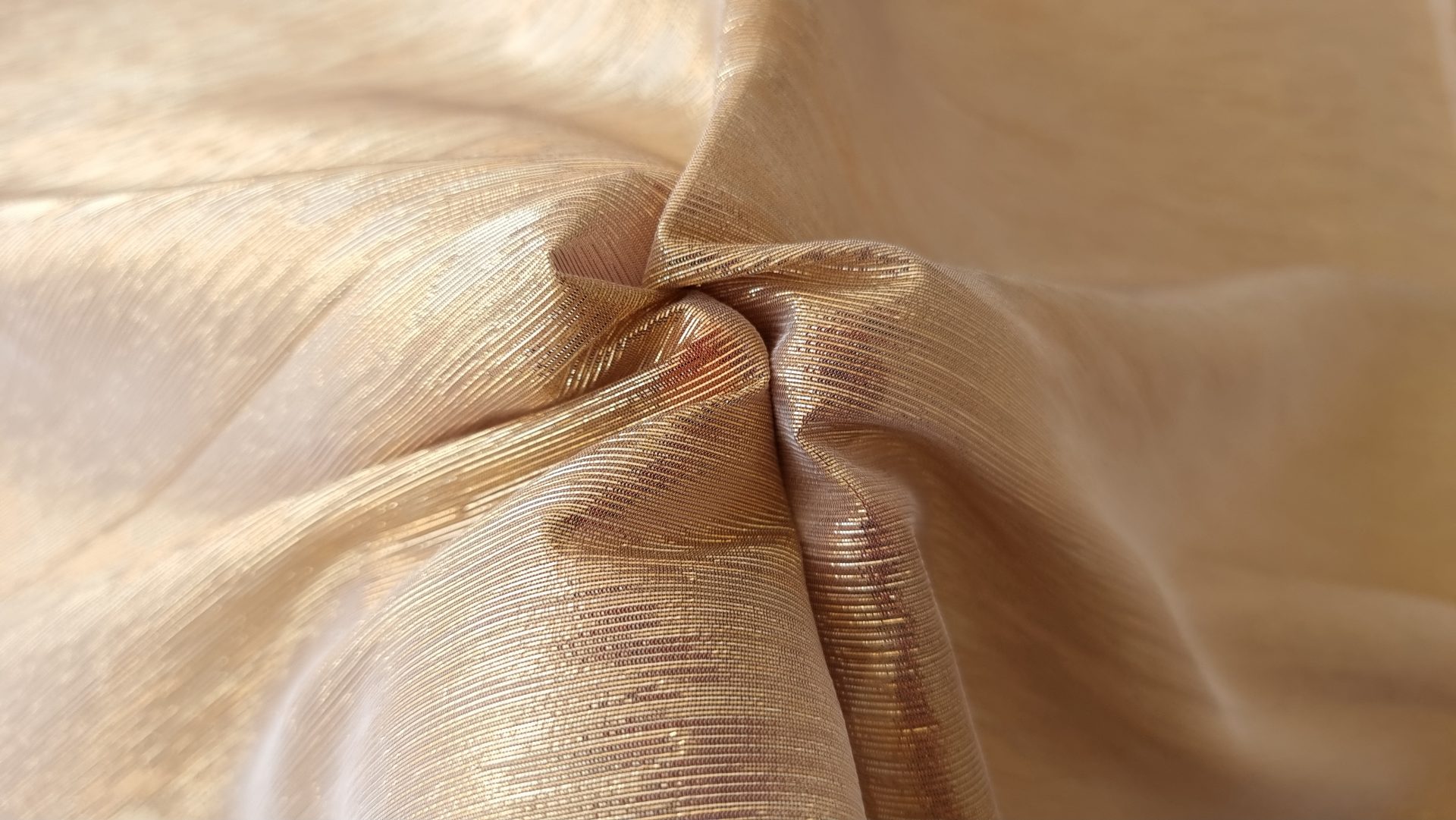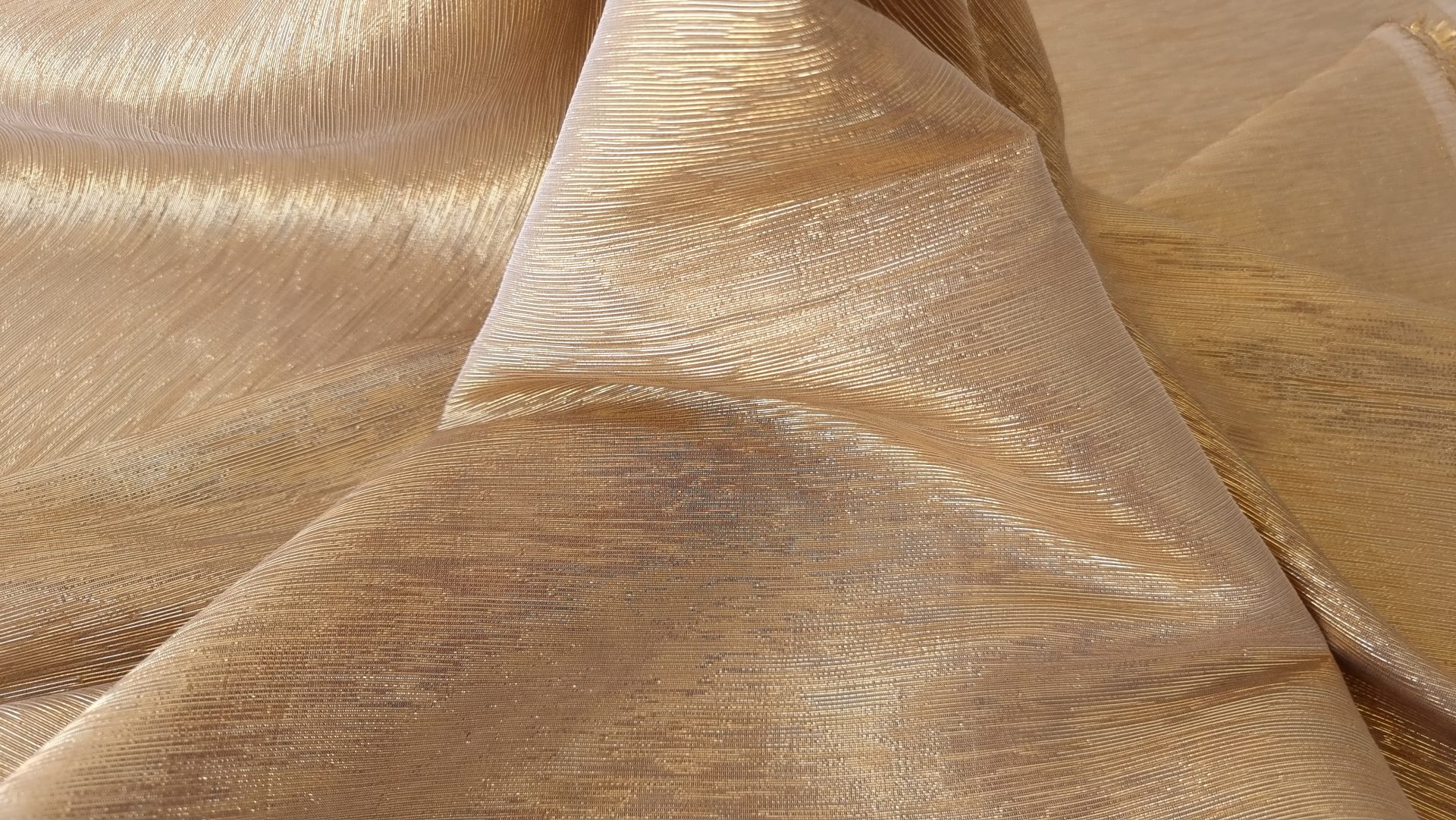 Tesatura metalizata din matase naturala gold, fina, subtire si usoara.