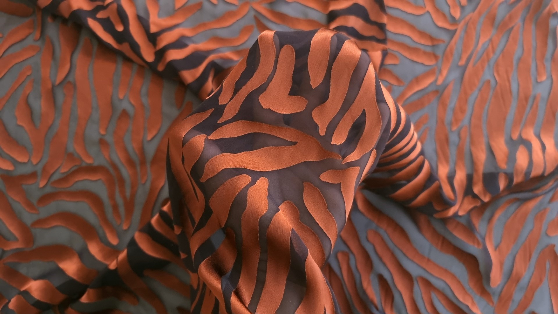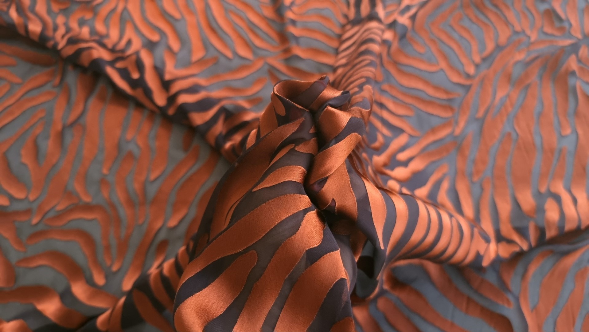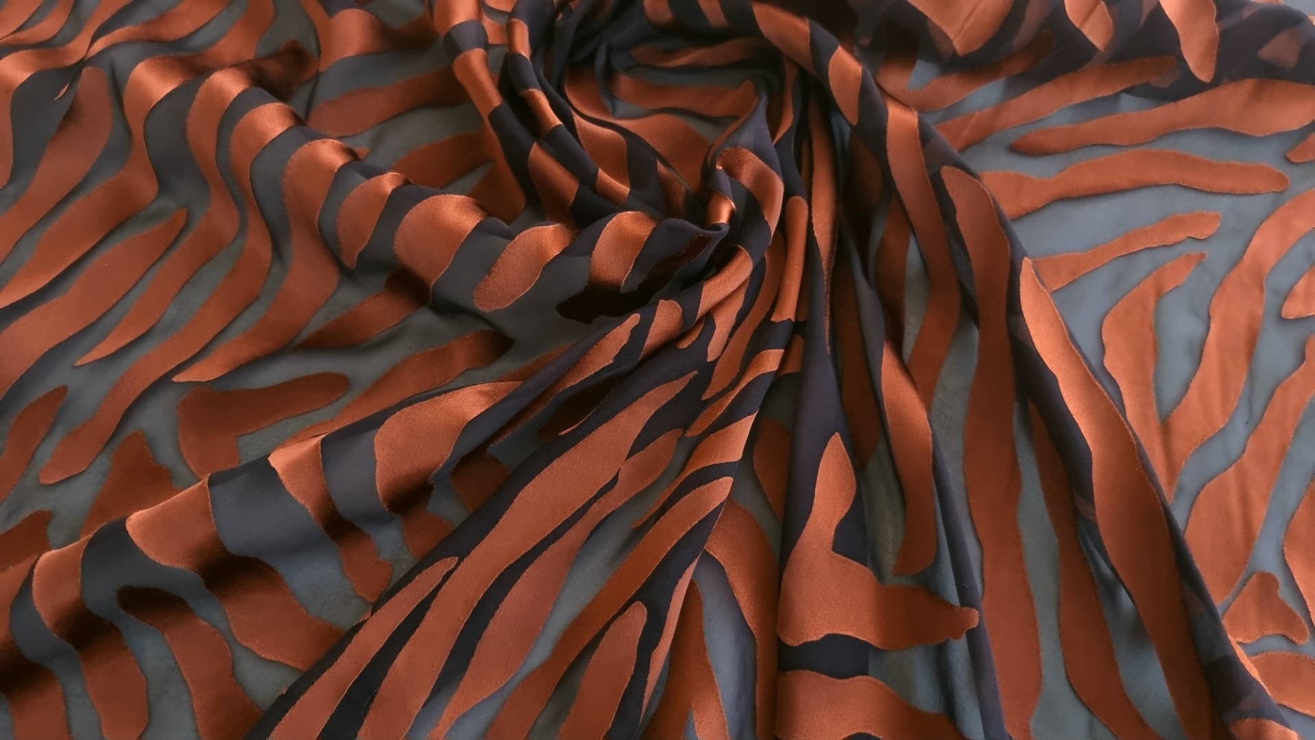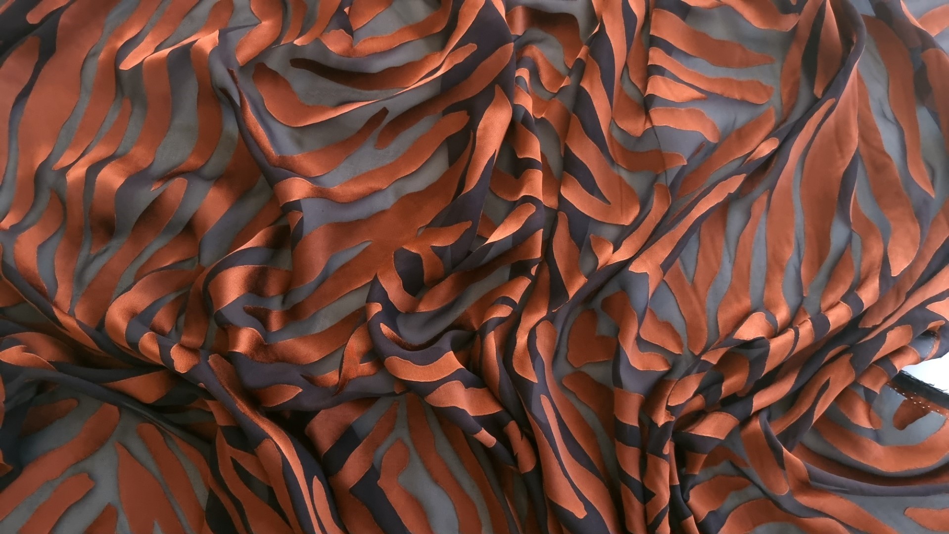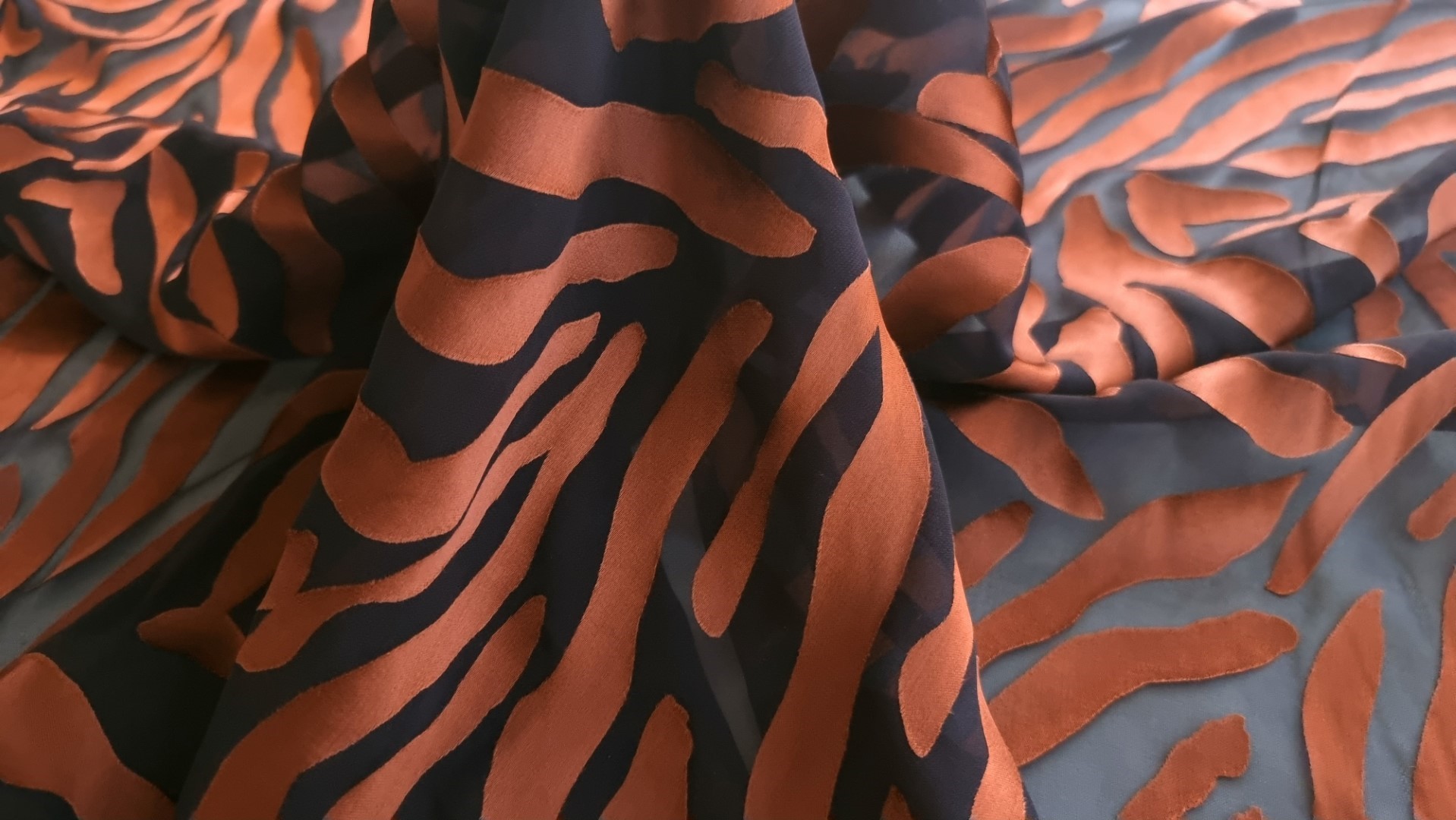Matase naturala devore aramie, subtire si fina, cu model in tendinte, foarte placuta la atingere.