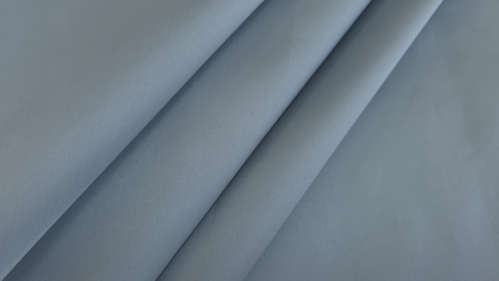 Nuanța Silver Blue oferă un aspect modern și sofisticat, evidențiind textura materialului și punând în valoare pliurile și volumele create prin croială.