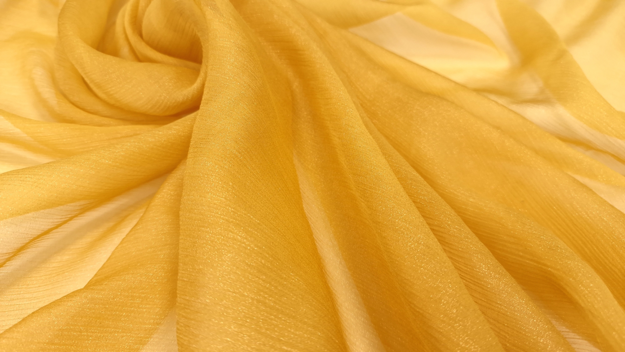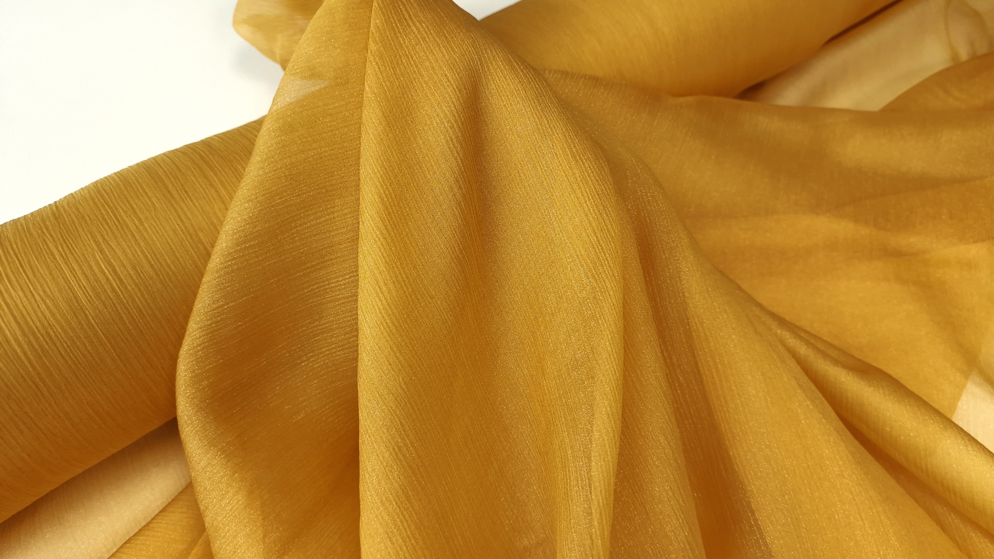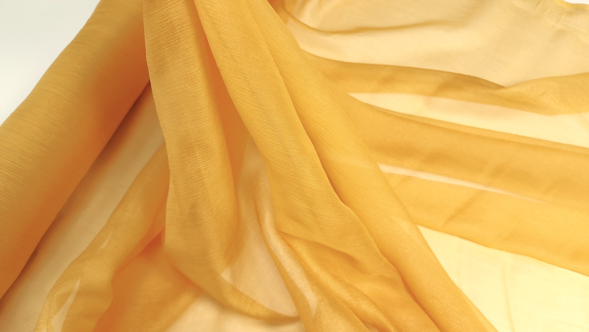 Caracteristici Voal creponat peliculizat ocru Muselina din matase naturala: