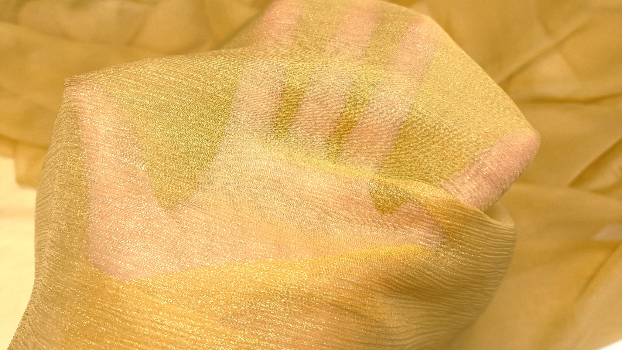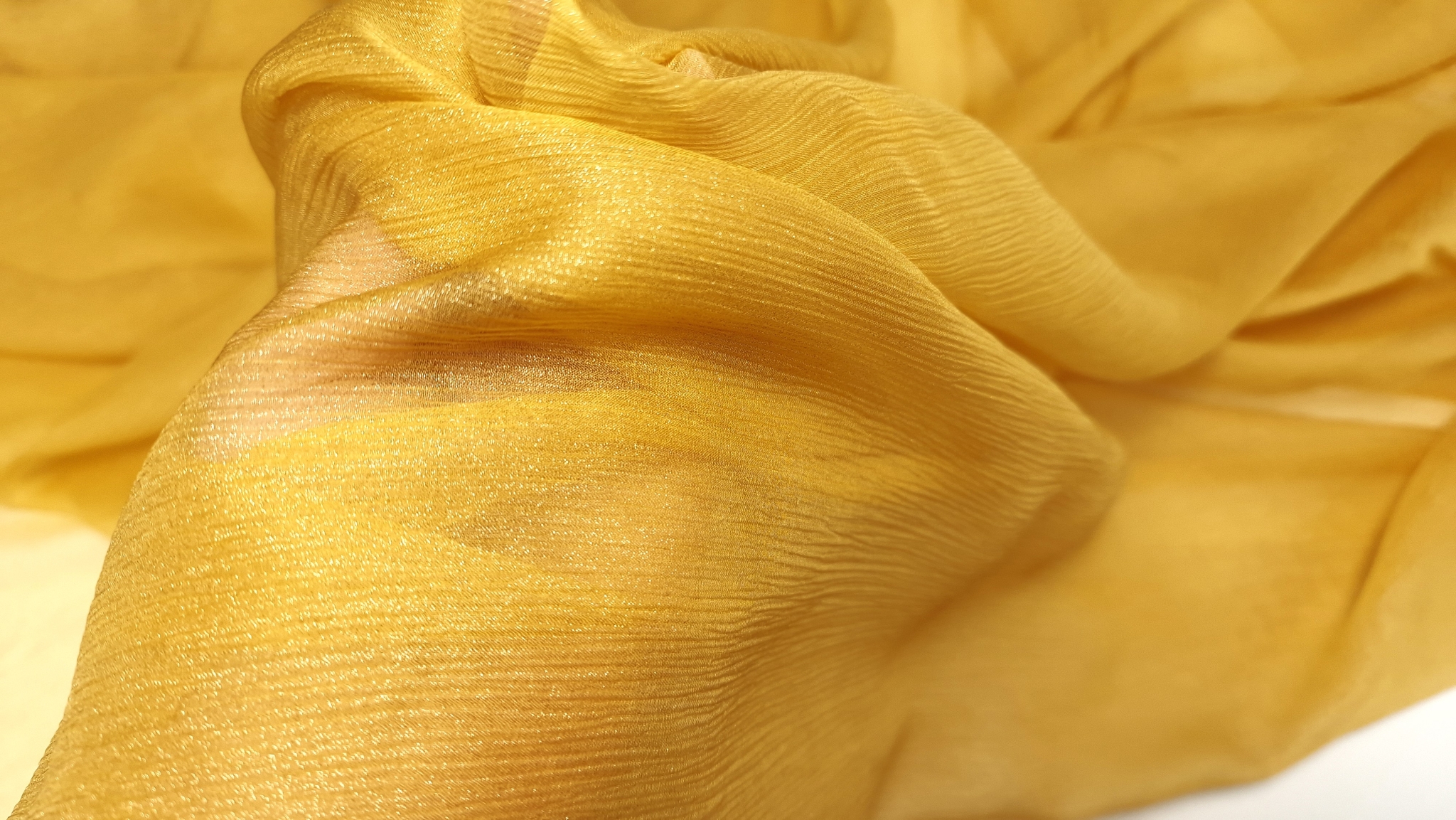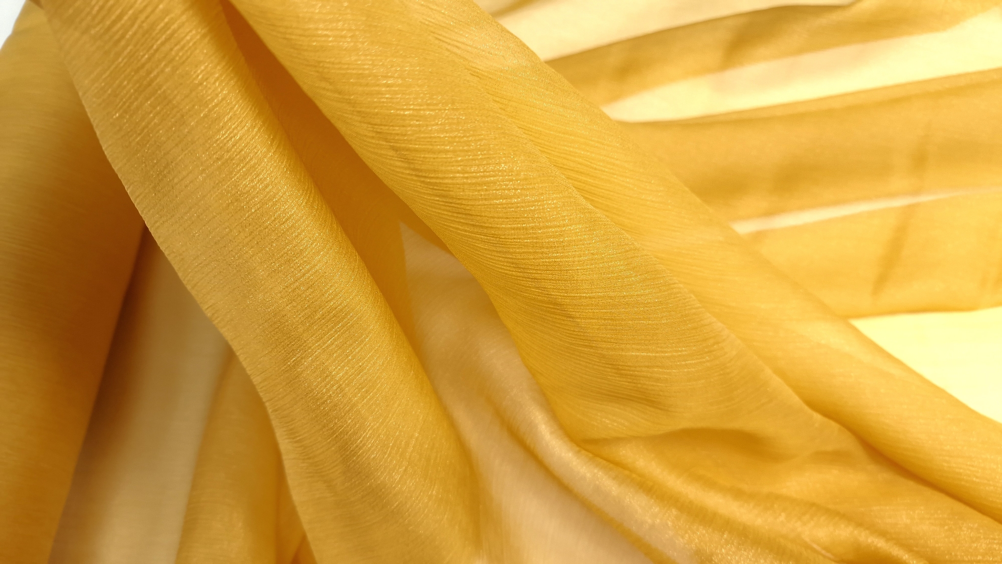Caracteristici Voal creponat peliculizat ocru Muselina din matase naturala: