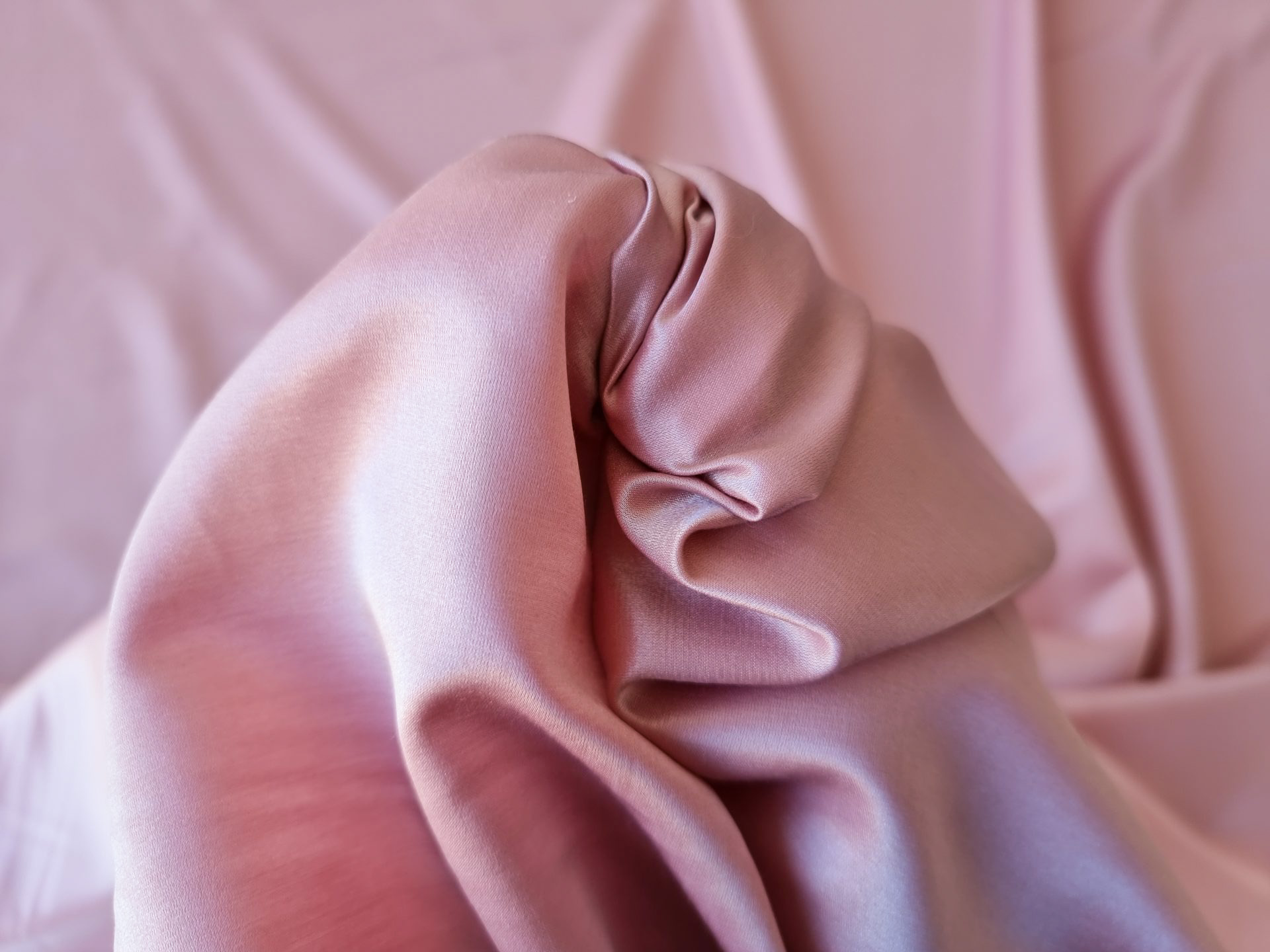 Satin cu matase naturala shell pink, subtire si vaporos, foarte placut la atingere.