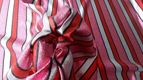 1 recenzie pentru Tesatura metalizata cu matase naturala Candy Striped Lamé GUC11105