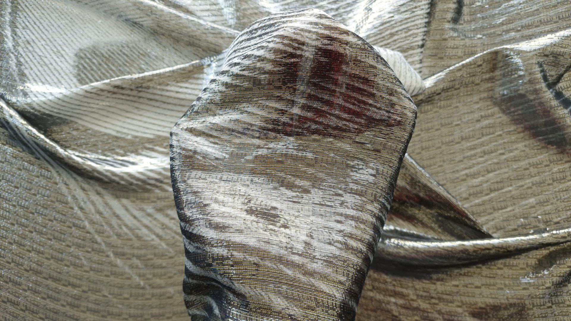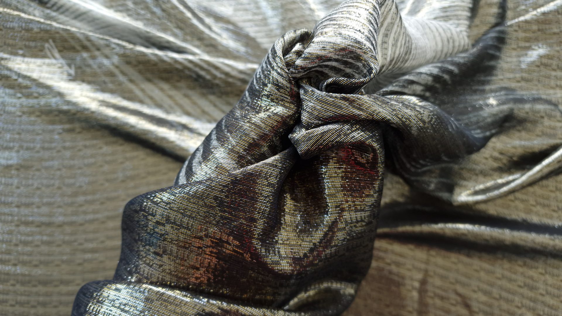 Tesatura subtire metalizata din matase naturala GNY1591, fina si usoara, foarte placuta la atingere.