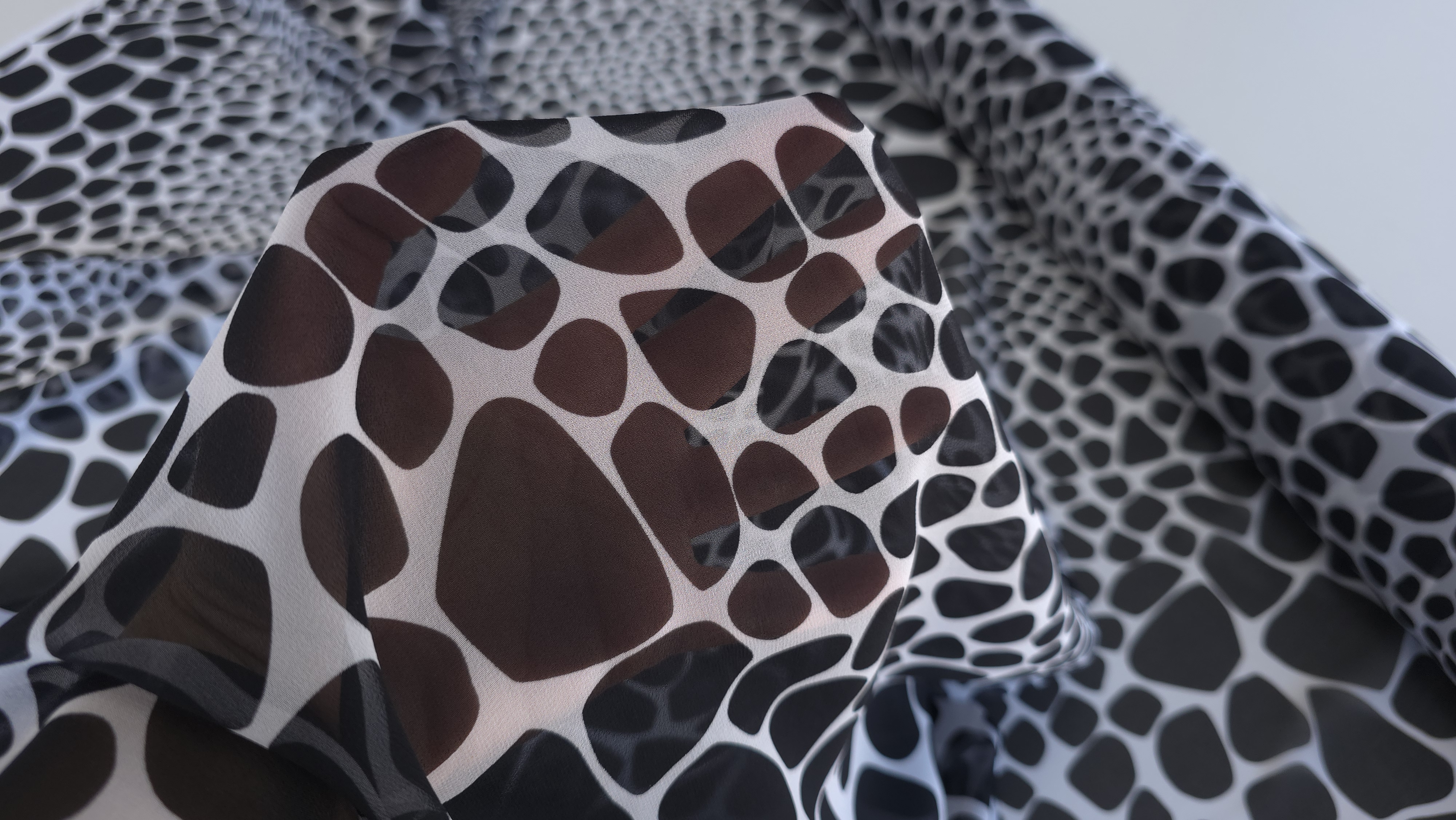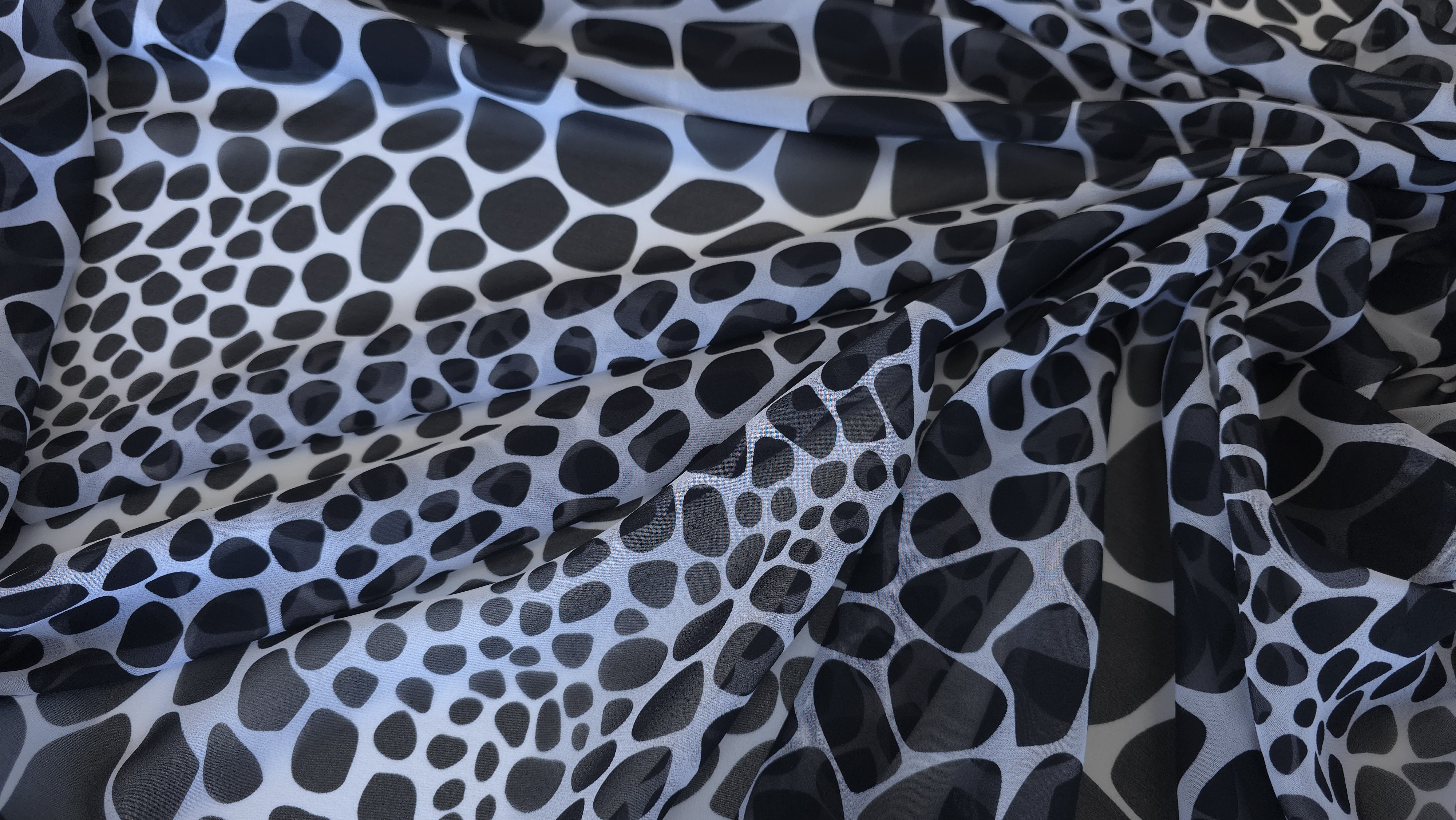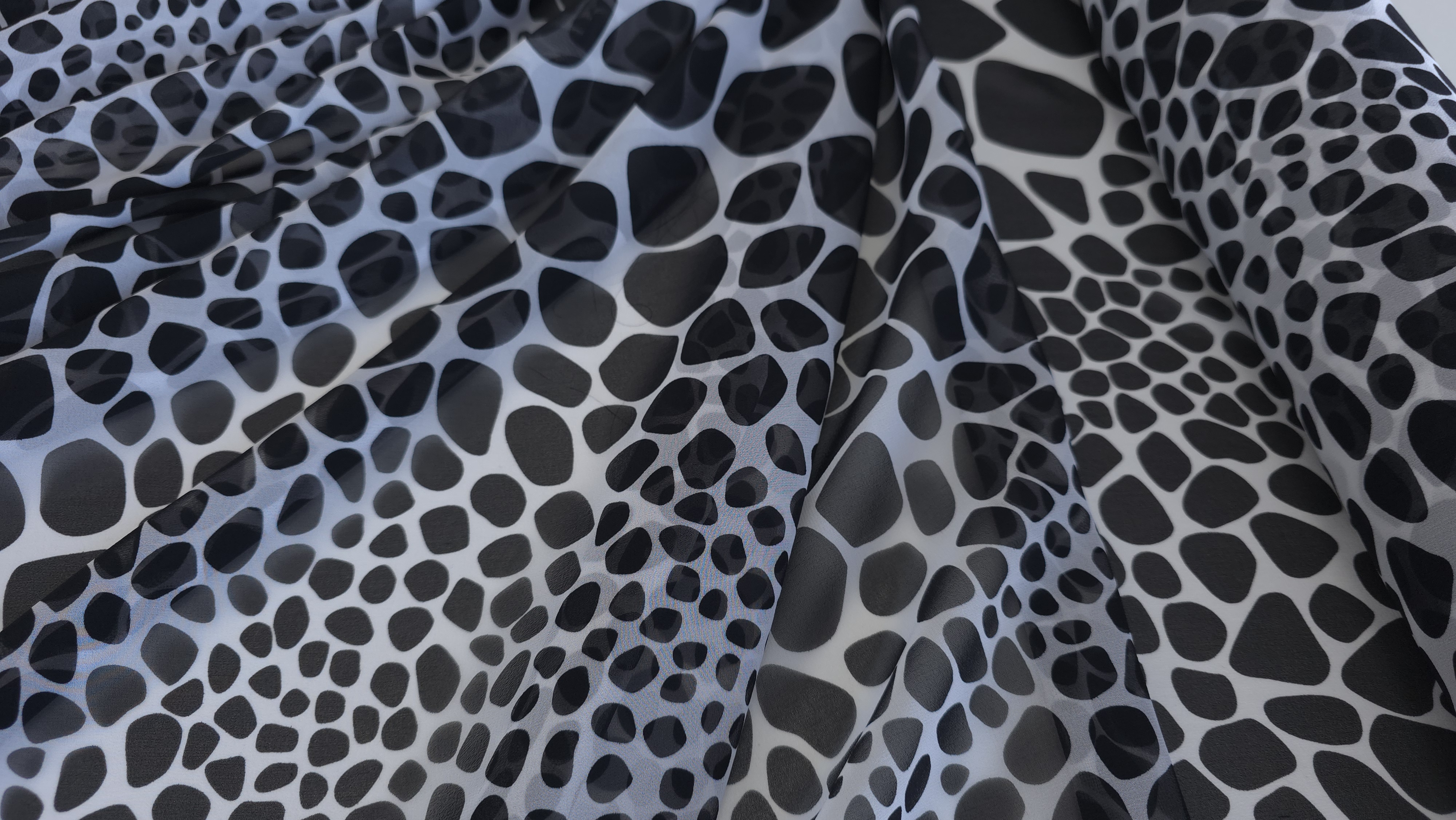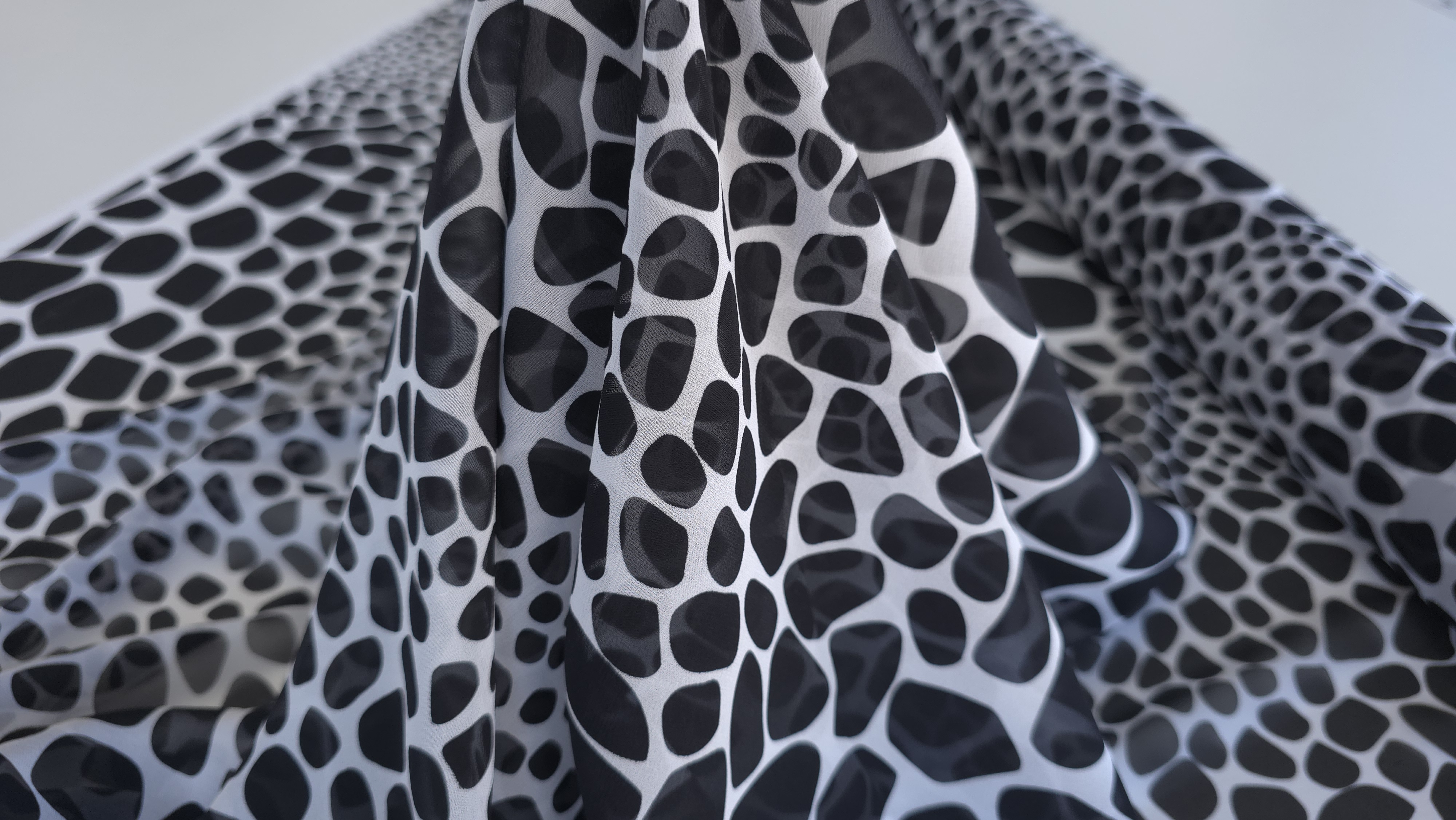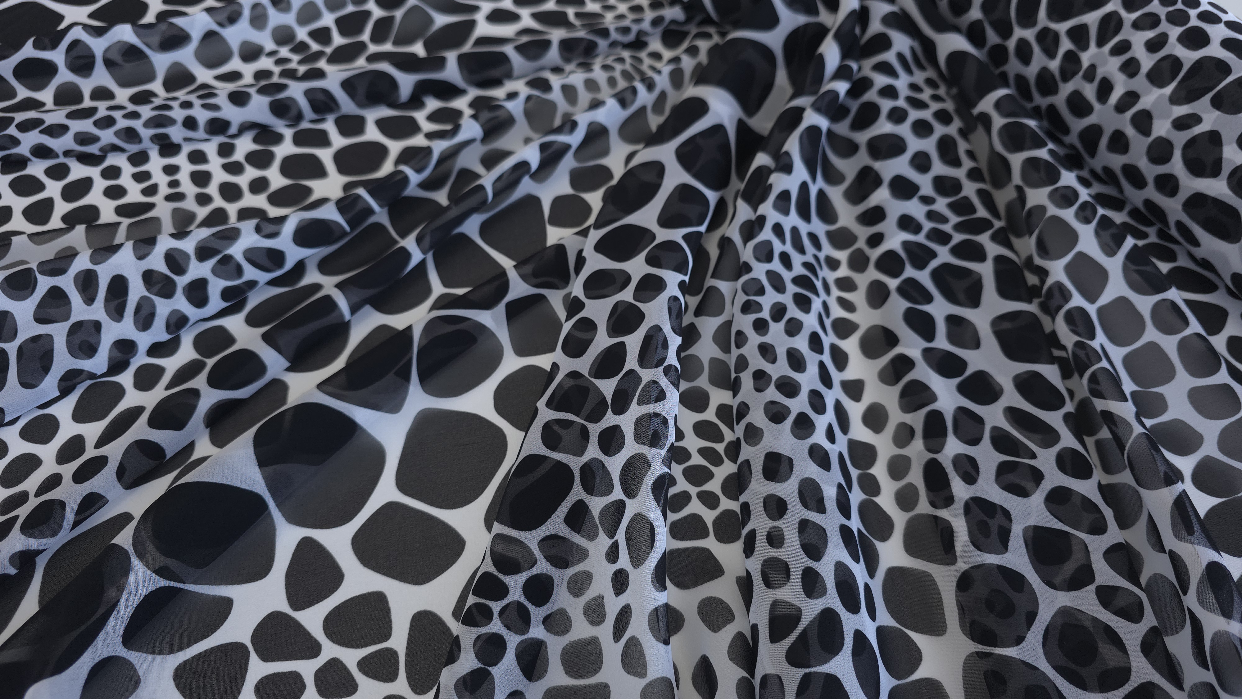 Voal Georgette 100% matase naturala MK1828, cu imprimeu abstract alb-negru, o țesătură fină și fluidă, cu cădere elegantă și textură ușor creponată, specifică mătăsii naturale. Materialul se remarcă prin lejeritate și mișcare naturală, fiind alegerea perfectă pentru rochii vaporoase, bluze feminine, eșarfe sau suprapuneri cu efect grafic. Datorită calității sale premium și a imprimeului modern, este potrivit atât pentru creații de zi, cât și pentru ținute de seară cu personalitate.Vă invităm să ne urmăriți și pe rețelele de socializare pentru a rămâne informați cu privire la ultimele noastre actualizări, oferte exclusive și surse de inspirație. Alăturați-vă comunității noastre online pe Facebook și Instagram. Vă așteptăm cu drag!