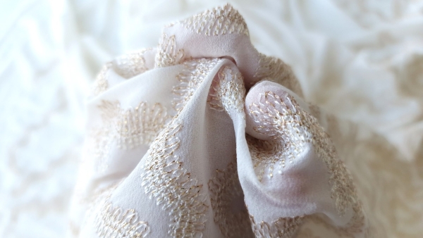 Caracteristici Voal Georgette din matase naturala cu broderie aurie PERLA661: