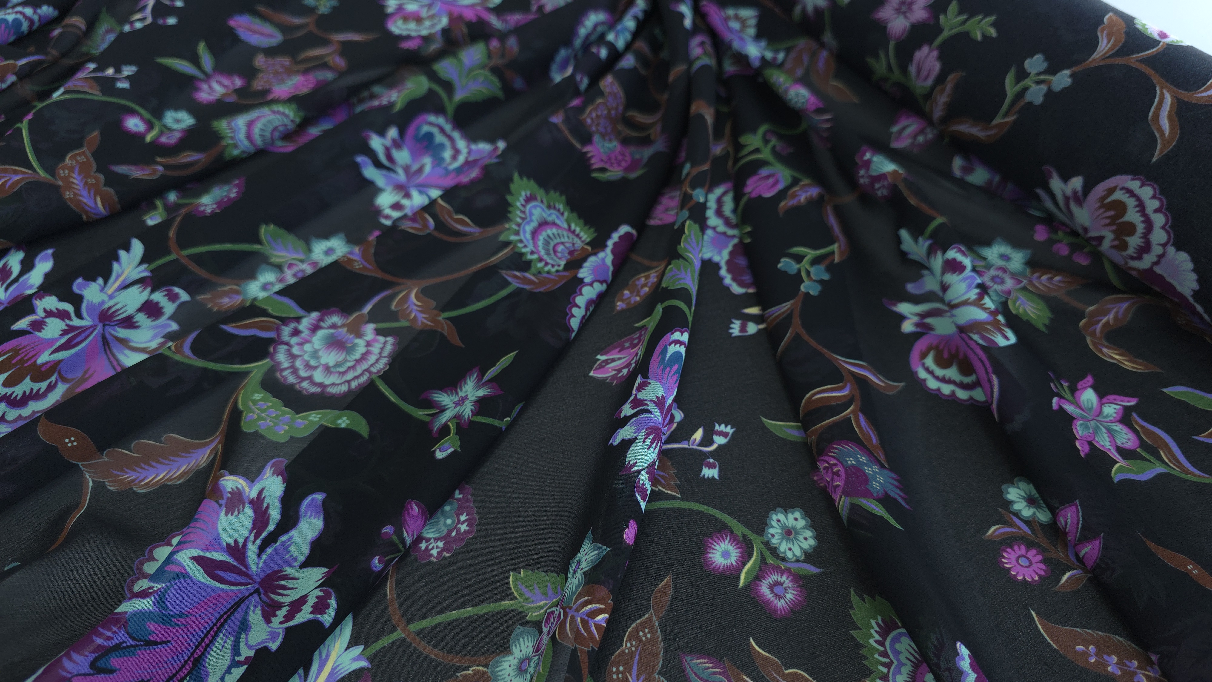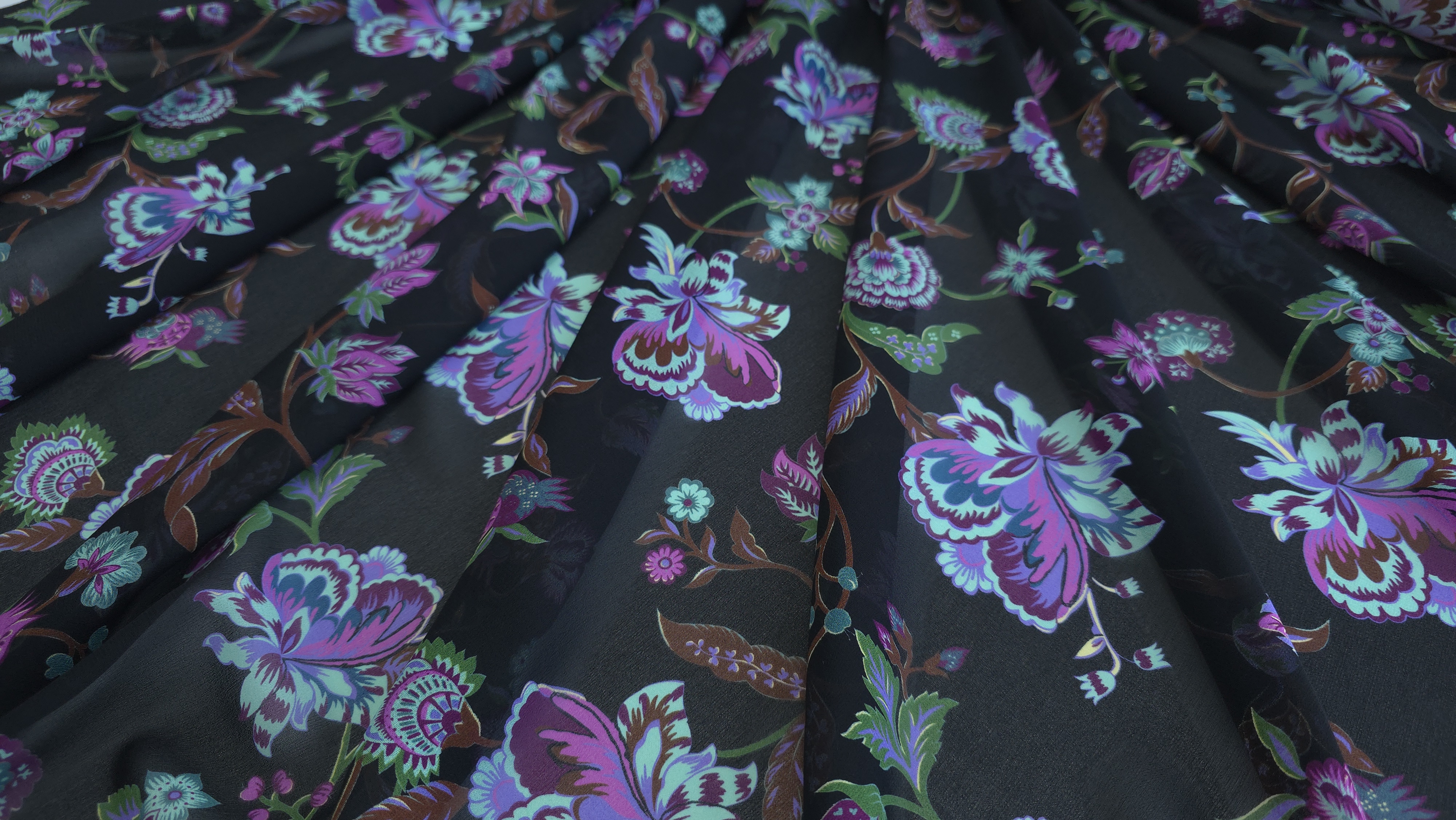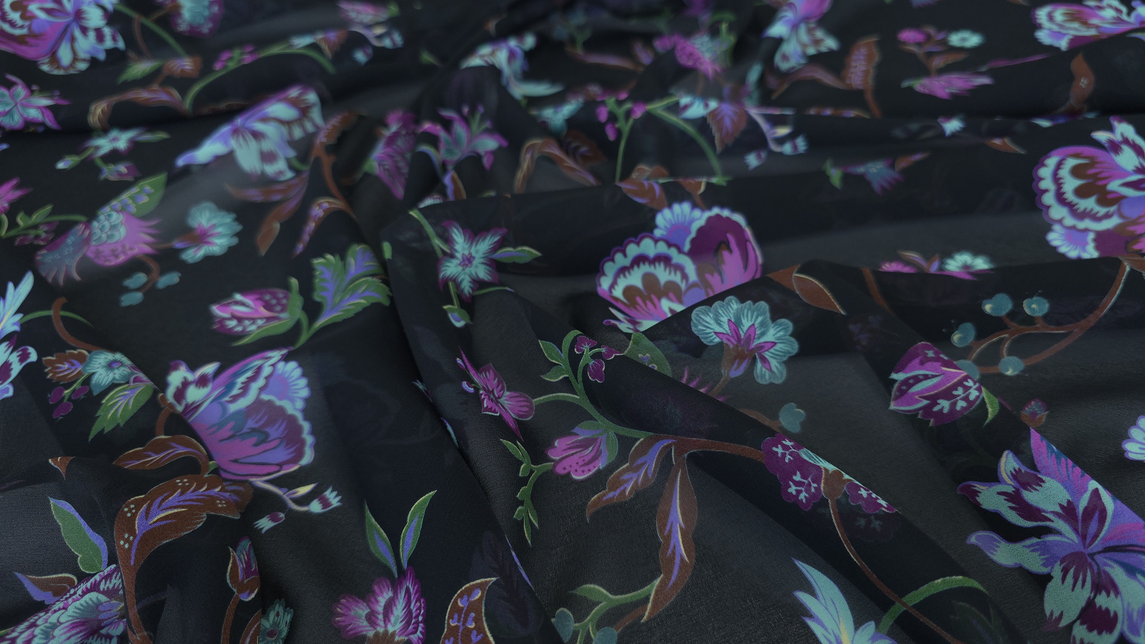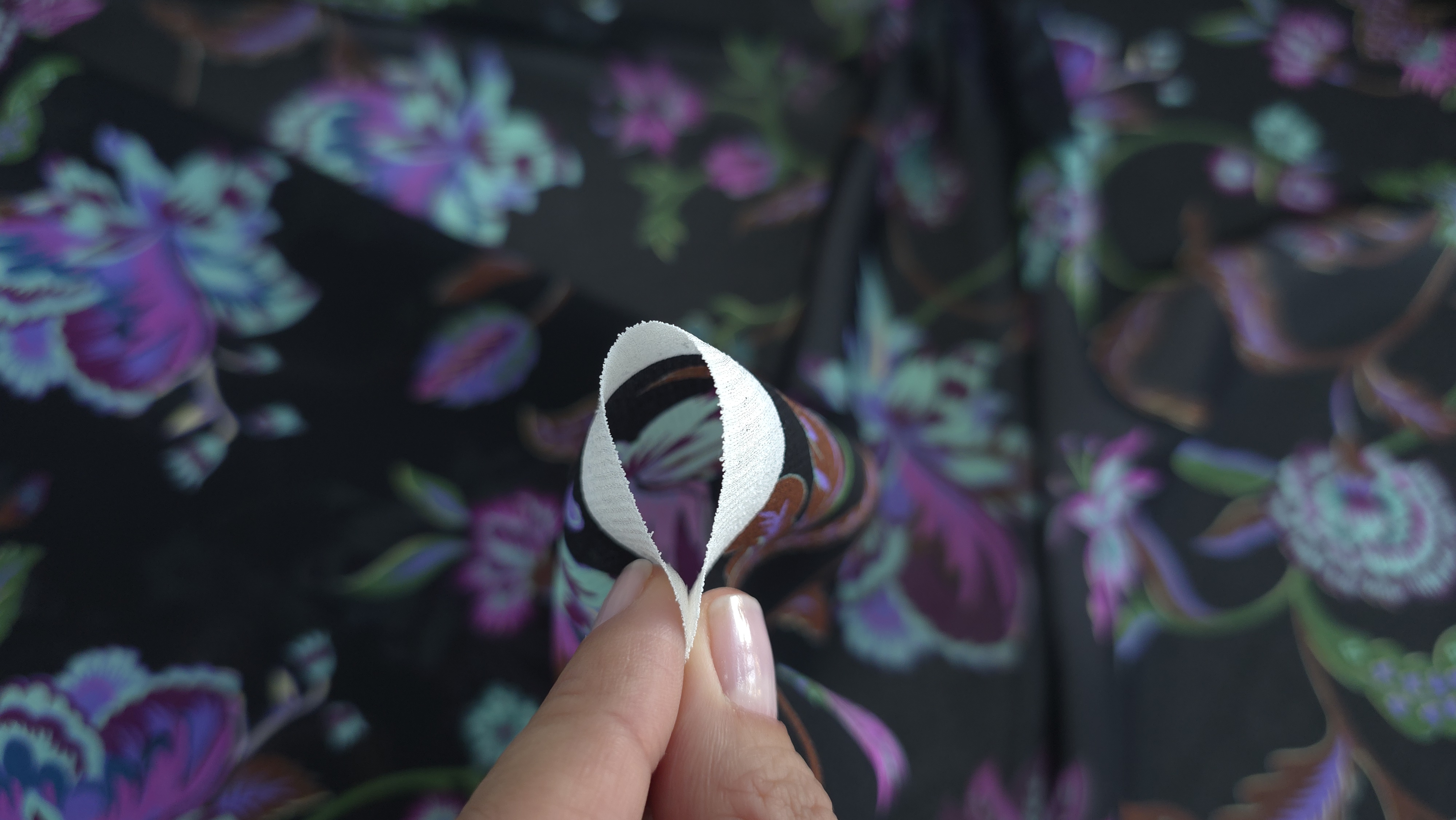 Voal Georgette matase naturala ETR1833, cu imprimeu floral inspirat de estetica brandului Etro, în nuanțe vibrante de fucsia, turcoaz și verde pe fond negru intens. Țesătura are o transparență clasică, o textură ușor creponată și o cădere fluidă, conferind lejeritate și mișcare elegantă fiecărei piese vestimentare. Este o alegere ideală pentru rochii vaporoase, bluze fine, fuste sau suprapuneri ușoare cu efect de transparență subtilă. Vă invităm să ne urmăriți și pe rețelele de socializare pentru a rămâne informați cu privire la ultimele noastre actualizări, oferte exclusive și surse de inspirație. Alăturați-vă comunității noastre online pe Facebook și Instagram. Vă așteptăm cu drag!