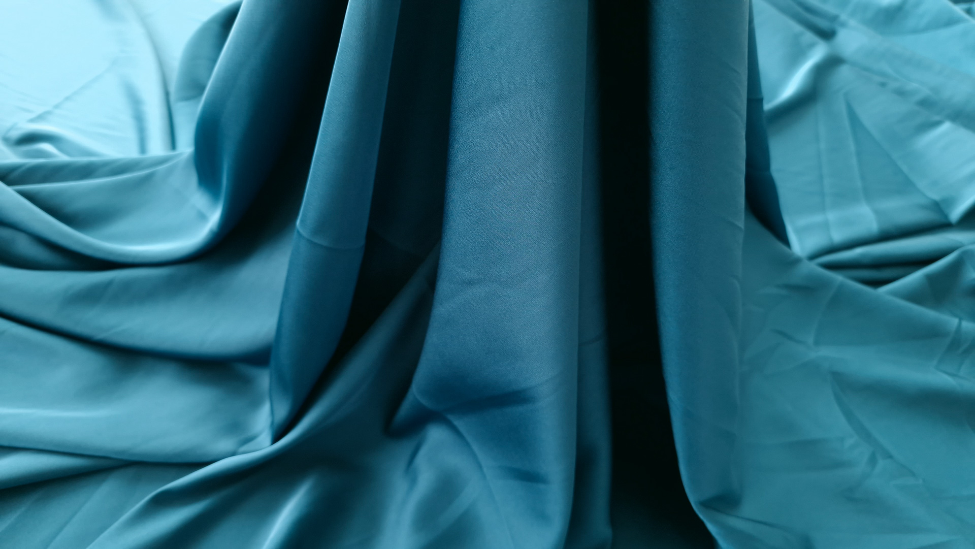 Matasica Noblesse albastru petrol, textura fluida si matasoasa, cu luciu foarte discret imitand cu succes satinul de matase naturala, aceasta Matasica Noblesse este o incantare a simturilor. Are “cadere” frumoasa, aproape in totalitate opaca si datorita elastanului din compozitie este foarte versatila,pentru rochii,bluze sau salopete.