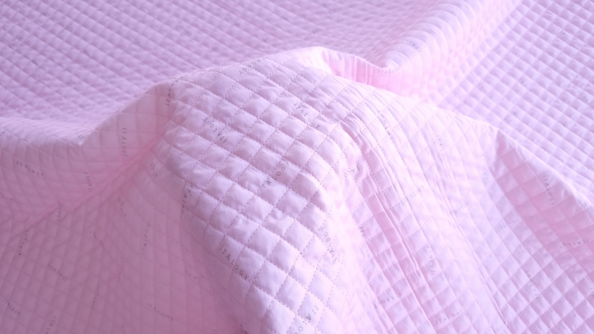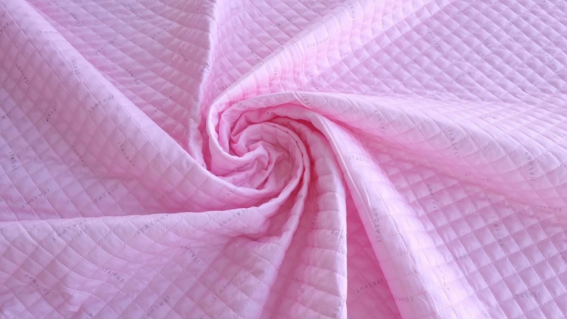 Matlasat roz deschis imprimeu Italogy, material textil ce poate fi utilizat atat ca si captuseala, dar si ca material principal pentru realizarea articolelor de iarna.