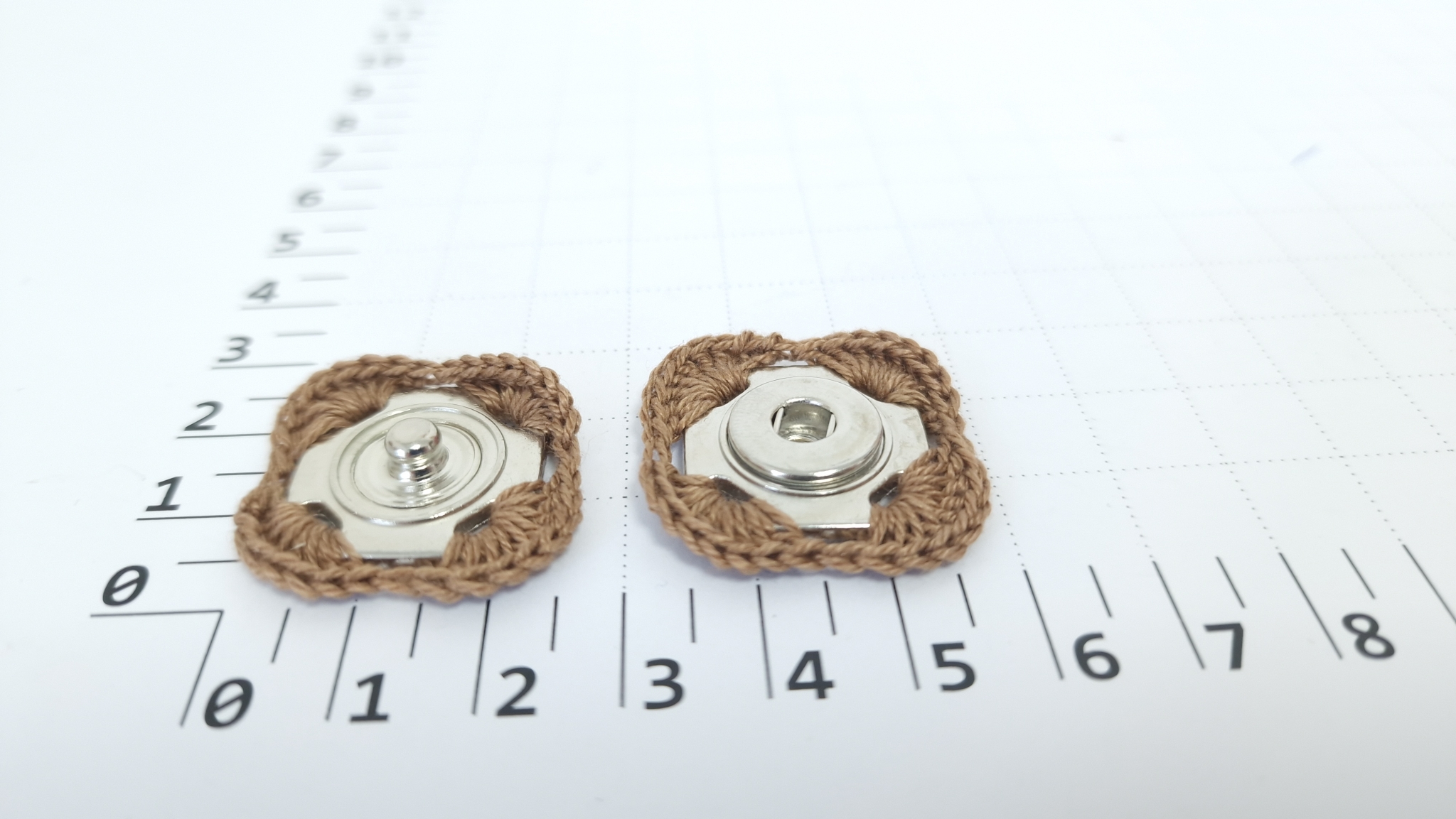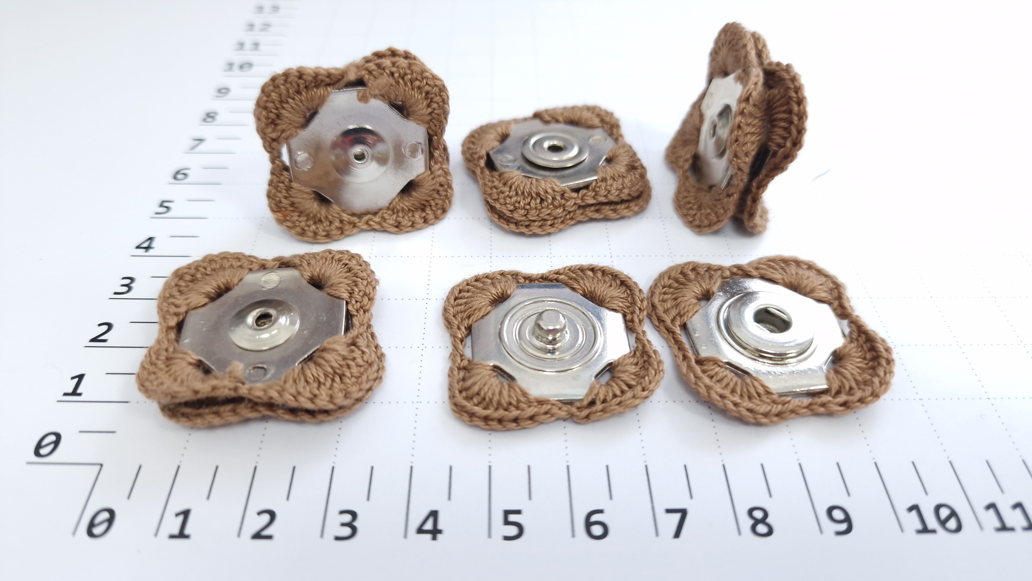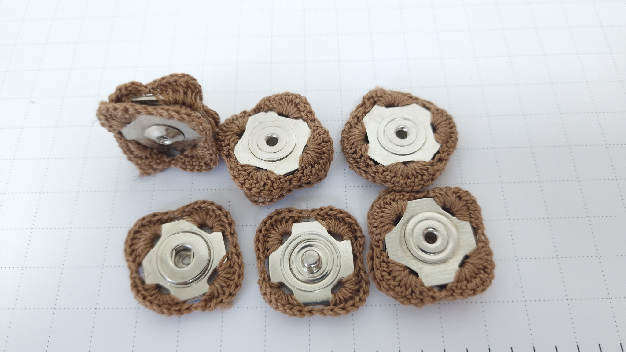 Capse metalice cu margine crosetata 25mm , formate din doua parti cu prindere prin coasere, iar prin apasare una peste cealalta acestea se inchid. Sunt fabricate din metal inoxidabil, astfel acestea nu ruginesc.