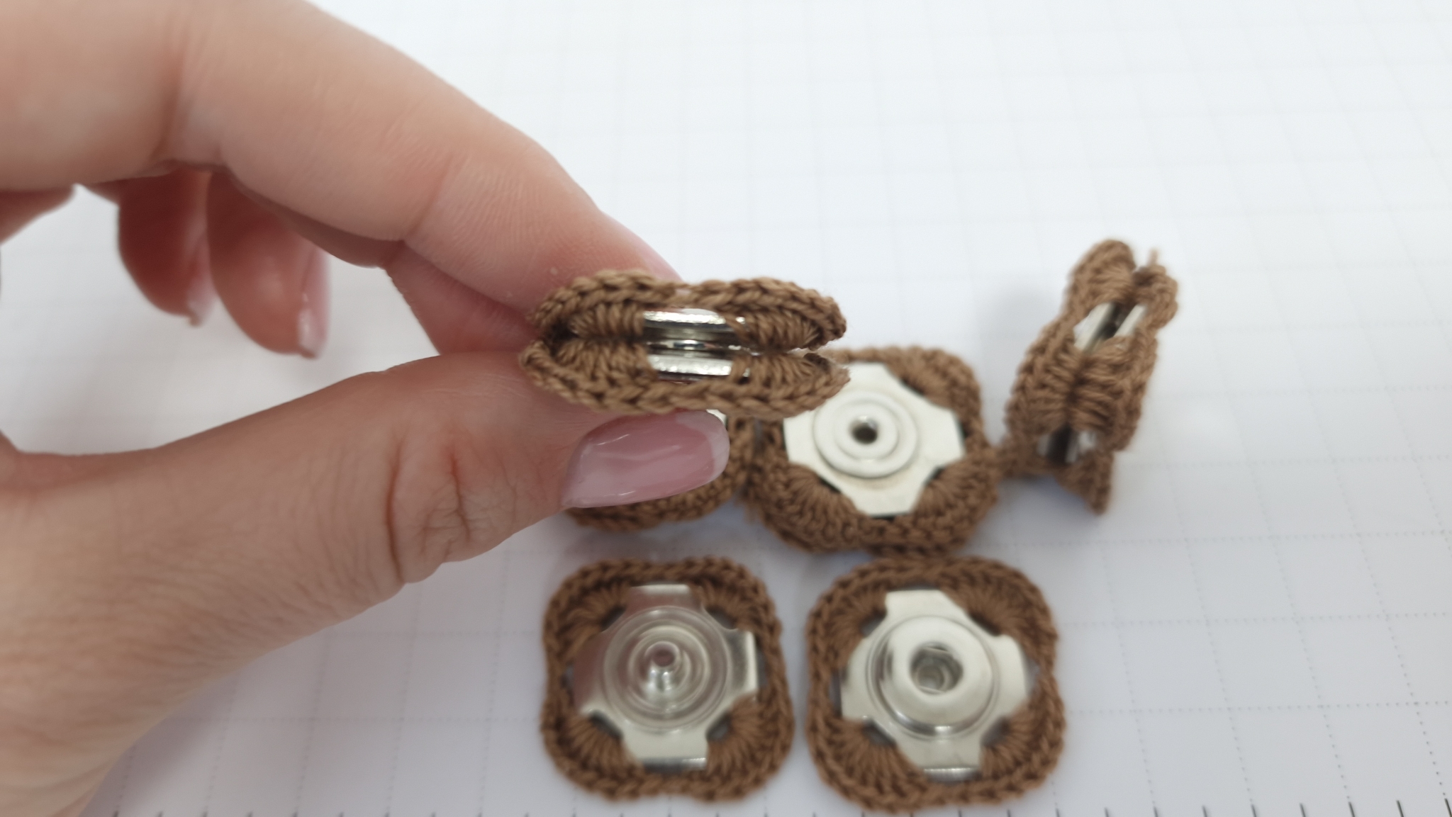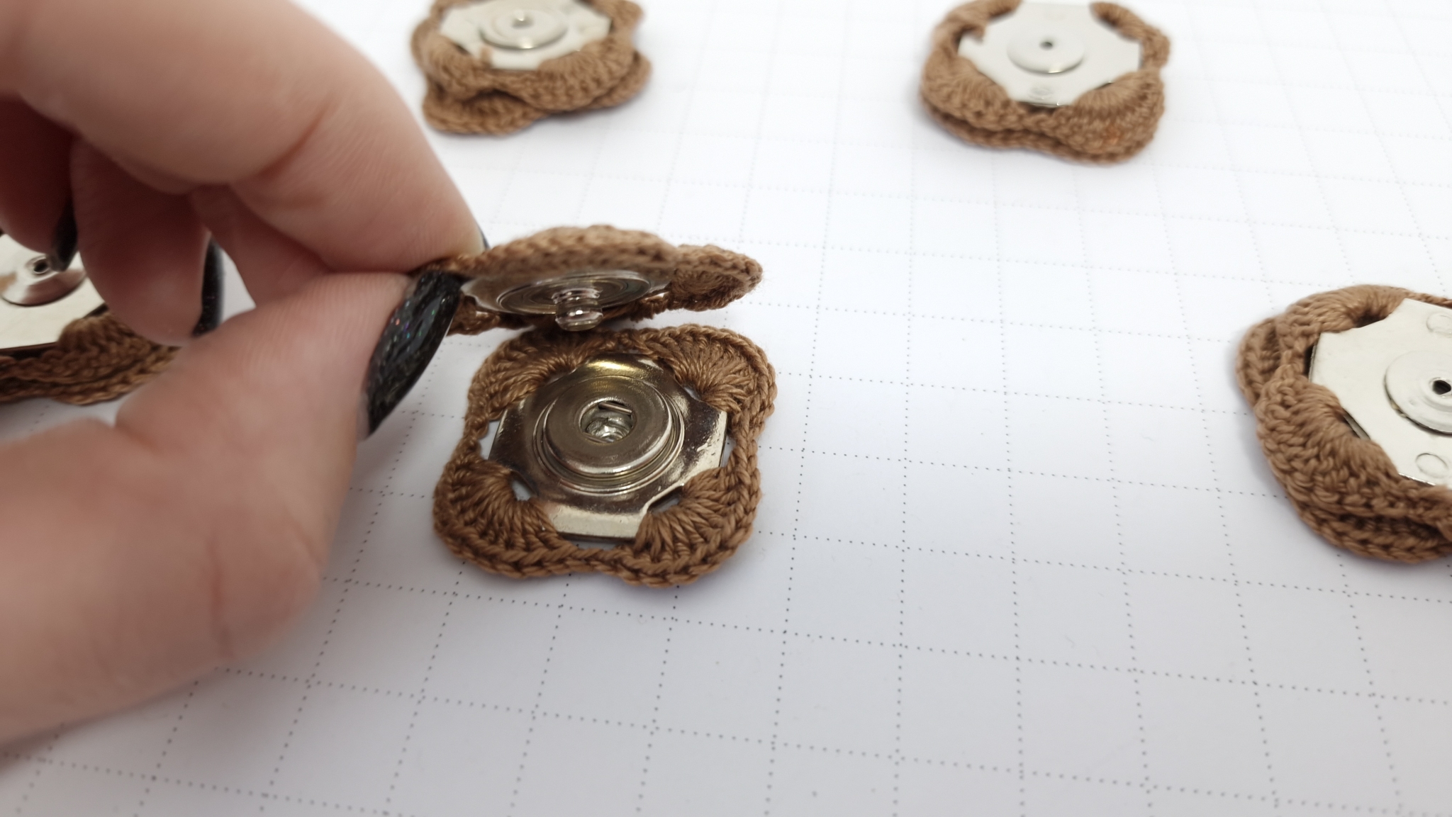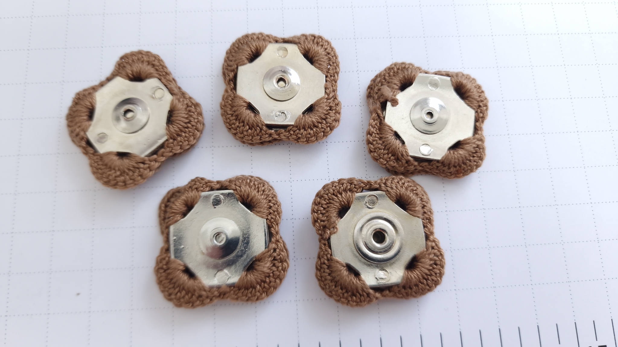 Capse metalice cu margine crosetata 25mm , formate din doua parti cu prindere prin coasere, iar prin apasare una peste cealalta acestea se inchid. Sunt fabricate din metal inoxidabil, astfel acestea nu ruginesc.