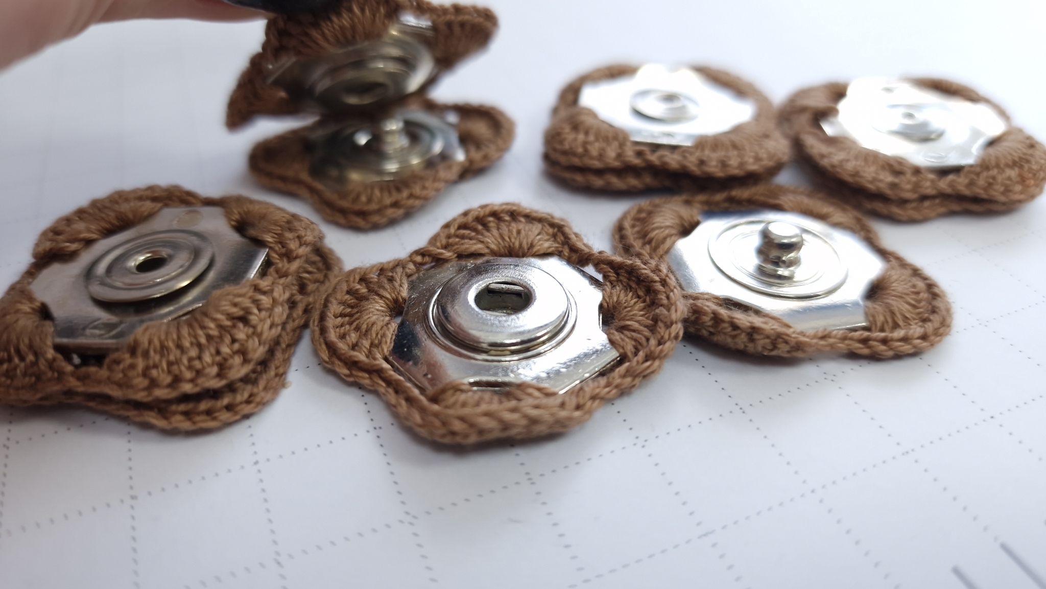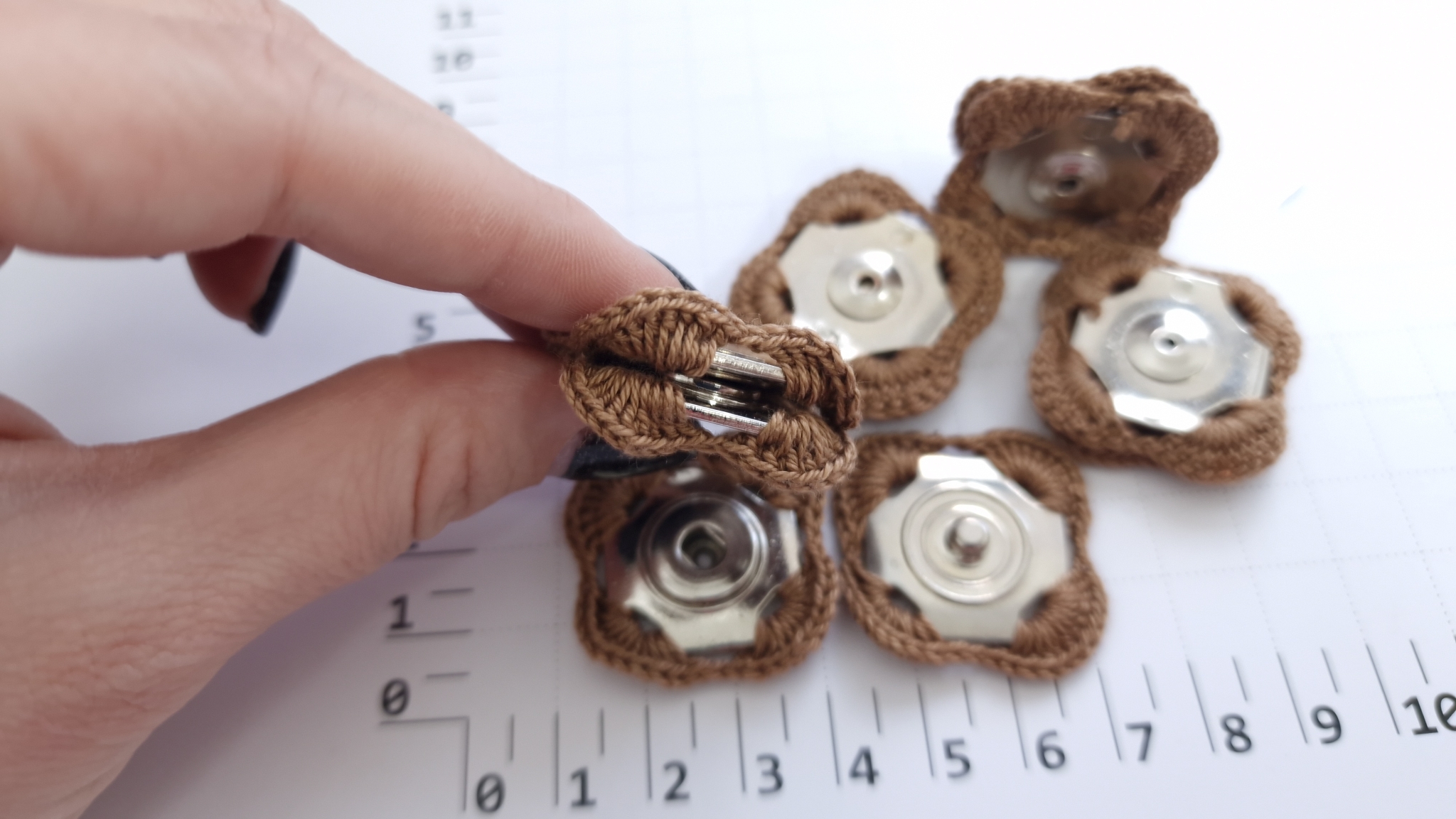 Capse metalice cu margine crosetata 30mm , formate din doua parti cu prindere prin coasere, iar prin apasare una peste cealalta acestea se inchid. Sunt fabricate din metal inoxidabil, astfel acestea nu ruginesc.