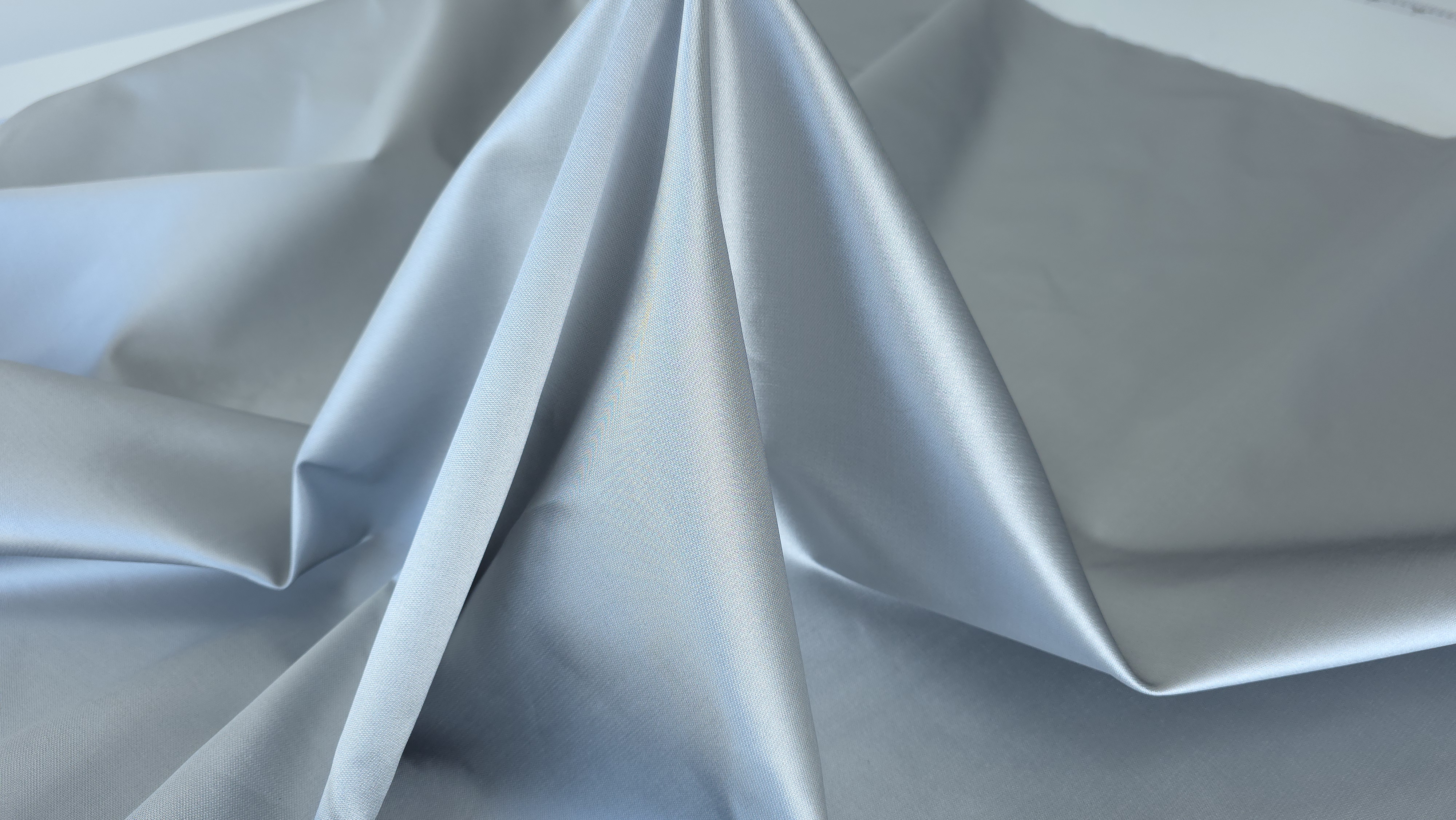 Suprafața materialului este fină și uniformă. Luciul discret îl face potrivit pentru piese elegante, fără un efect intens. Structura mikado oferă rigiditate controlată, ceea ce ajută la crearea unor forme clare și stabile. Este un material excelent pentru croieli arhitecturale sau pentru rochii voluminoase, care necesită o cădere specială.